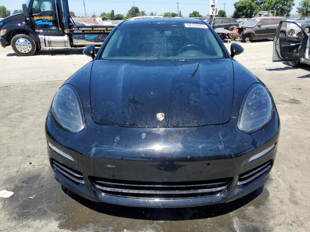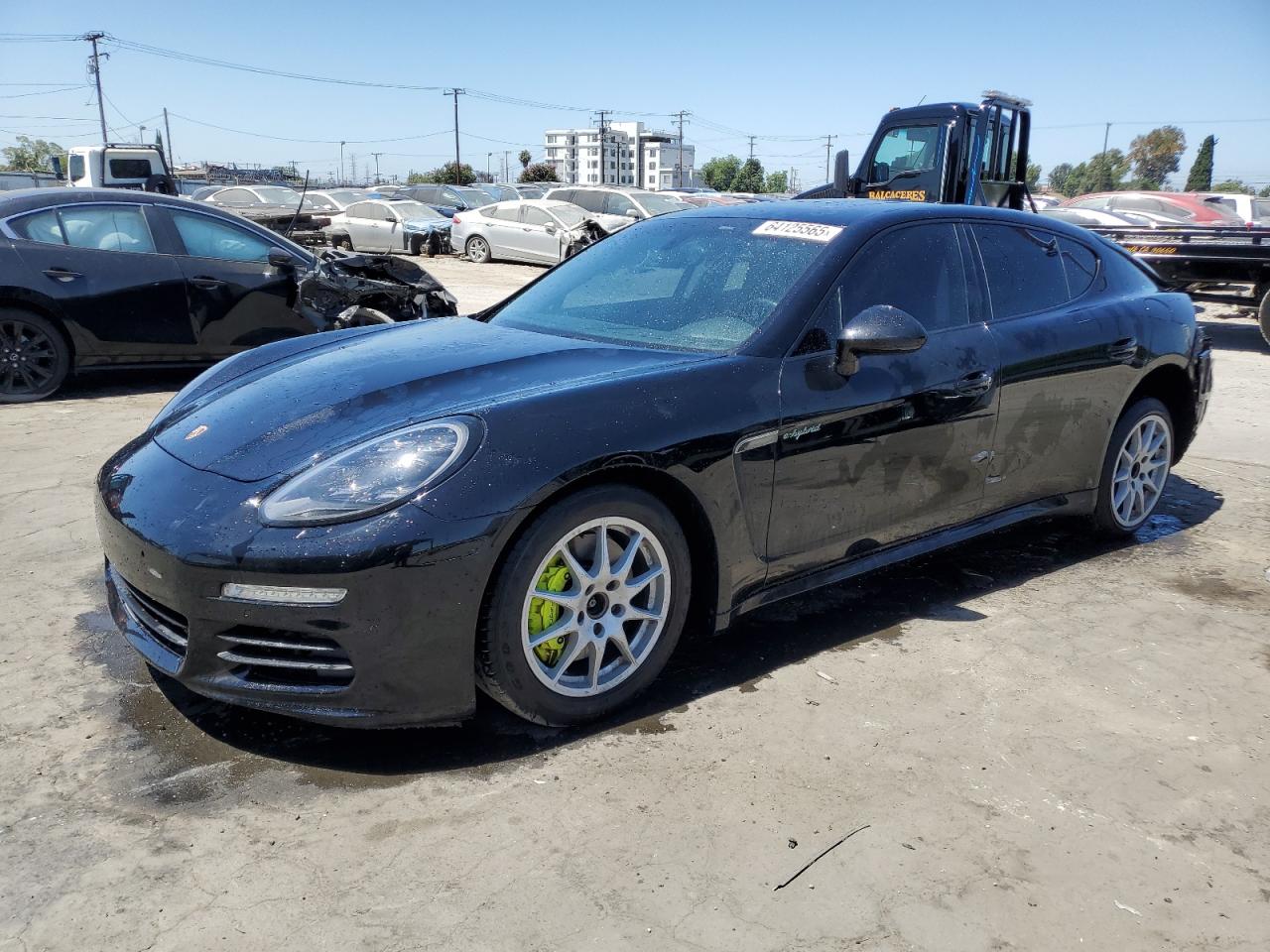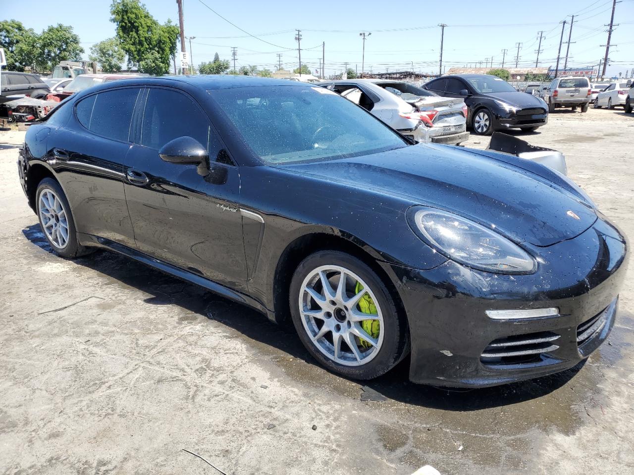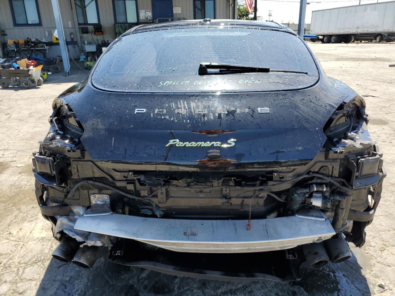 Fair2014 PORSCHE PANAMERA S with REAR END damage. The car is black. Damage to the rear of the car is significant. The interior shows minimal wear and tear and appears to be in good condition. The wheels and lights appear to be intact. The airbags status is unknown. The vehicle's overall state is fair, indicating a need for repair. The car's damage mainly focuses on the body panels. The car is drivable, the vehicle damage category is Body.
