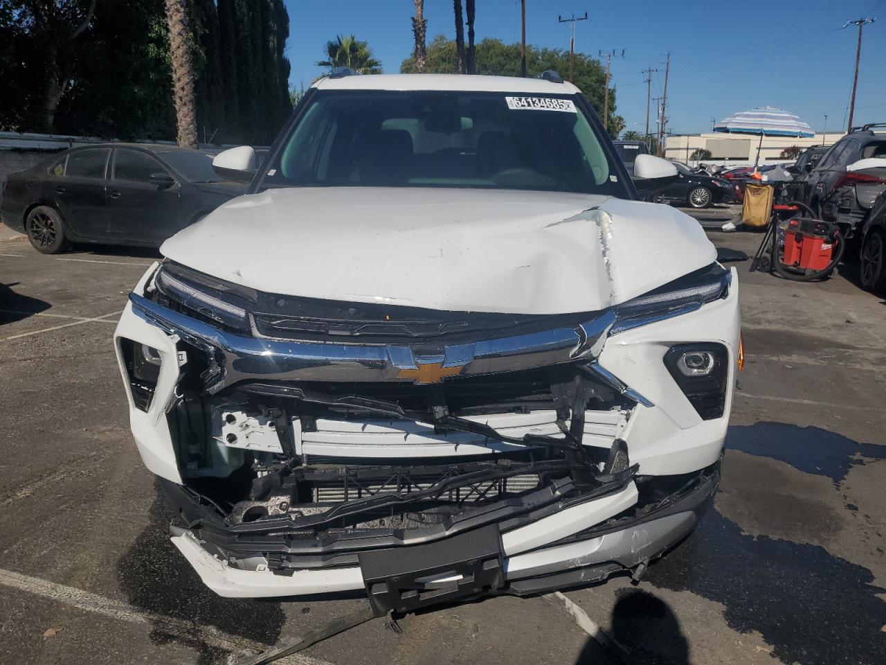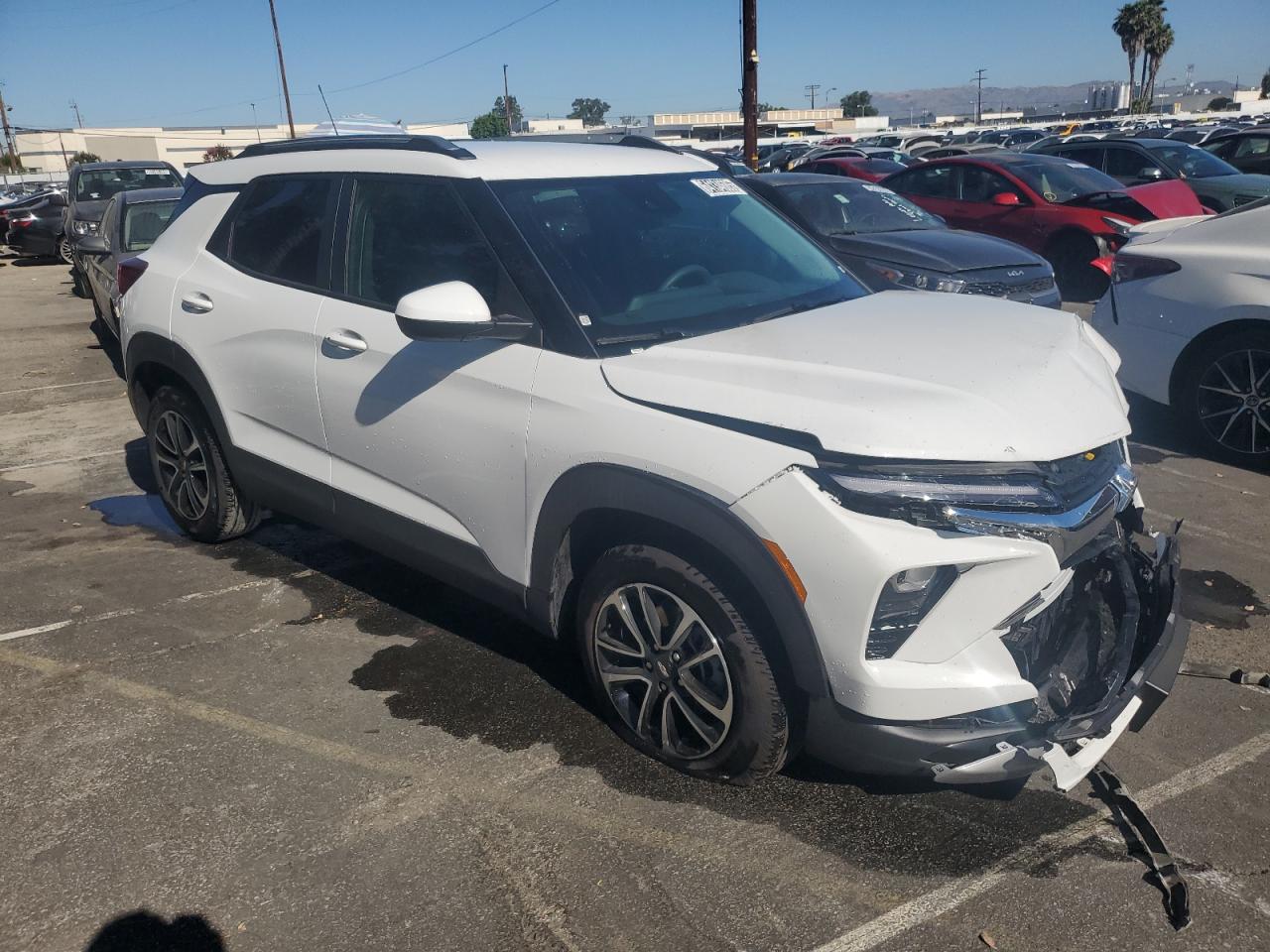 FairThis white 2025 Chevrolet Trailblazer exhibits significant front-end damage, with signs of impact affecting the front bumper and other body panels. The undercarriage also appears to have sustained damage. The vehicle's "Vehicle Starts" status suggests it may still be drivable, but extensive repairs will likely be needed. Interior condition seems better, but with the airbags deployed, this vehicle requires considerable attention to restore it to its former state. This SUV has wheels in a good condition and glass is intact.