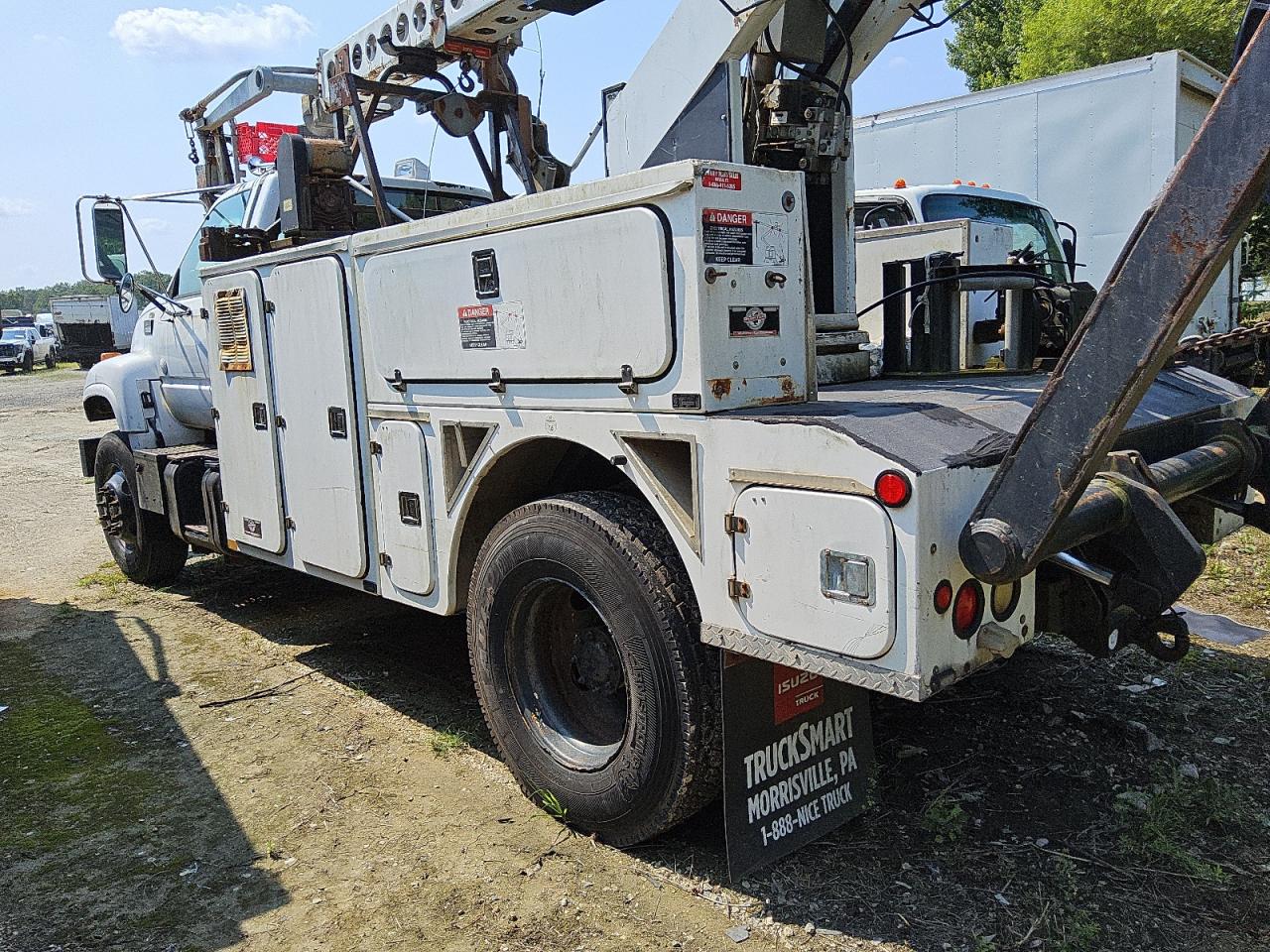 FairThis is a white 2000 GMC C7500. It appears to have mechanical issues as it is starting with engine start, and body damage including dents and scratches. The vehicle's overall condition is fair, with a moderate level of damage both internally and externally. The interior shows signs of wear and tear. The vehicle has a crane mounted on the back, indicating it may have been used for utility or service purposes. The wheels and lights appear to be in decent condition, while the glass seems intact. The vehicle's overall condition is rated as fair, reflecting a need for repairs to address the mechanical issues and body damage.