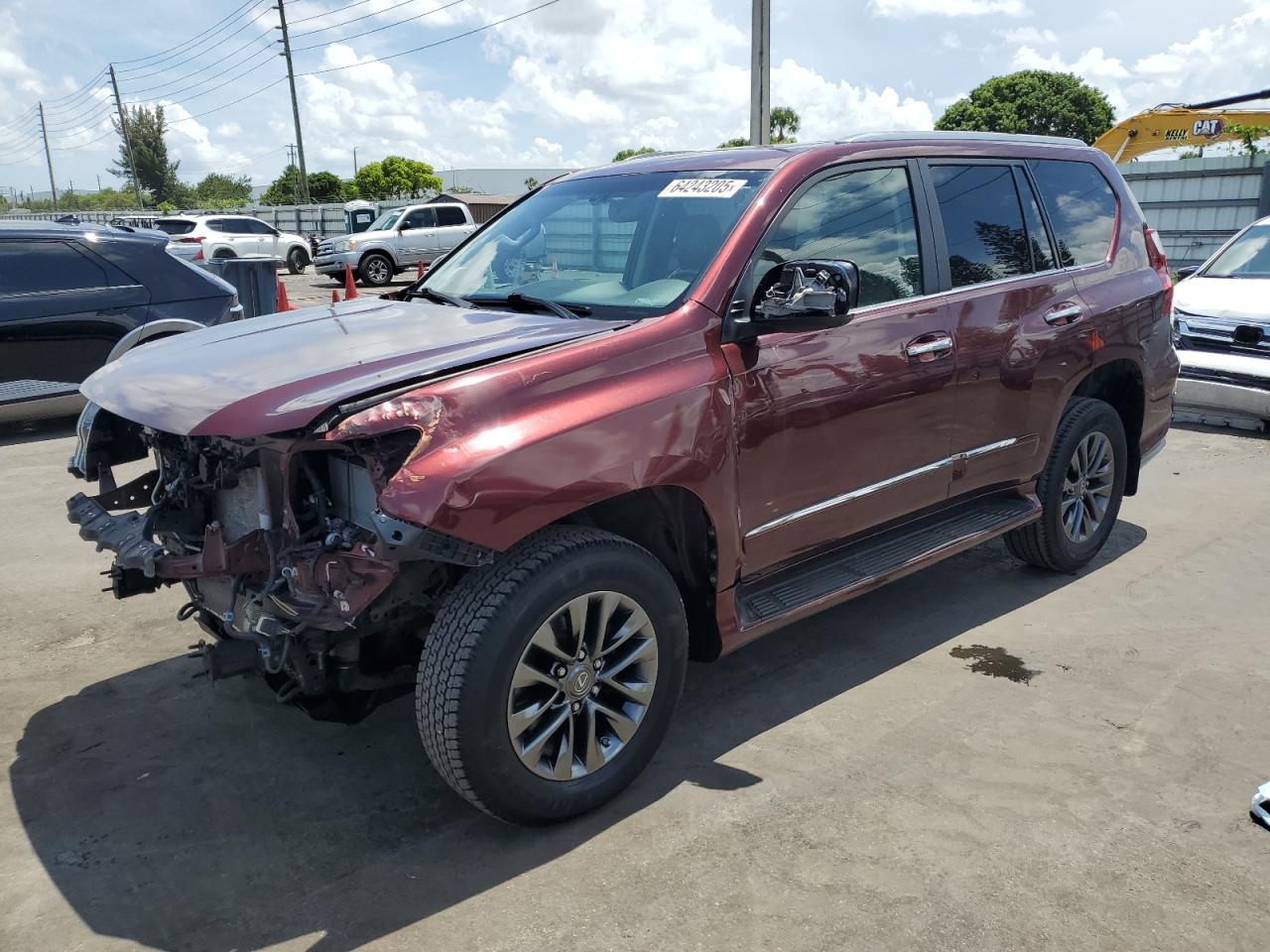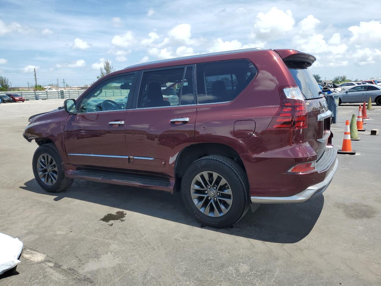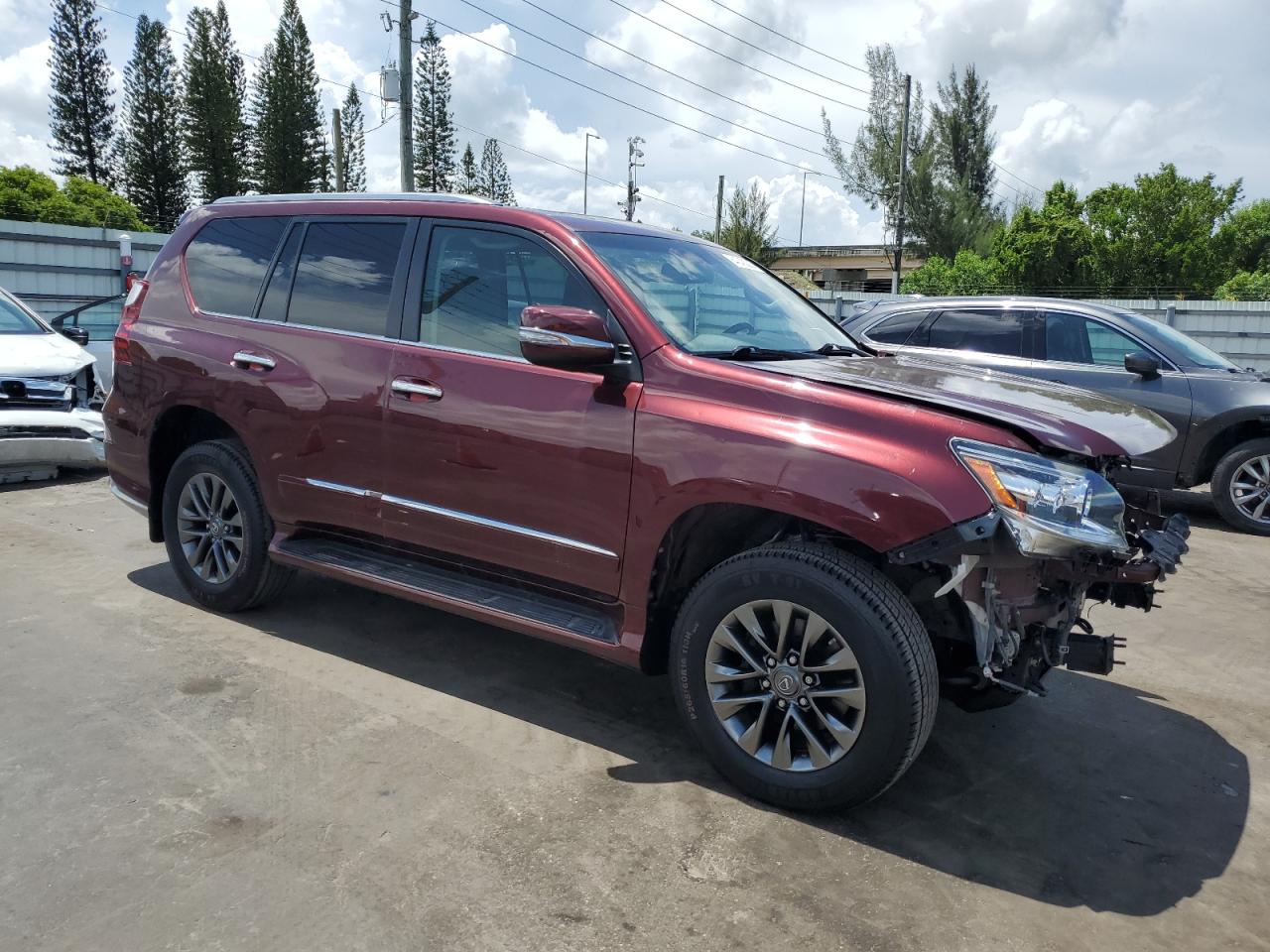 FairThis is a 2019 Lexus GX 460, red in color, with Run & Drive Verified status. The primary damage is to the front end, and secondary damage is from hail. The vehicle has sustained significant front-end damage, affecting the lights, and body panels. Wheels appear intact. Interior shows some wear and tear, consistent with age and mileage, but is largely intact. The airbags status is unknown. The vehicle is drivable but requires considerable front-end repair.