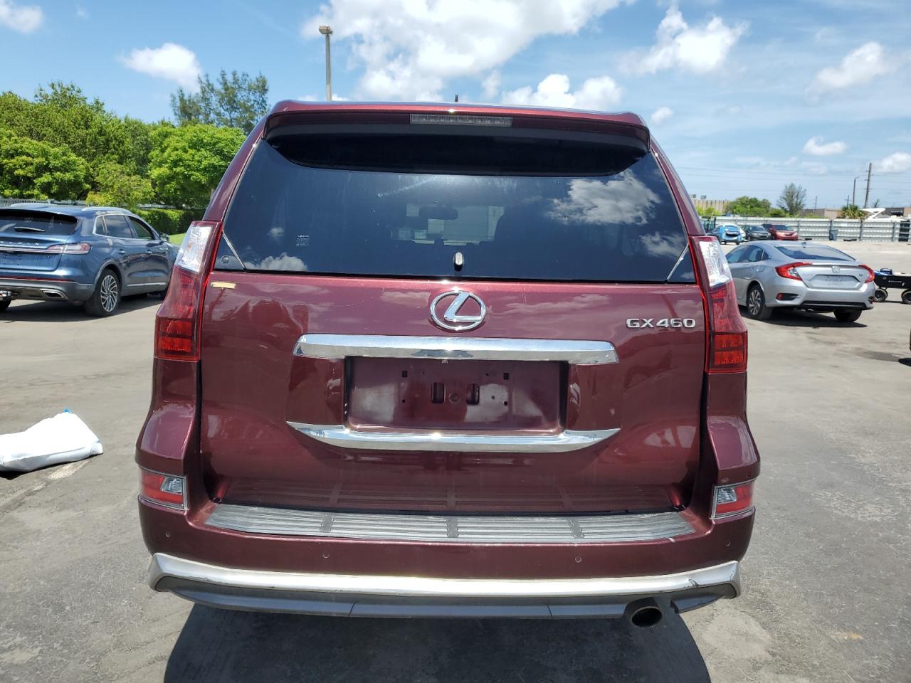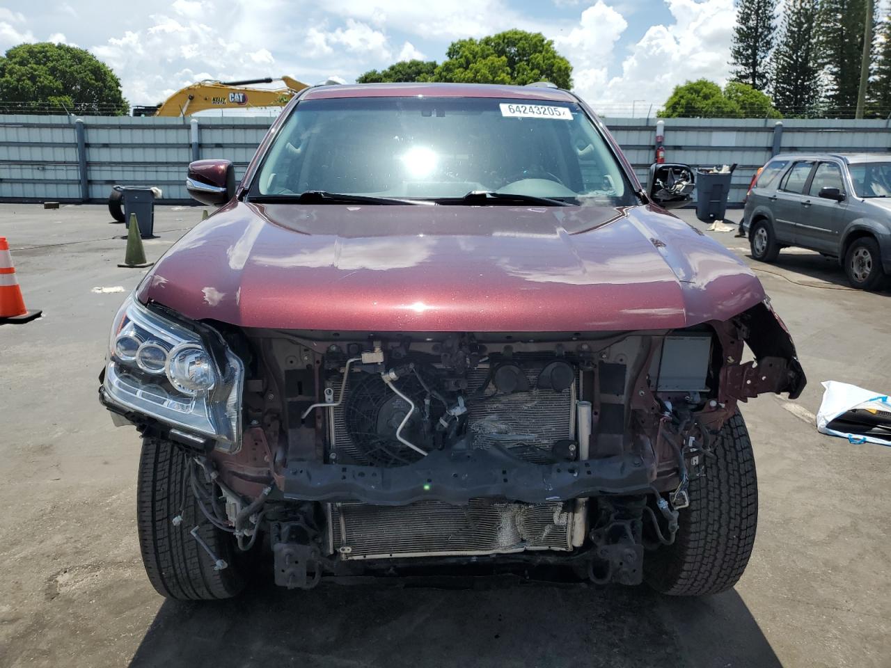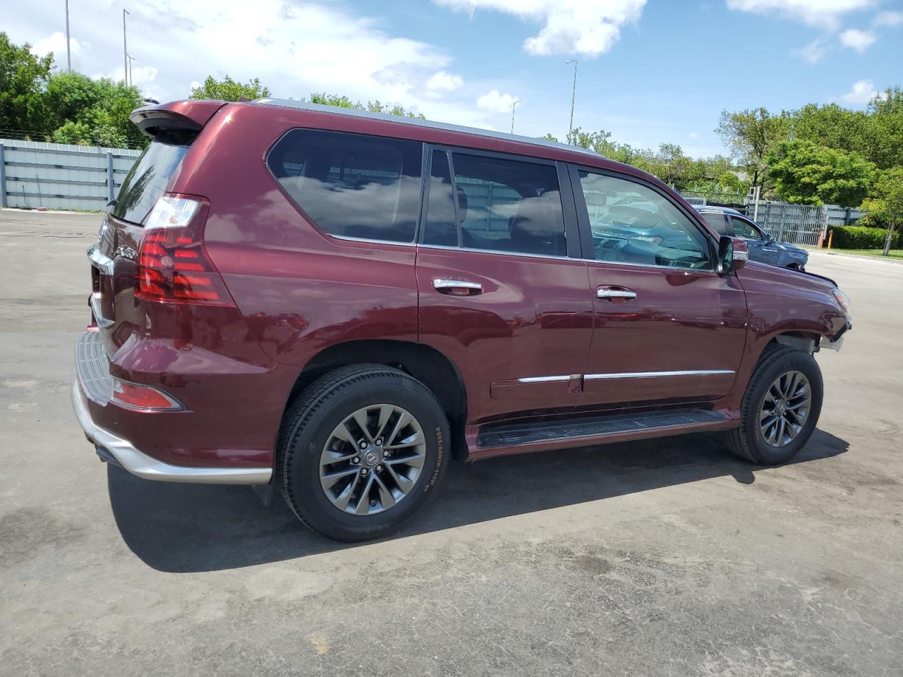 FairThis is a 2019 Lexus GX 460, red in color, with Run & Drive Verified status. The primary damage is to the front end, and secondary damage is from hail. The vehicle has sustained significant front-end damage, affecting the lights, and body panels. Wheels appear intact. Interior shows some wear and tear, consistent with age and mileage, but is largely intact. The airbags status is unknown. The vehicle is drivable but requires considerable front-end repair.