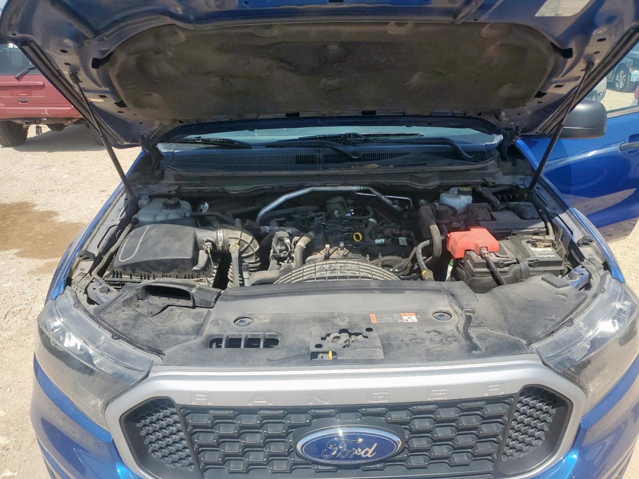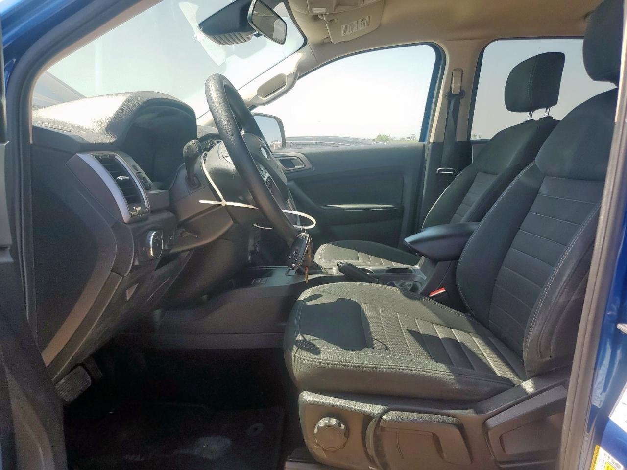 GoodThis is a 2019 Ford Ranger XL in blue. It has hail damage as the primary damage, but no secondary damage. The vehicle is Run & Drive Verified. The interior appears to be in good condition. The vehicle's wheels and lights are in good condition, with no immediate signs of significant damage. The glasses appear to be intact and in good condition. The vehicle is drivable, but has damage to the body panels. The interior shows minimal wear and tear.