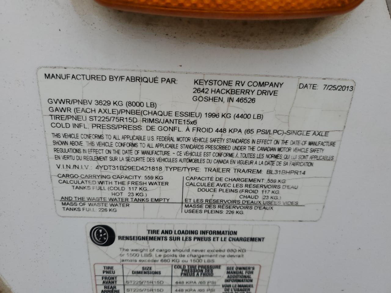 FairThe KEYSTONE PREMIER 2014 is a white travel trailer. The primary damage is to the top/roof, and there is no secondary damage. The interior shows minor damage. The vehicle is drivable but may require some repair.