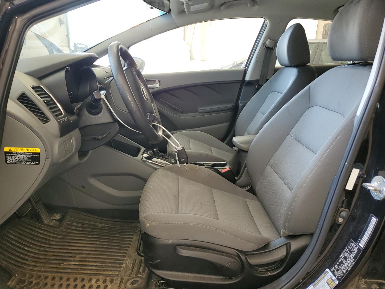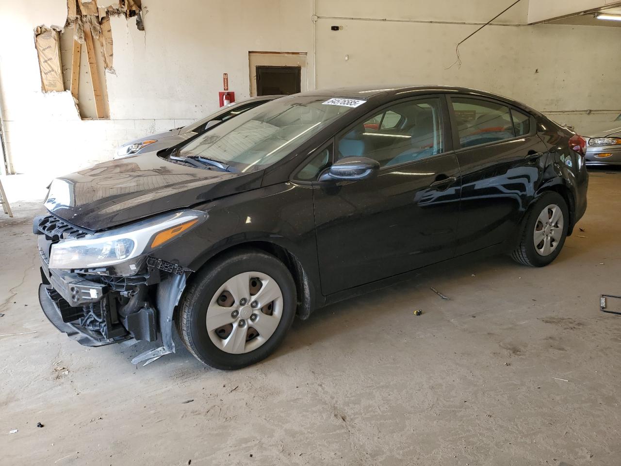 FairThis is a 2018 KIA FORTE LX, black in color, with Run & Drive Verified status. The vehicle has suffered front end and side damage. The wheels and glass appear to be intact.