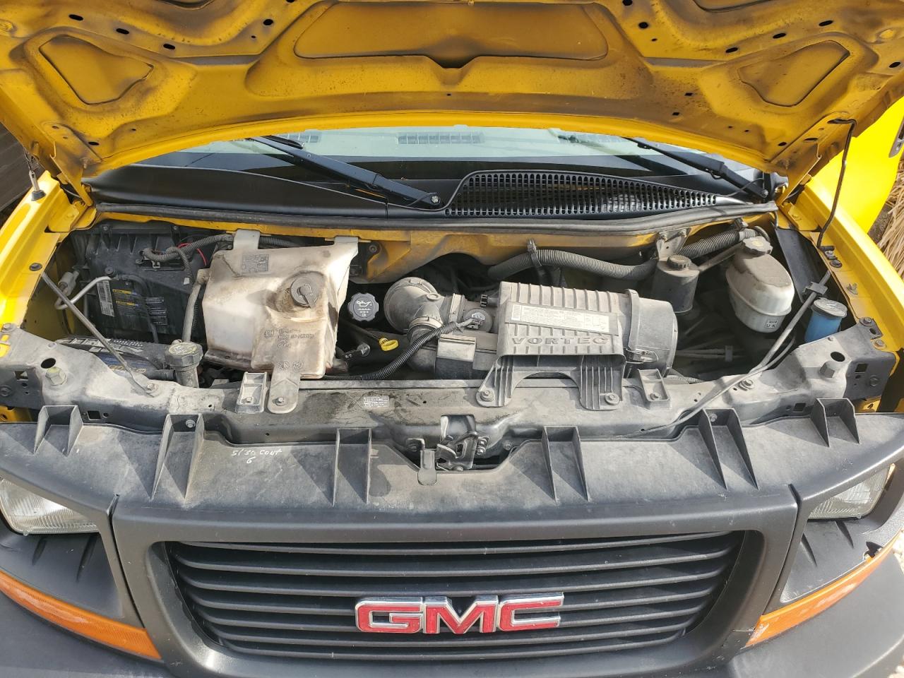 FairThis is a 2006 GMC Savana Cutaway with a yellow exterior. The primary damage is to the front end, and secondary damage is mechanical. The vehicle starts and runs, verified. The vehicle appears to have moderate visible damage. The interior shows signs of wear and tear. The wheels, lights and glasses appear intact but condition is unknown.