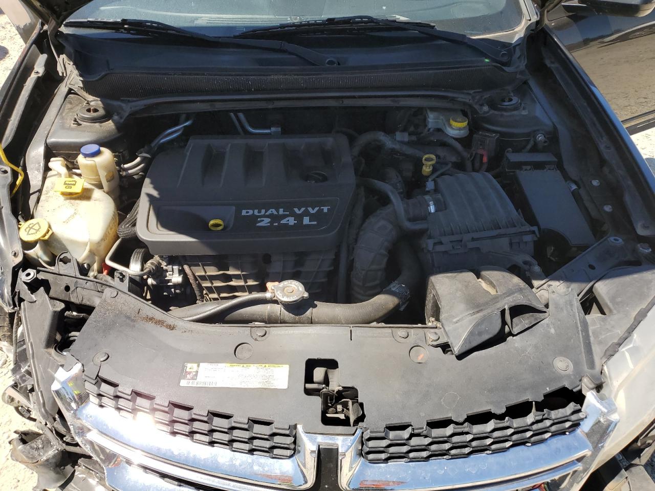 This Dodge Avenger SX 2013 presents with significant front-end damage and side damage, indicating body damage. Interior appears to be in good condition with minimal visible damage.