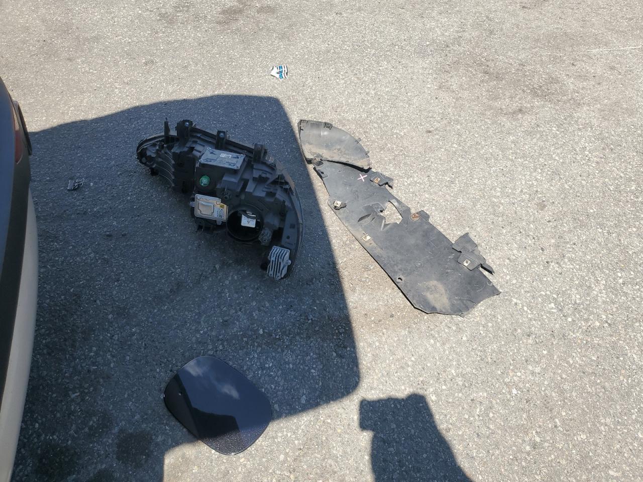 The vehicle exhibits notable damage to its front end, including the bumper, which is detached. There is also damage to the lights and body panels, Wheels appear to be in good condition. The interior shows no significant visible damage.