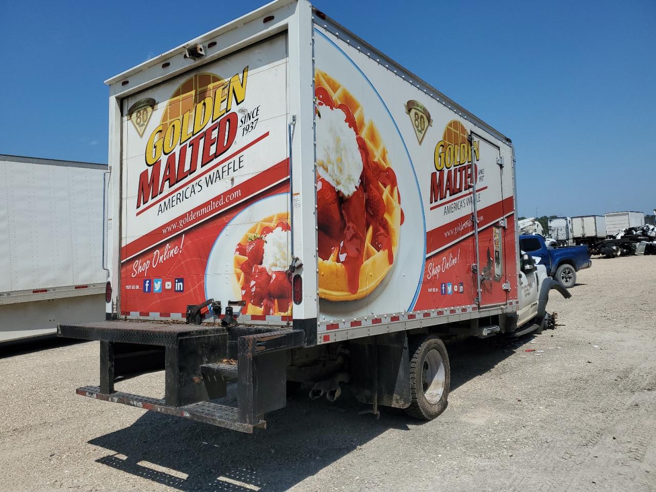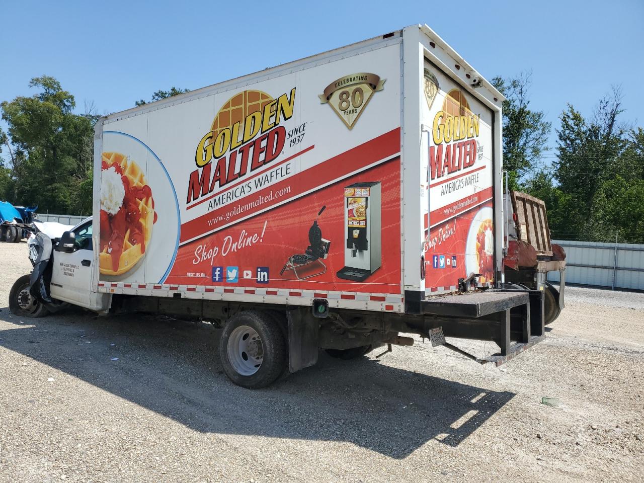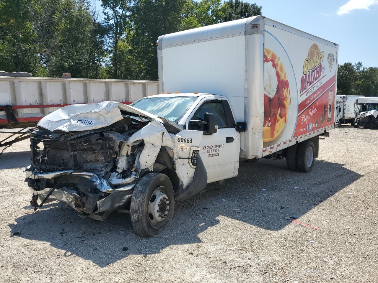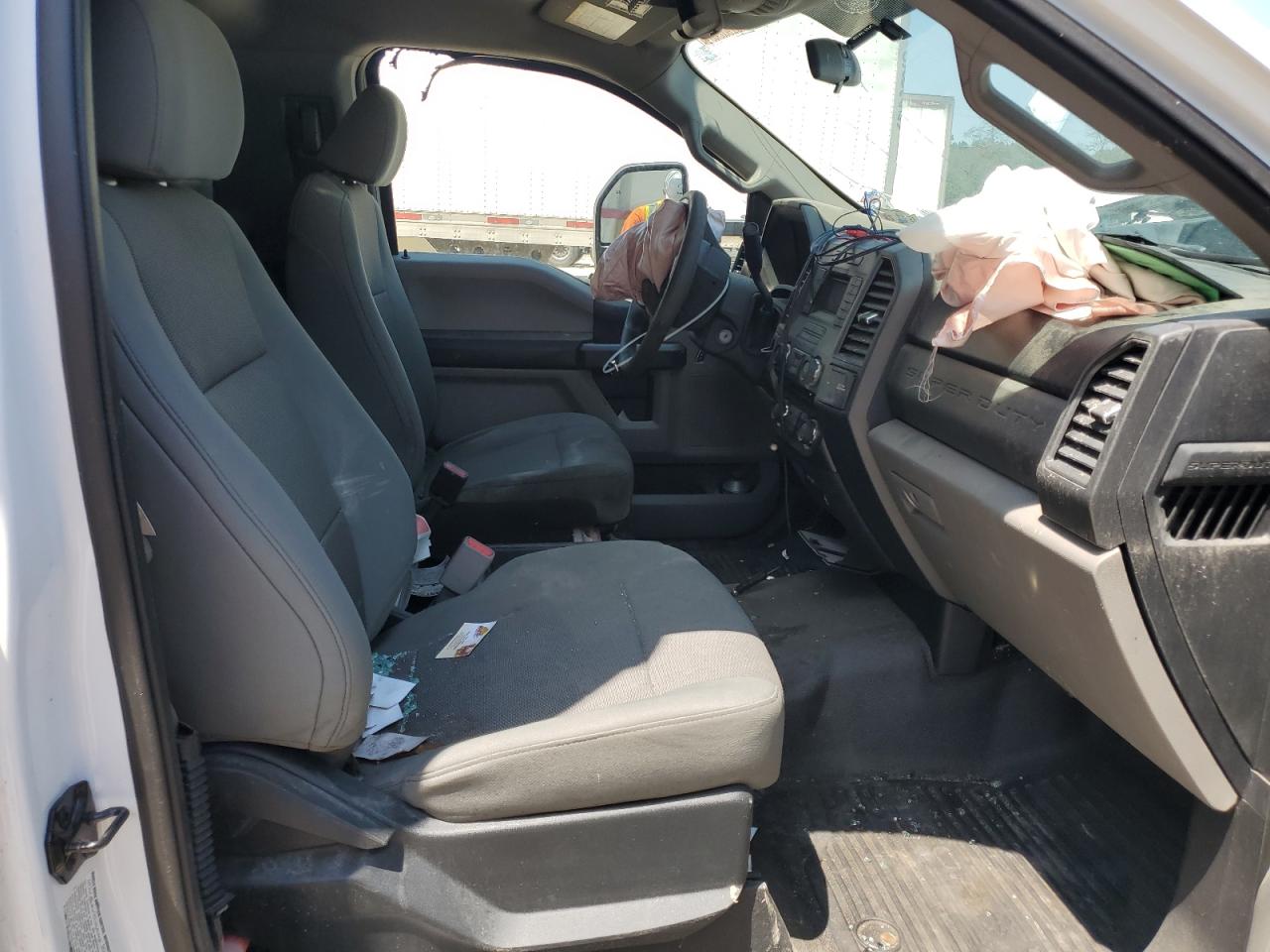 PoorThe 2017 Ford F550 Super Duty truck shows significant front-end damage, indicating a severe impact. The white exterior is heavily impacted with a damaged hood, front fenders, and bumper. The wheels appear to be missing. The interior shows damage with deployed airbags. This vehicle requires considerable repair and is likely not drivable.
