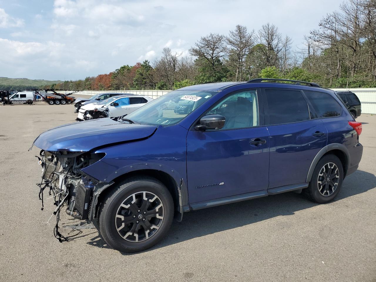 FairThis is a 2020 NISSAN PATHFINDER with significant front-end damage, indicated by the damaged body panels. The vehicle's blue exterior shows clear signs of impact. The interior has deployed airbags. The vehicle's overall condition is Fair, requiring significant repairs. The wheel and lights are in good condition, and the glasses appear to be fine. The car is considered non-drivable due to extensive damage.