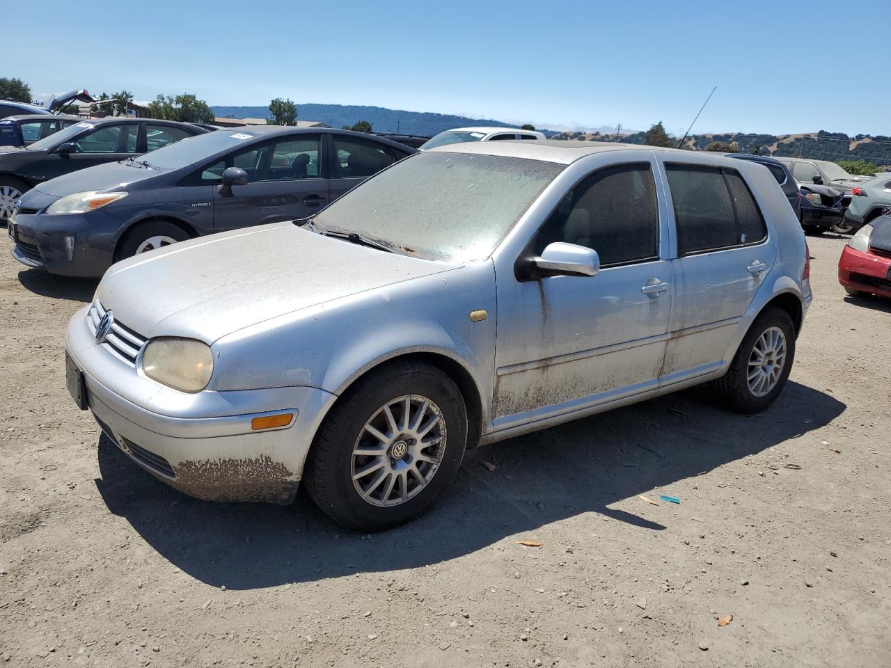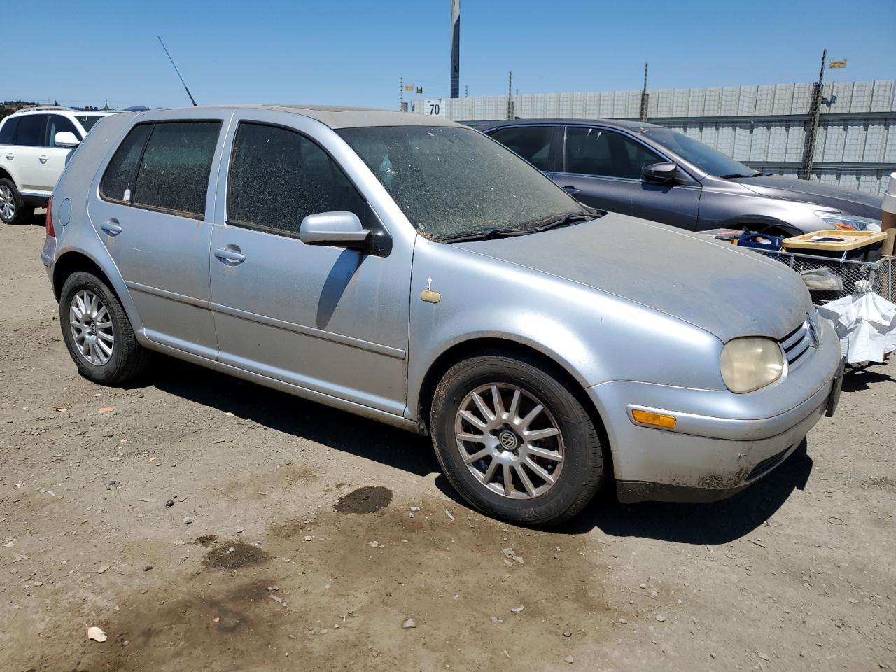 FairThis 2004 VOLKSWAGEN GOLF GLS T, silver in color, shows signs of wear and tear. The primary mechanical damage suggests issues with running components. The exterior exhibits moderate visible damage, and the wheels appear to be intact. The interior is in overall good condition, and the car has 'Run & Drive Verified' start code.