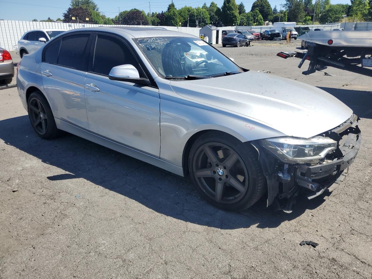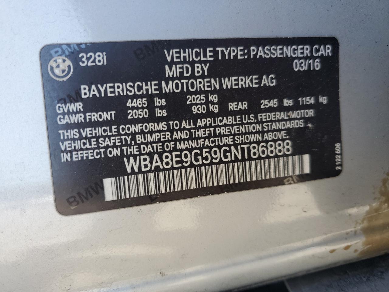 FairSilver BMW 328i SULE 2016 with front-end damage. Run & Drive Verified. The car exhibits significant damage to the front end, including the bumper and front fascia. The wheels appear intact. The lights show signs of damage. The interior appears to be in good condition, with some wear and tear, the airbags are in place. The vehicle is drivable, but the exterior damage requires repair. The glass is fine.