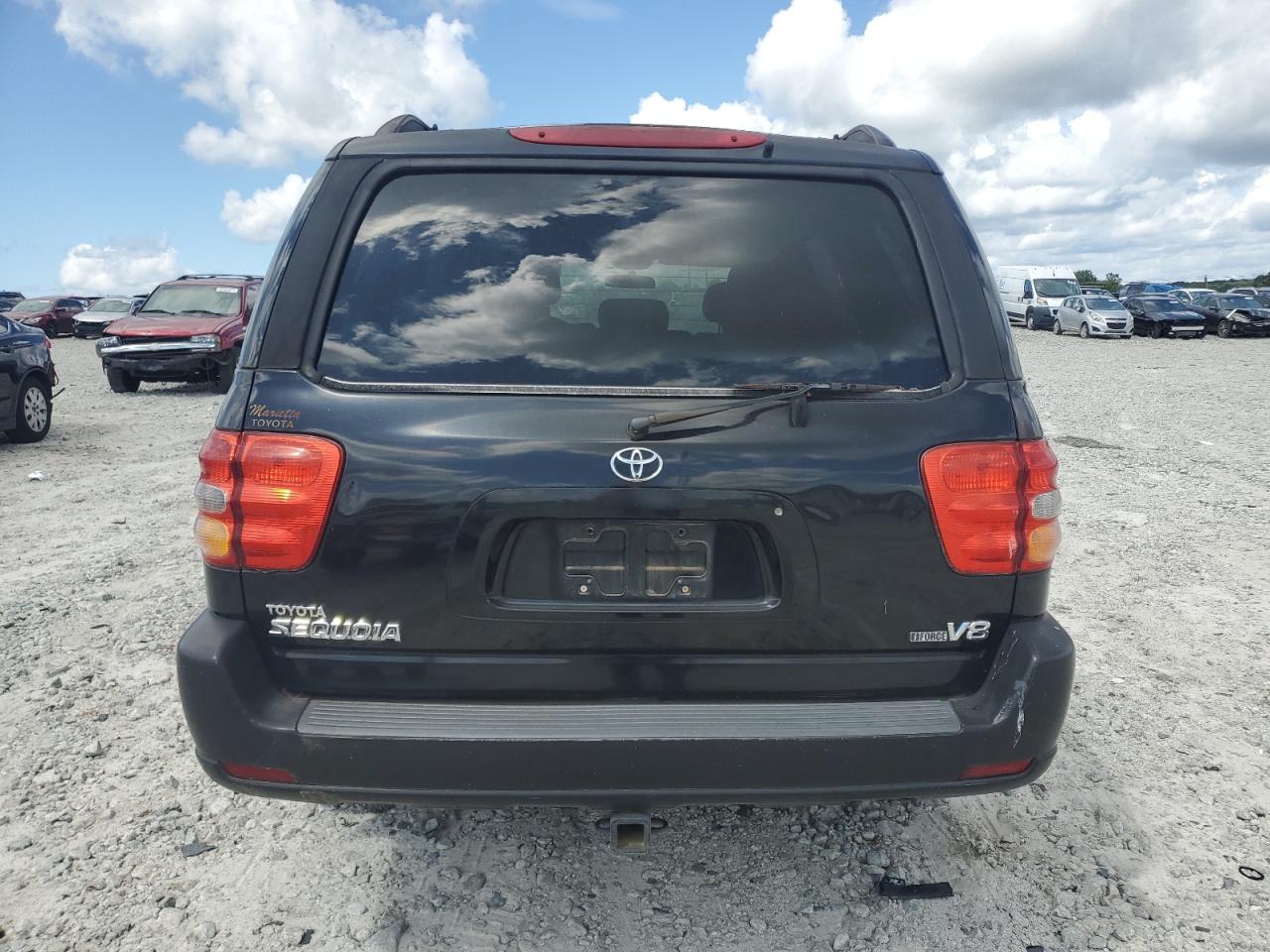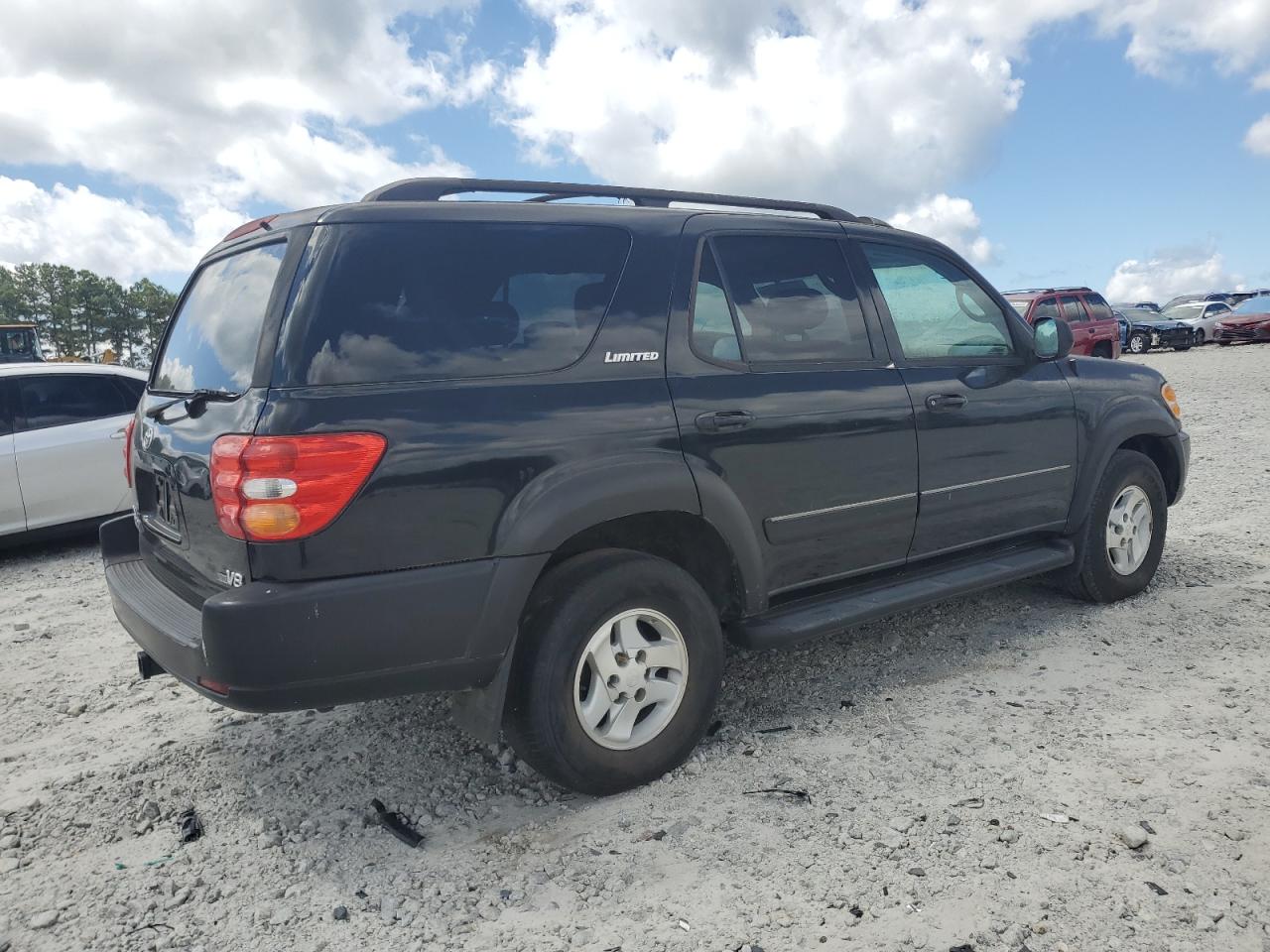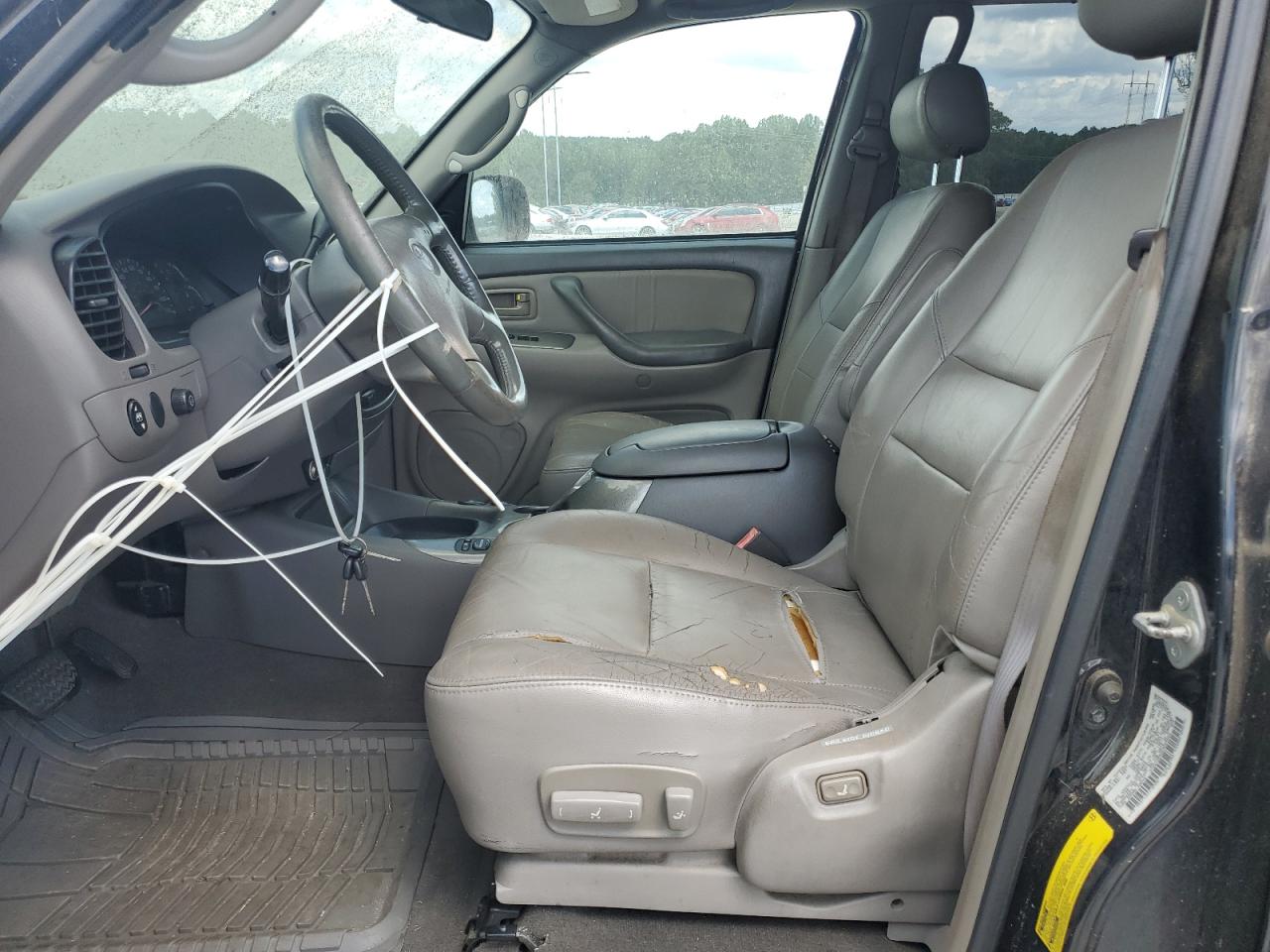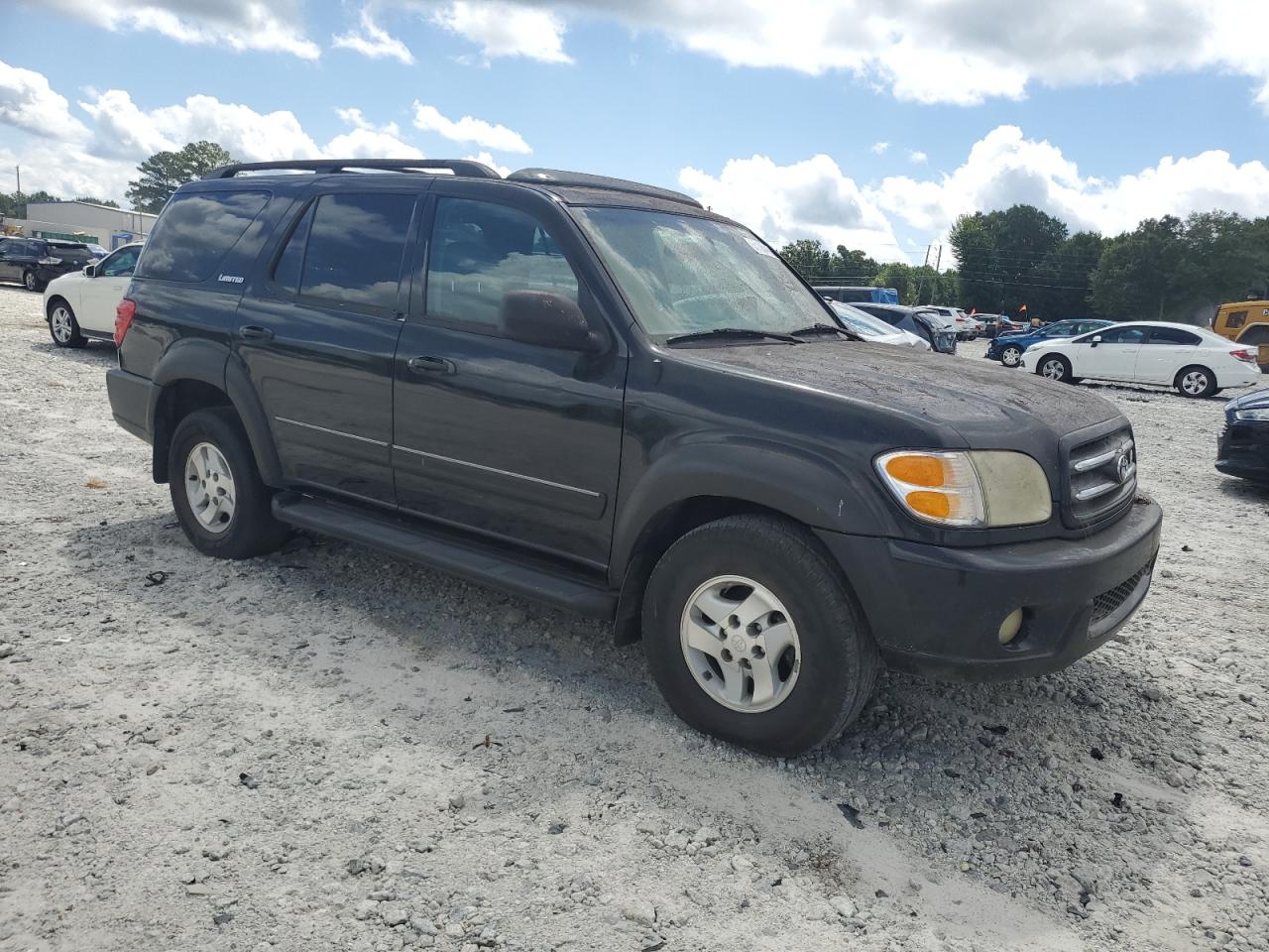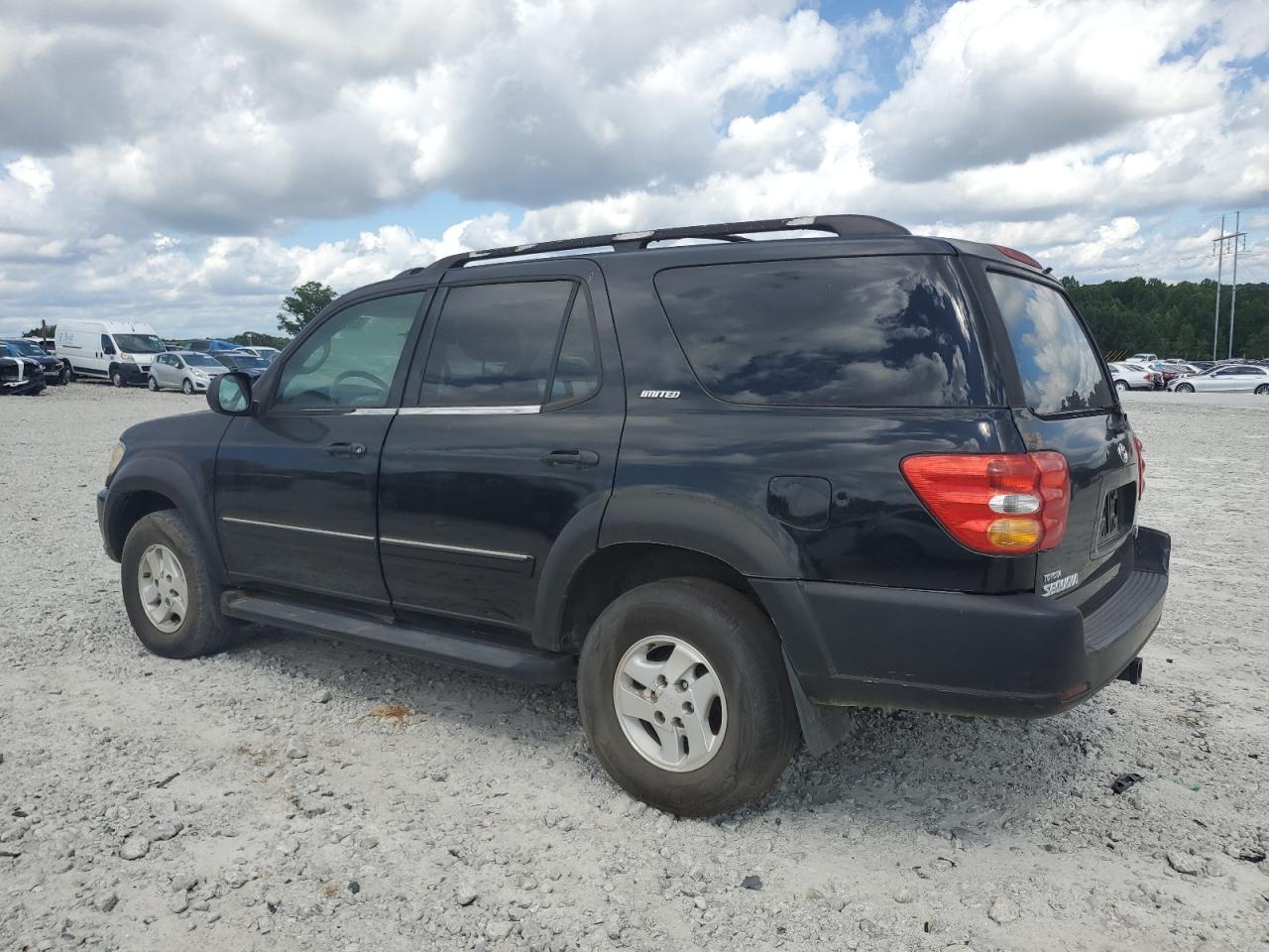 GoodThis is a black 2002 Toyota Sequoia. The vehicle presents with minor dents and scratches, indicating cosmetic damage. There is no mechanical damage, the wheels and lights appears to be in good condition. The interior shows moderate wear and tear, with visible damage to the seats. The airbag may need to be checked, and the car is drivable.