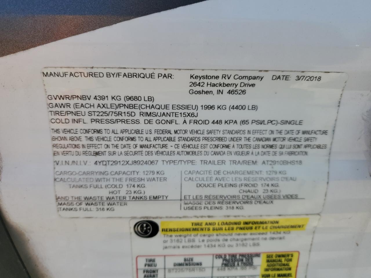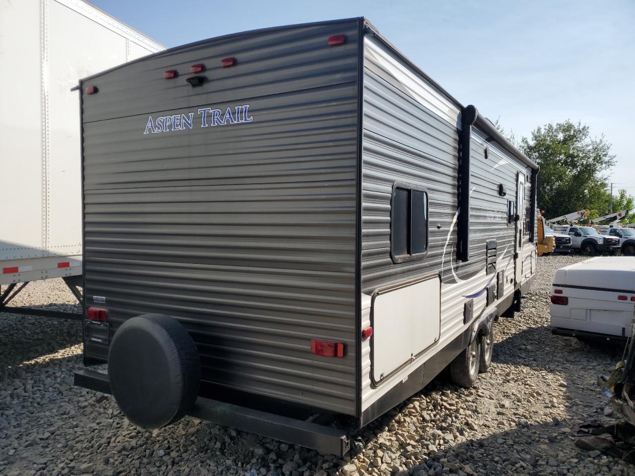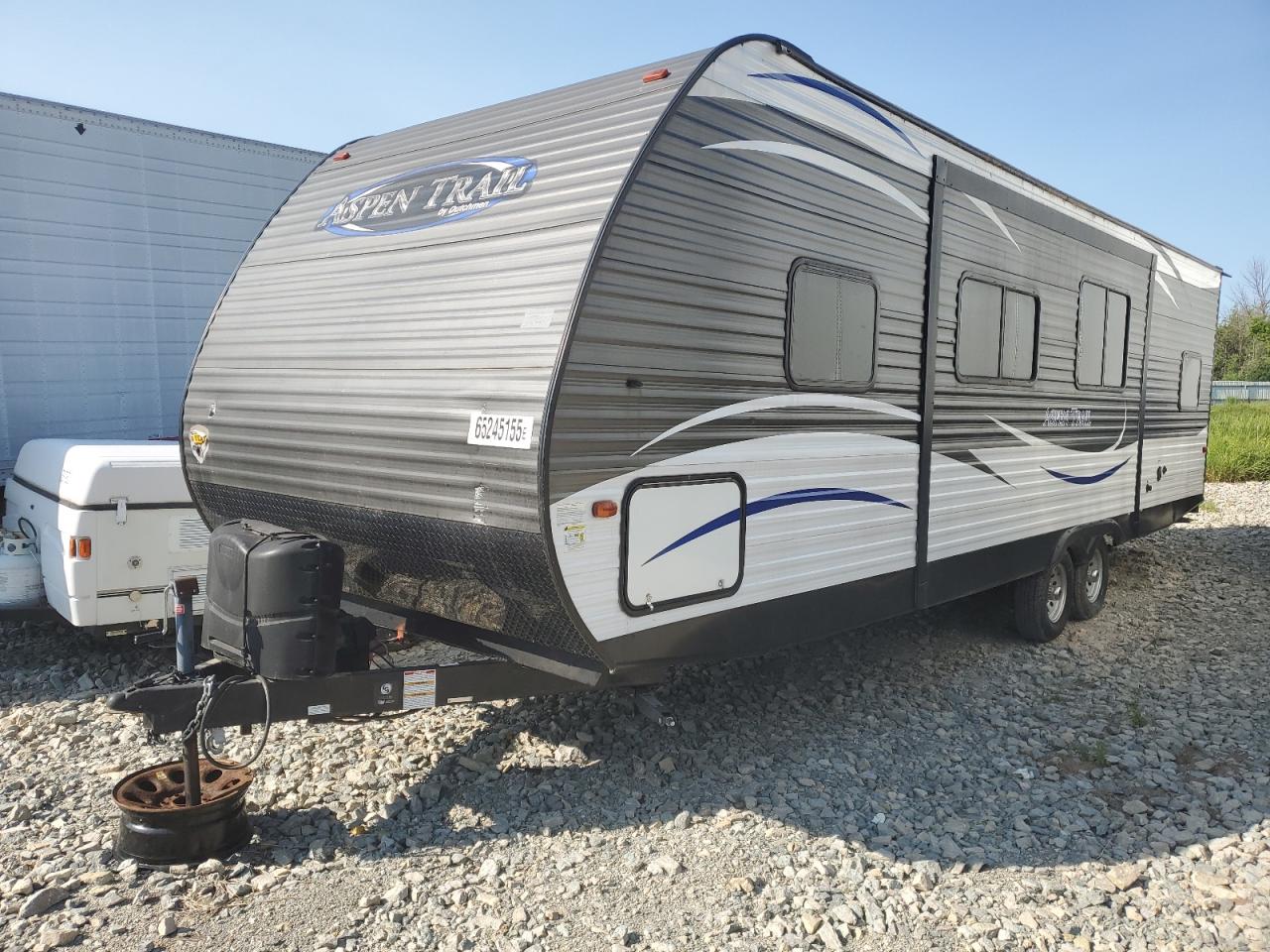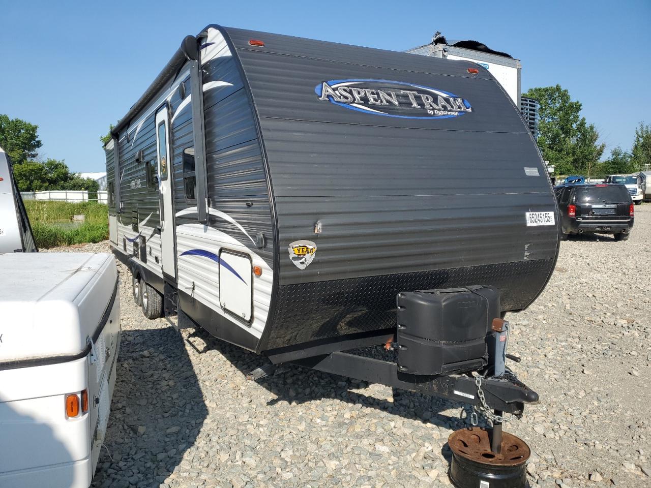 Good2018 Aspen Trail RV Camper with Two-Tone Exterior. Primary damage: HAIL. Secondary damage: none. Exterior damage includes hail dents and possible body panel imperfections. Interior appears to have normal wear and tear with minor visible damage. Mechanical systems not assessed. Wheels and lights appear to be in good condition. No airbag assessment was done.