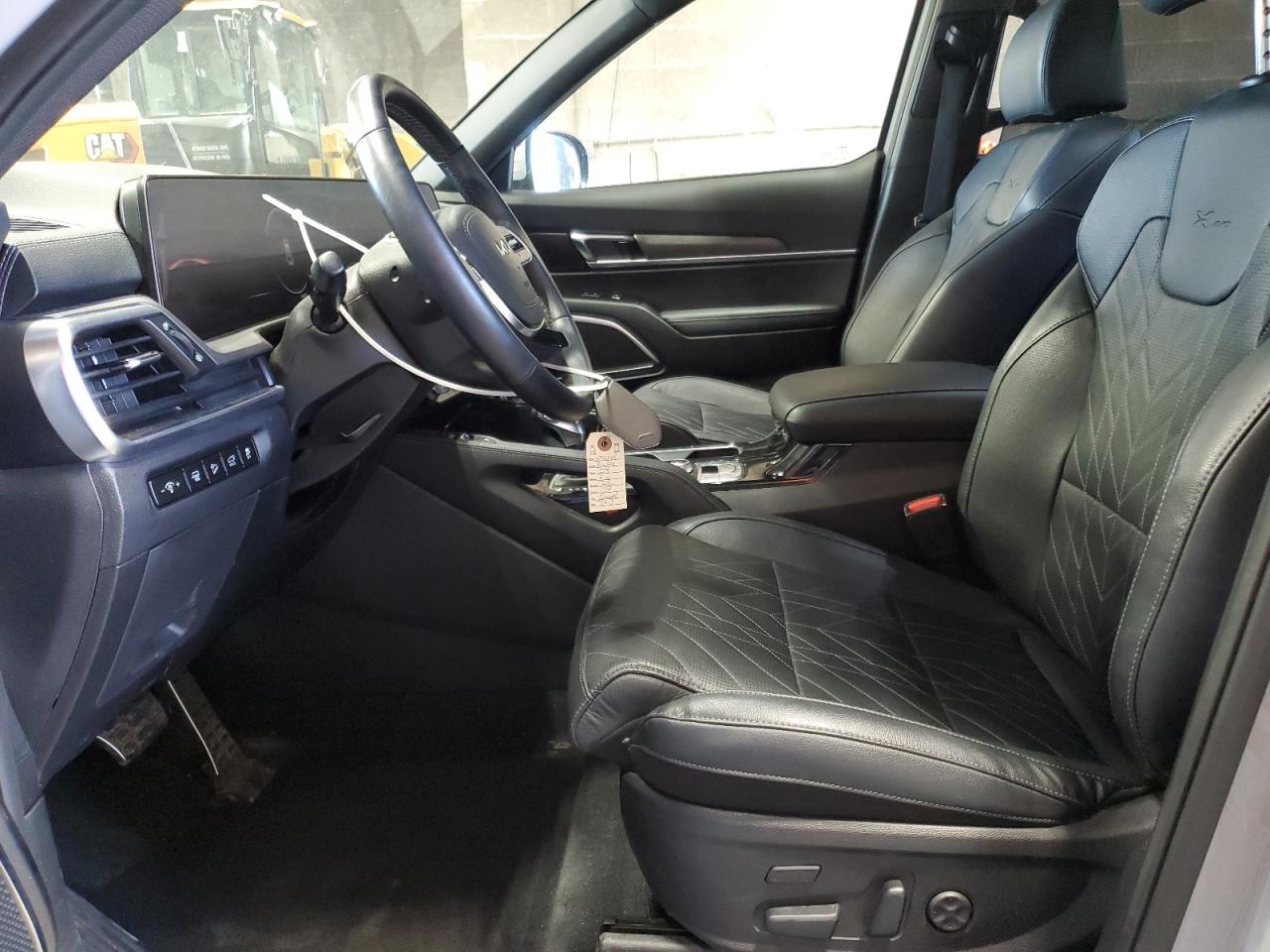 FairThis is a 2023 Kia Telluride. It has sustained front and rear end damage. The vehicle's color is gray. The wheels appear to be intact, and the lights and glasses show no significant damage.