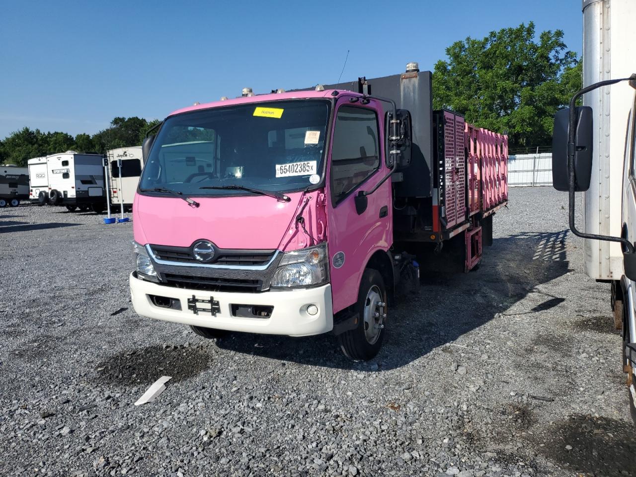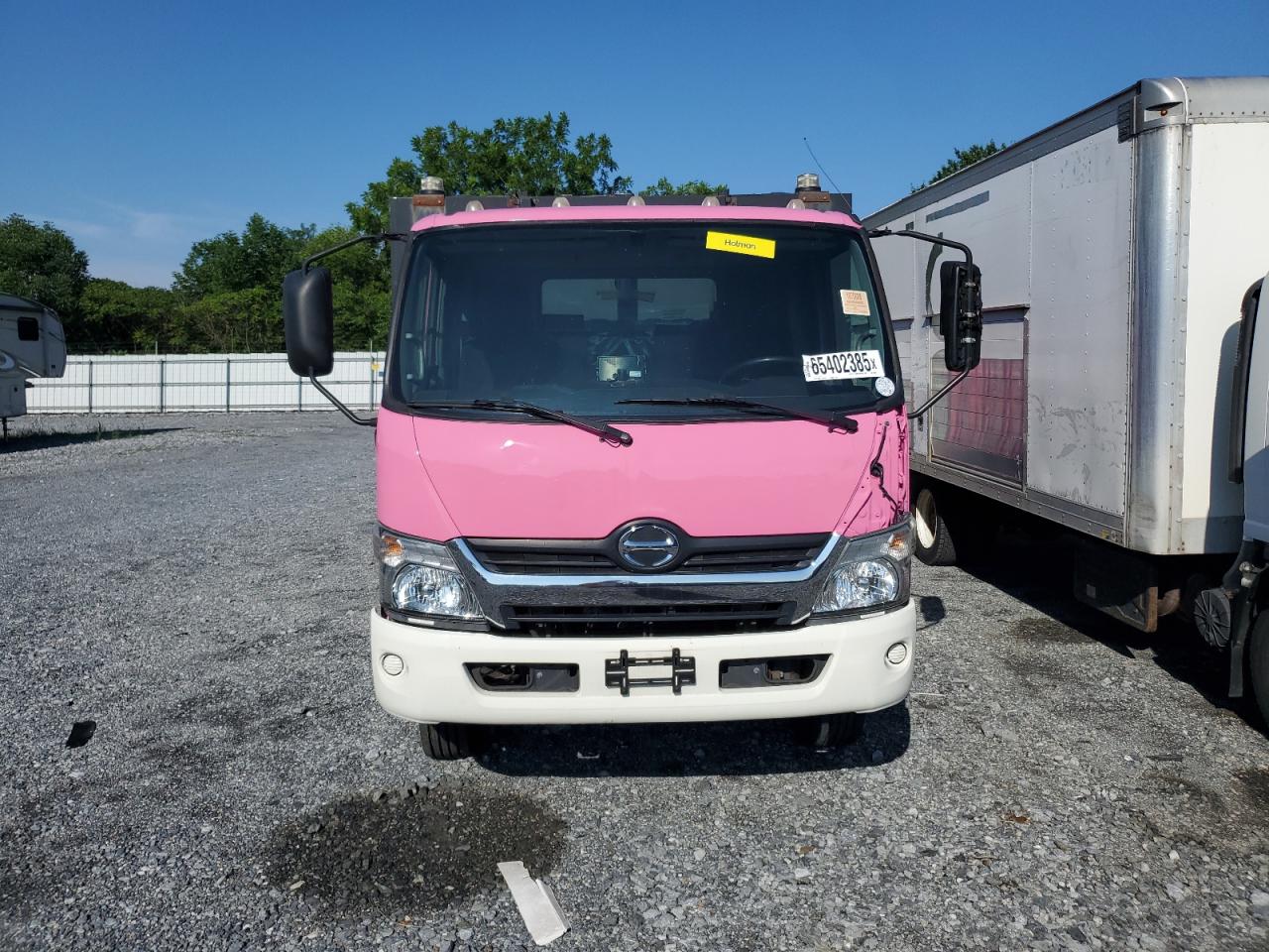 GoodThe 2017 HINO 195 is a pink truck, displaying minor dents and scratches with no secondary damage. It's a Run & Drive Verified vehicle. Overall, the vehicle presents well, suggesting diligent maintenance. The interior shows signs of wear, but the damage is minor. The vehicle's primary damage involves body panels, and it is drivable. Despite minor imperfections, the truck is in good overall condition.