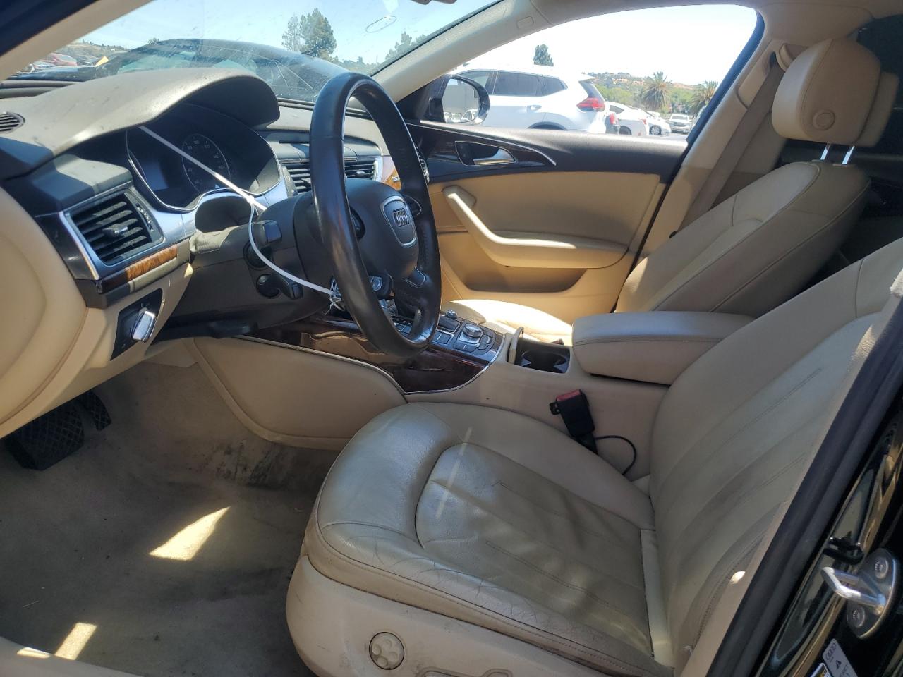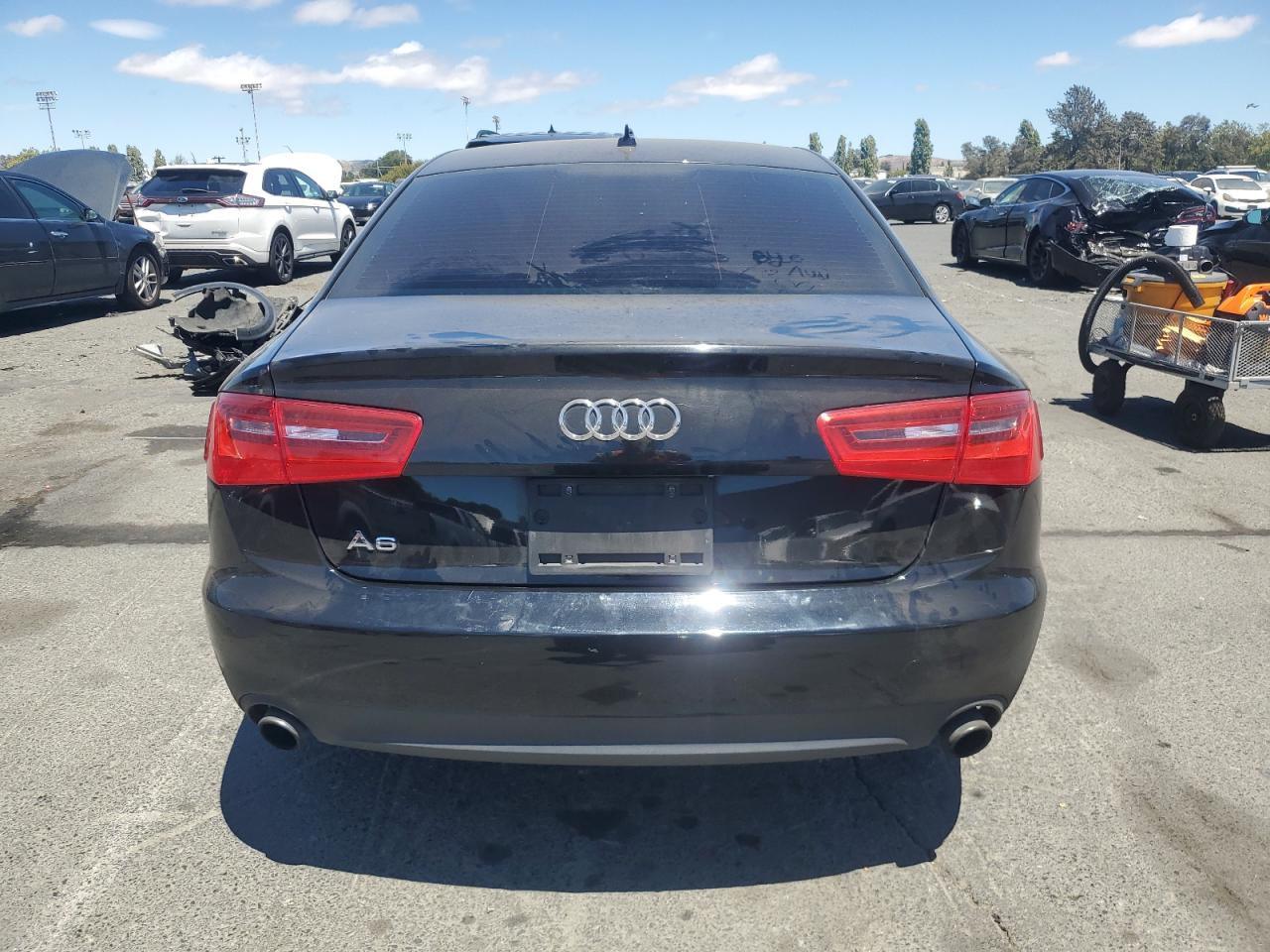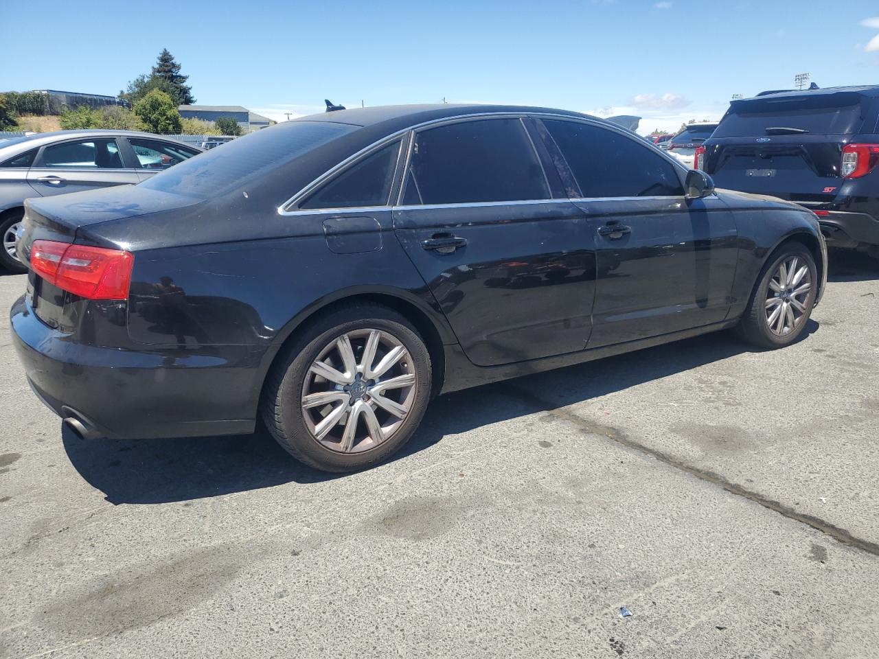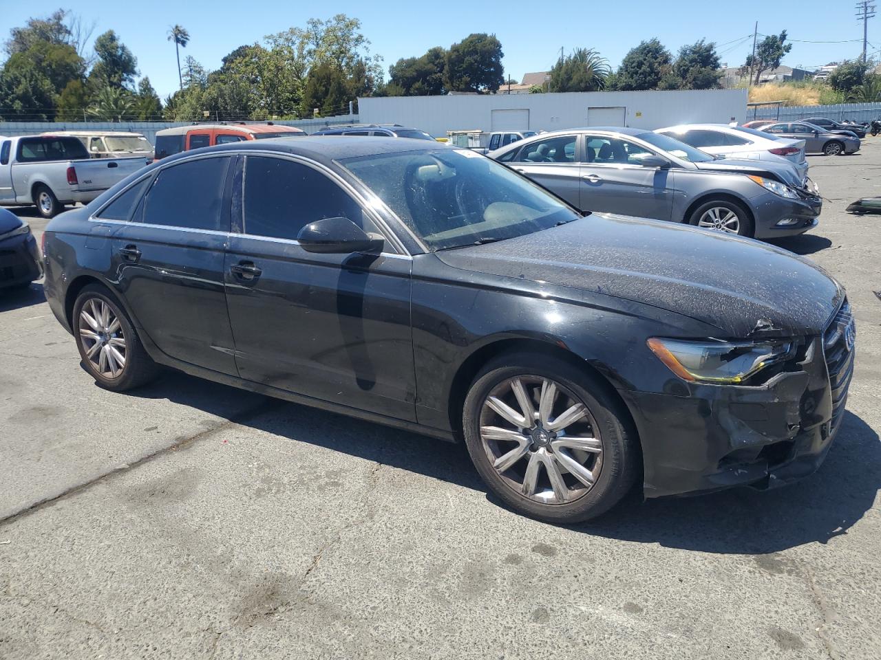 GoodThe AUDI A6 PREMIUM 2014 is a black sedan. The primary damage is to the front end, with no secondary damage noted. The vehicle is reported to Run & Drive Verified. The wheels, lights, and glasses appear to be in decent condition. The interior shows signs of wear. Overall, the vehicle seems drivable with moderate visible damage. The vehicle has a body damage.