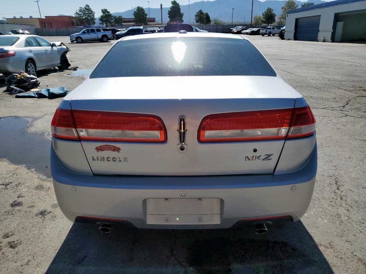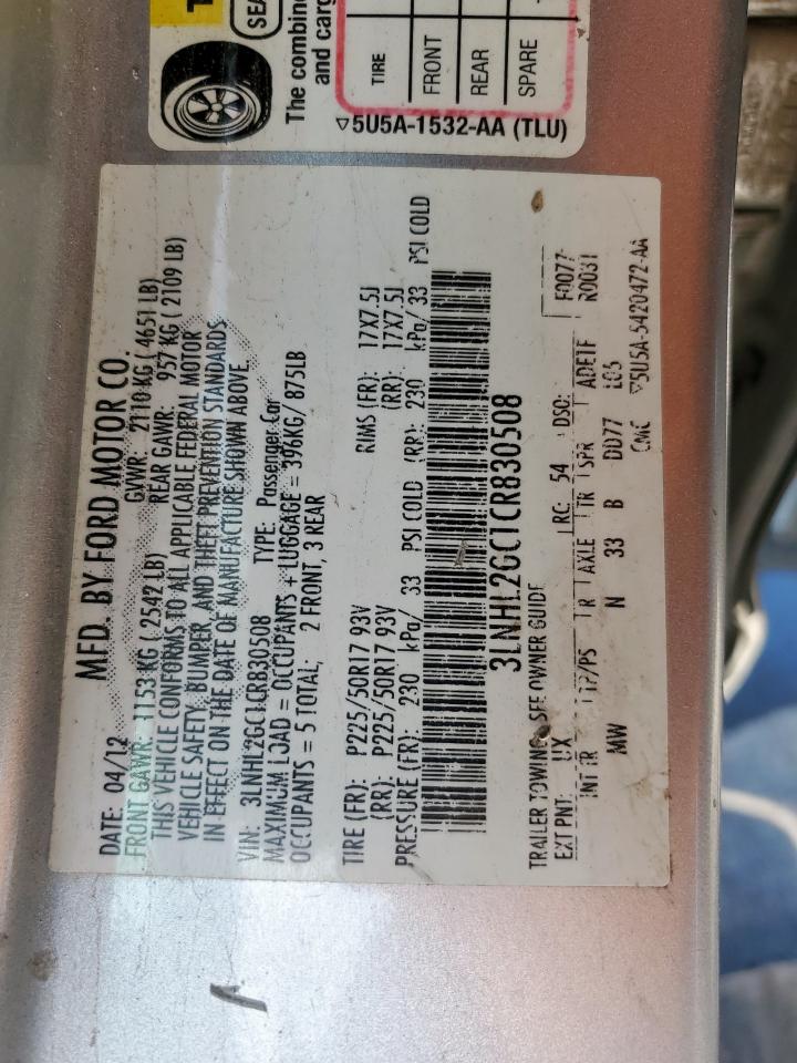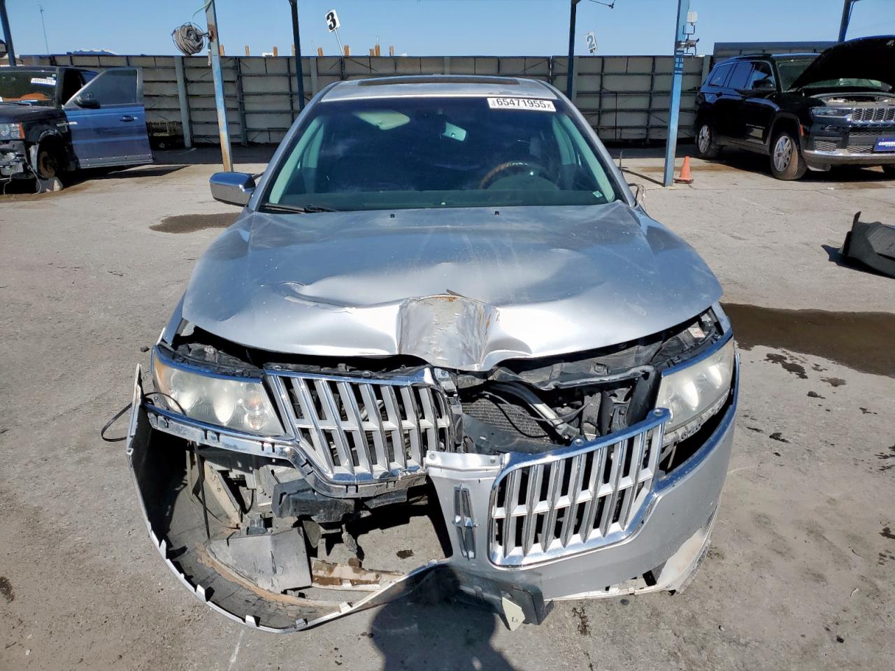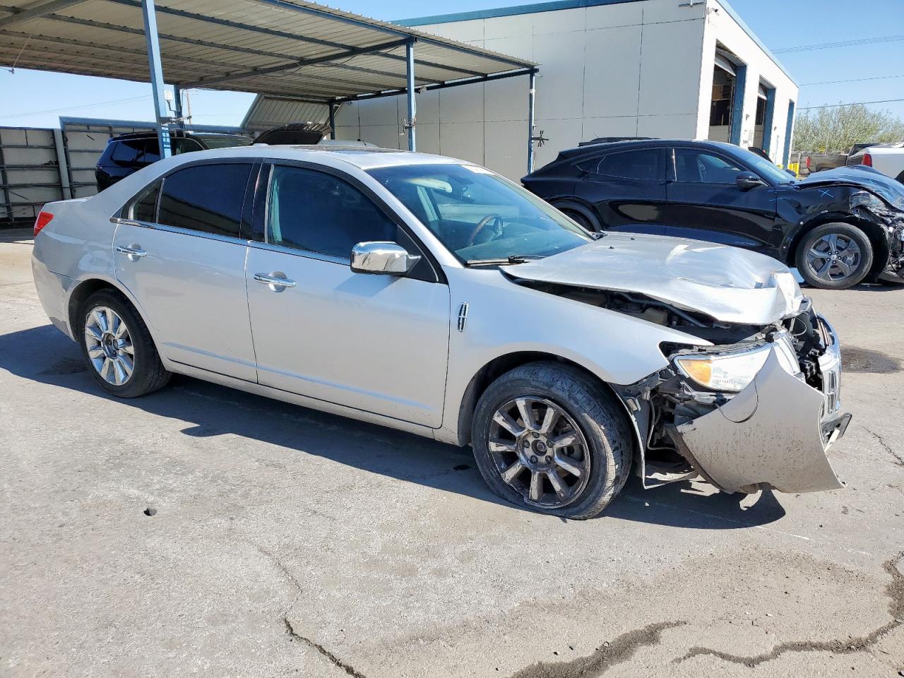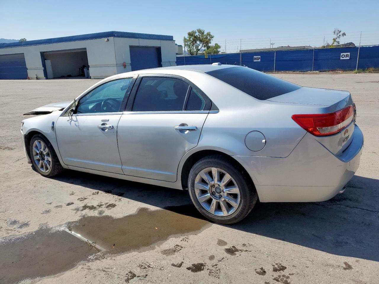 FairThe 2012 Lincoln MKZ, silver in color, exhibits FRONT END damage, with secondary MINOR DENT/SCRATCHES. The damage is concentrated at the front, indicating a collision. The wheels appear intact, while the lights and glasses may have sustained damage. Interior shows signs of wear, including potential airbag deployment. The vehicle's body has damage, and it is likely drivable, so the Overall Exterior Condition is one level higher.