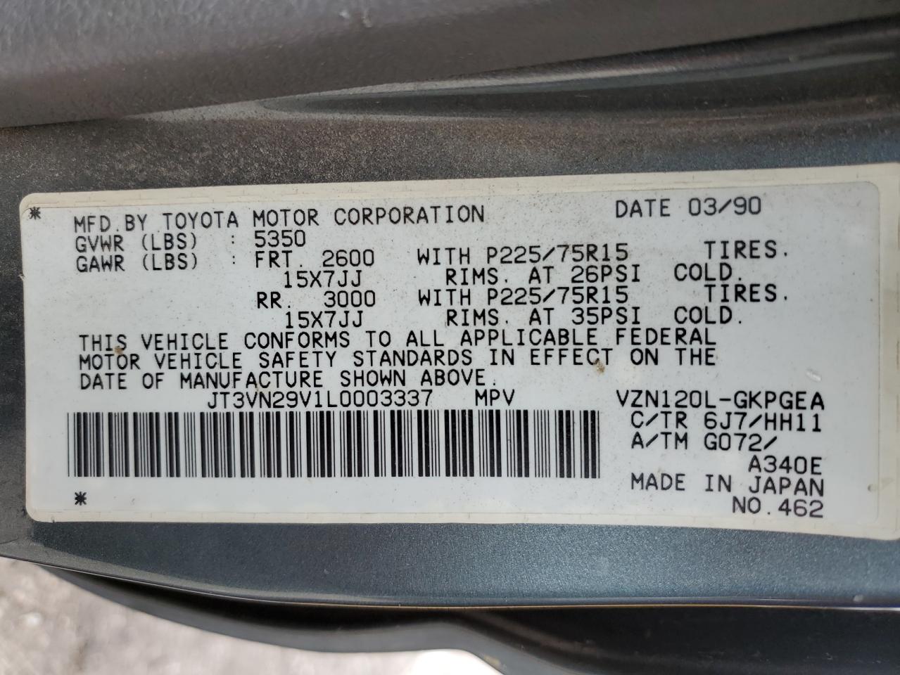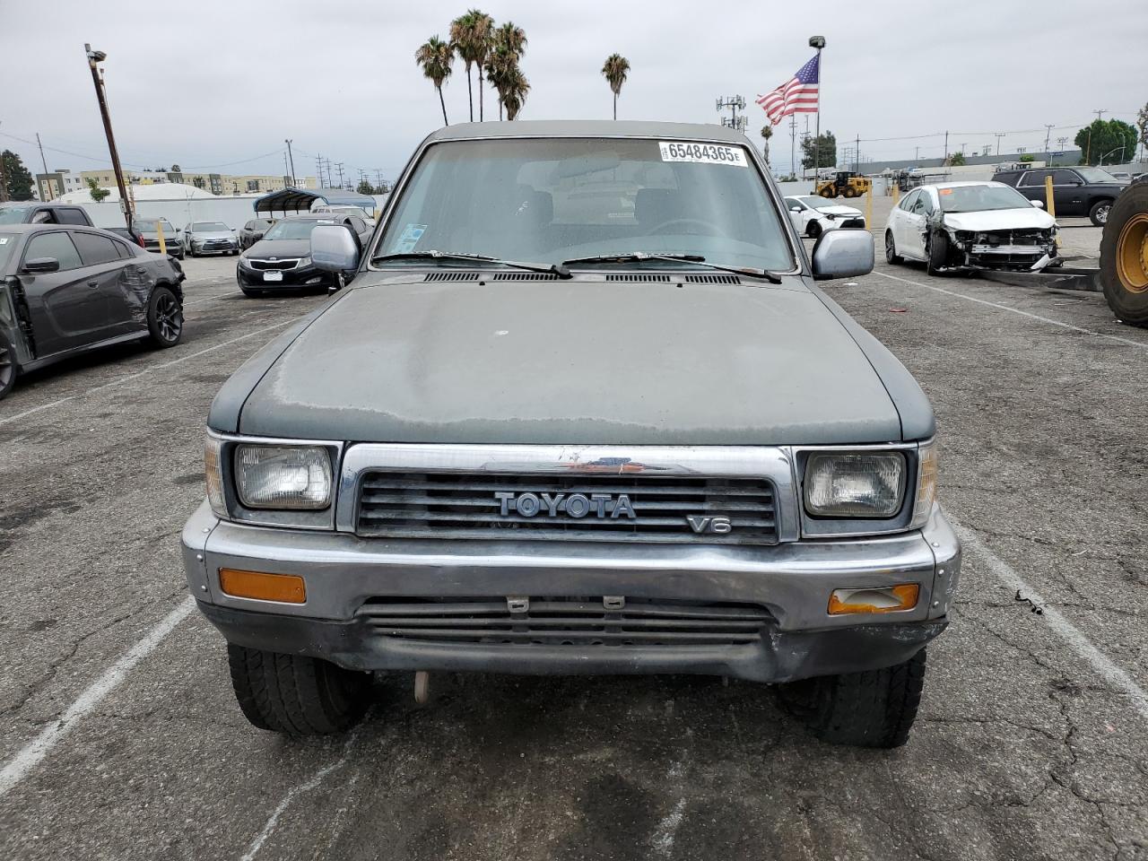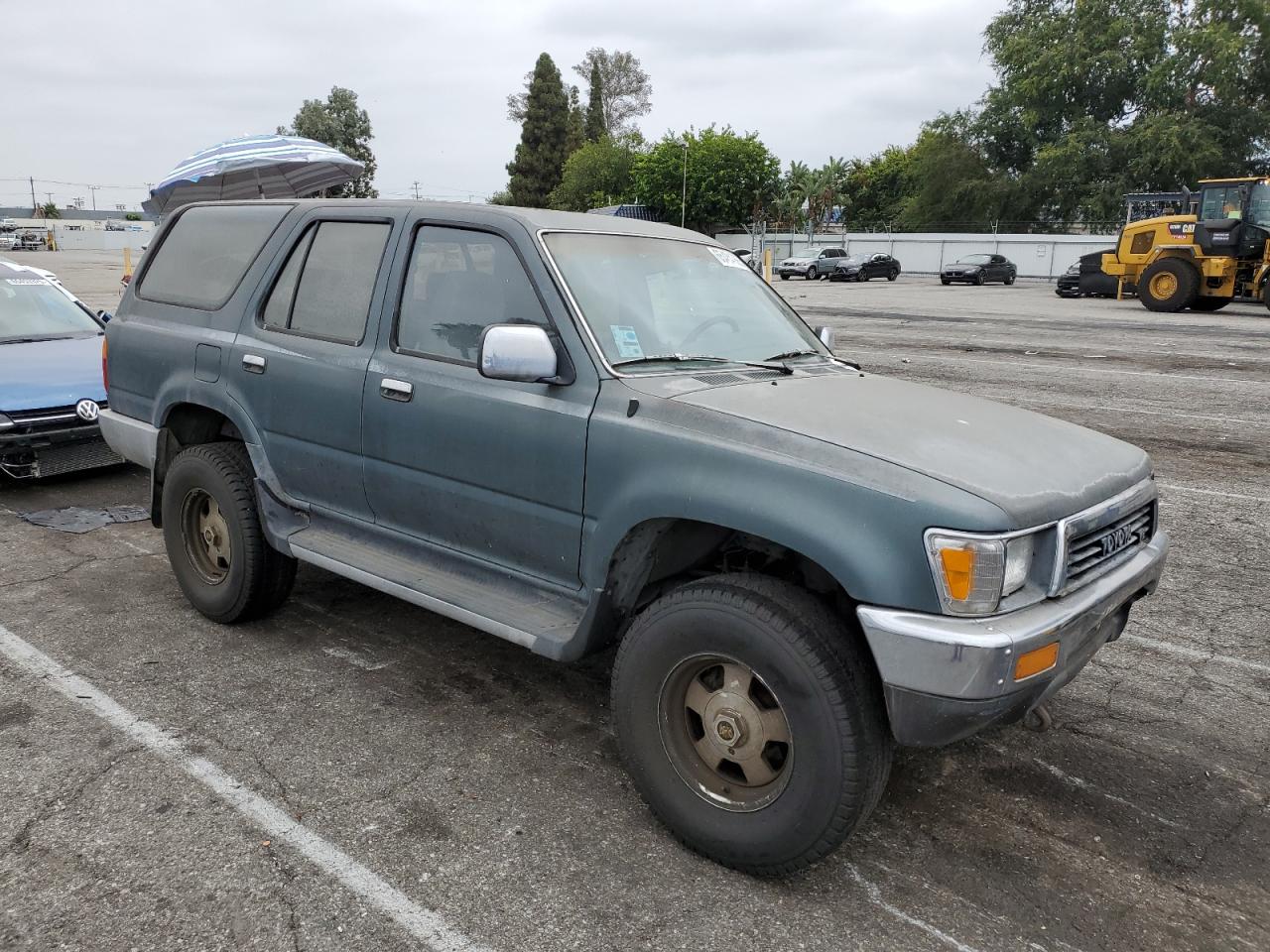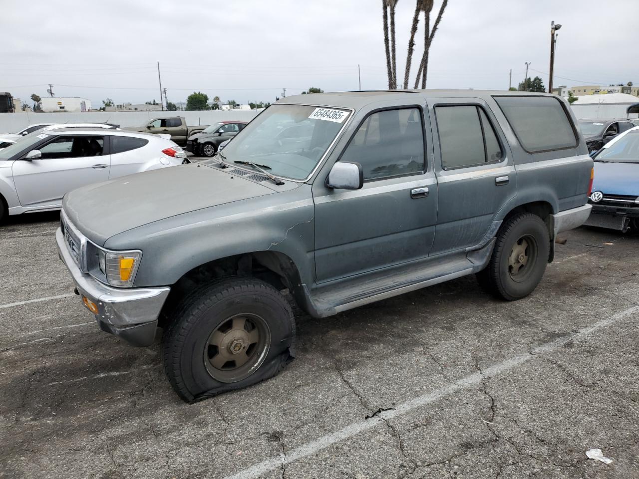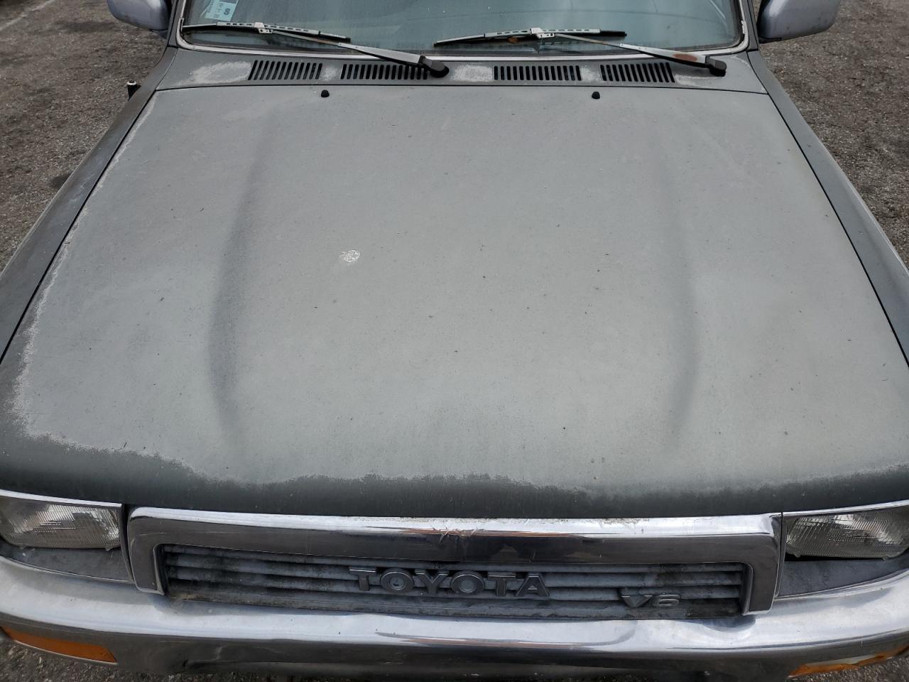 FairThe 1990 Toyota 4Runner is in a moderate state, with visible signs of wear and tear. The vehicle has a green exterior. It's drivable, as the "Run & Drive Verified" start code suggests, but requires some repairs. The interior shows moderate visible damage, and the exterior mirrors this with damage to the body panels. The tires appear to be flat. Summary: Toyota 4Runner, 1990, green, body damage, drivable, moderate condition. The vehicle has visible wear, flat tires, body panel damage, and the interior condition is also affected. Overall condition is fair.