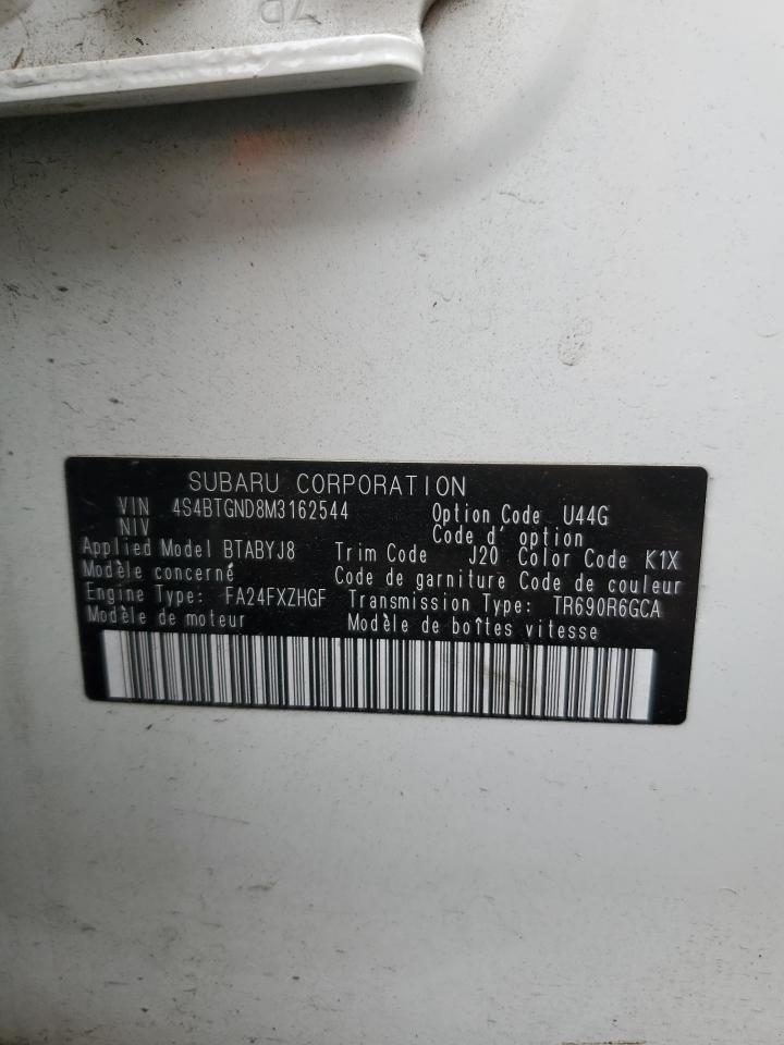 FairThis 2021 Subaru Outback XT has sustained significant damage. The primary damage is to the side, with secondary damage to the rear end. The car's white exterior is heavily impacted, particularly on the driver's side, with extensive body panel damage. The rear of the vehicle also shows signs of impact. The interior appears to have deployed airbags. The car is considered 'Run & Drive Verified'.