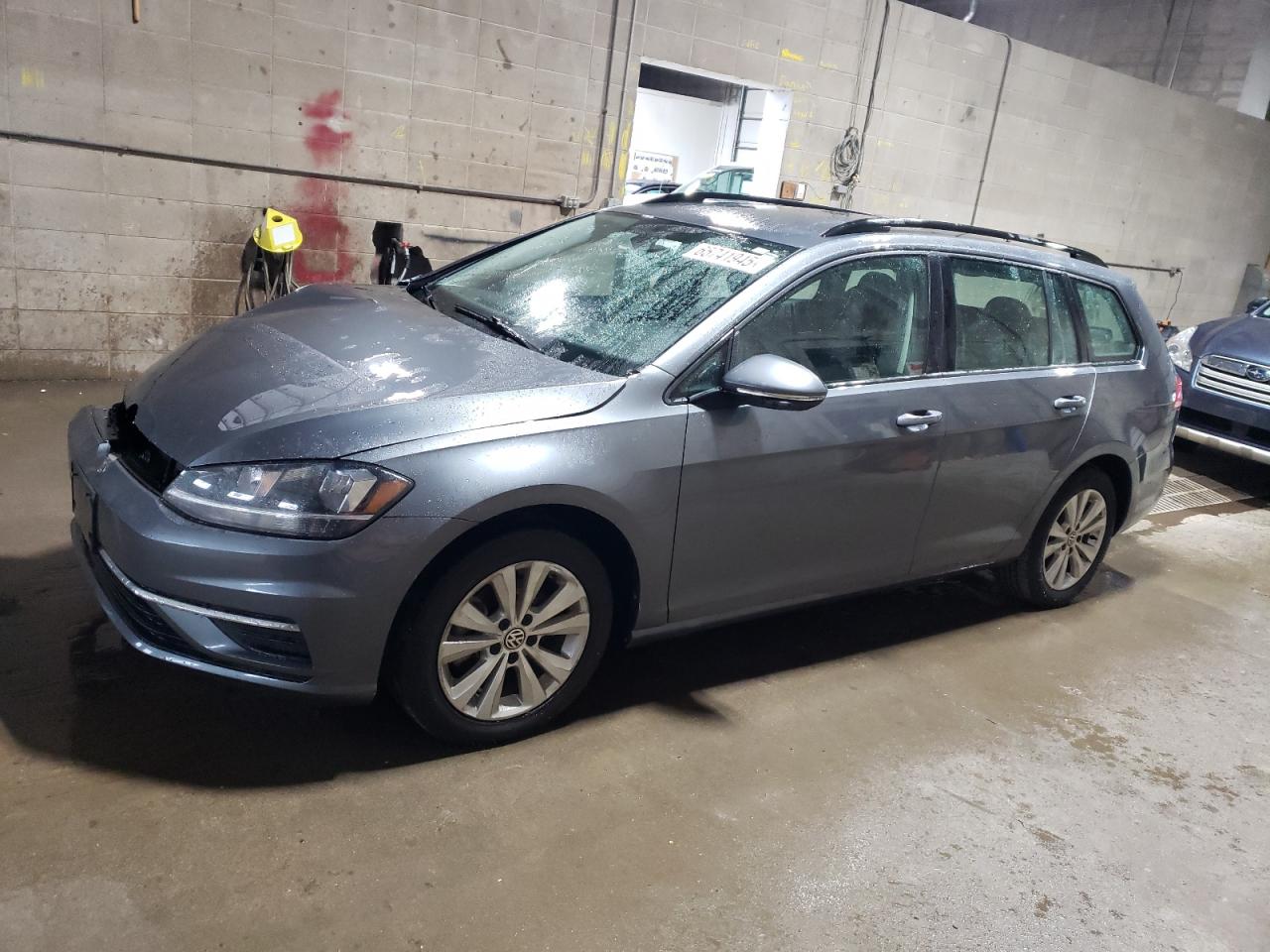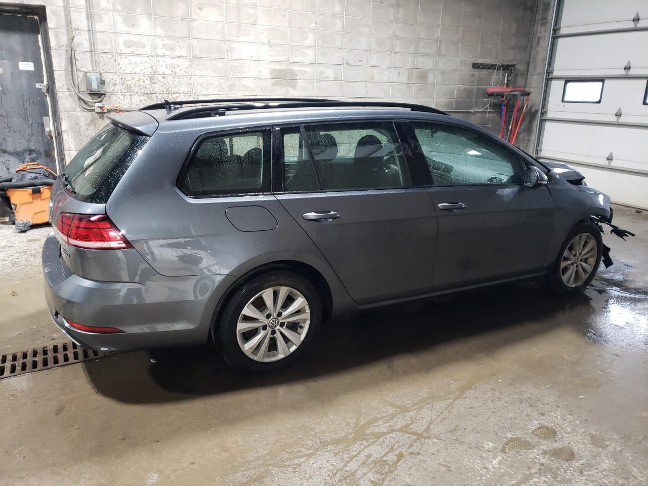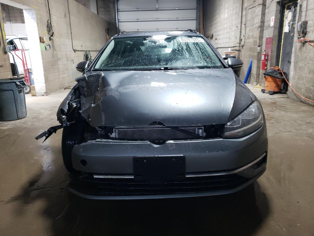 FairThis is a 2019 Volkswagen Golf SportWagen, the vehicle's primary damage is to the front end, indicating a collision. The exterior is gray. The car starts and runs, verified by inspection. The interior shows some signs of wear, but the vehicle is drivable despite the front-end damage. The wheels appear to be in good condition, and the lights and glasses are intact, despite the impact. The airbags are present but may have deployed.