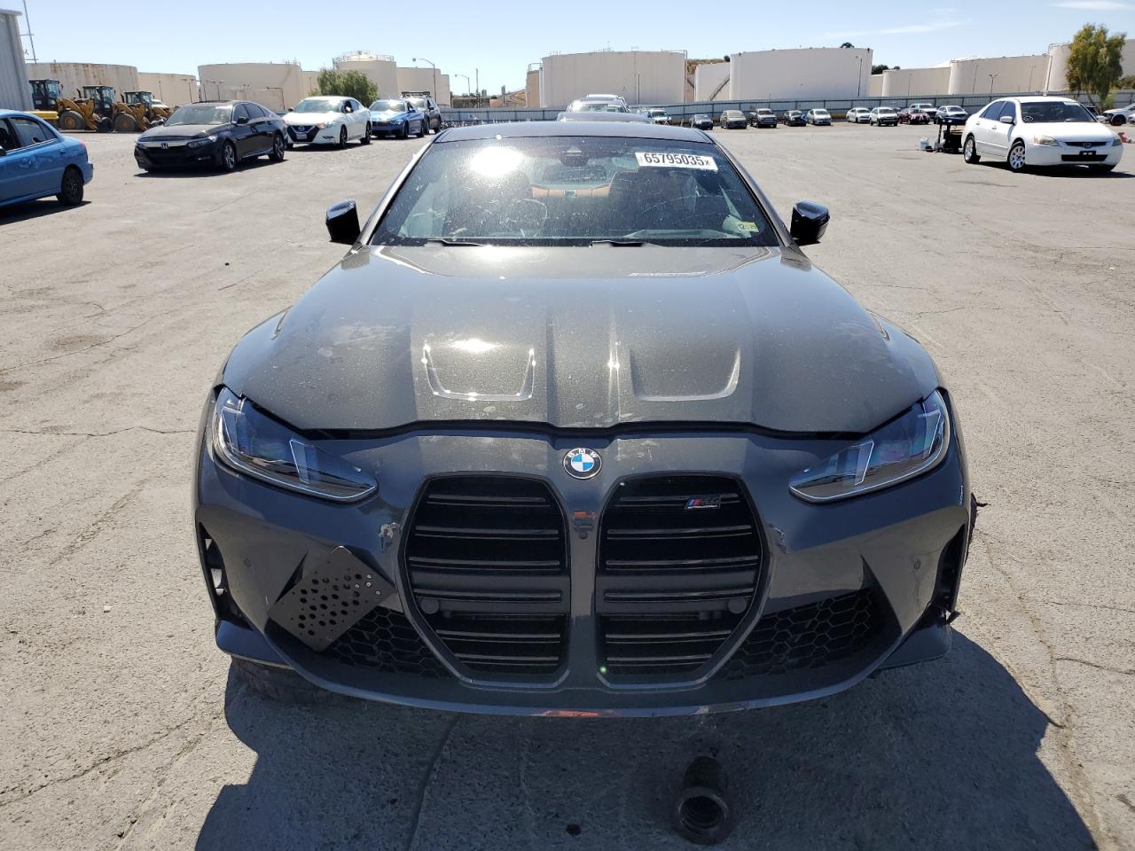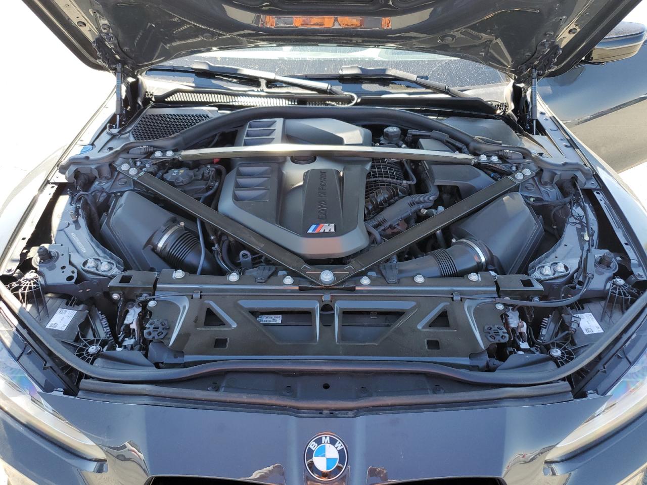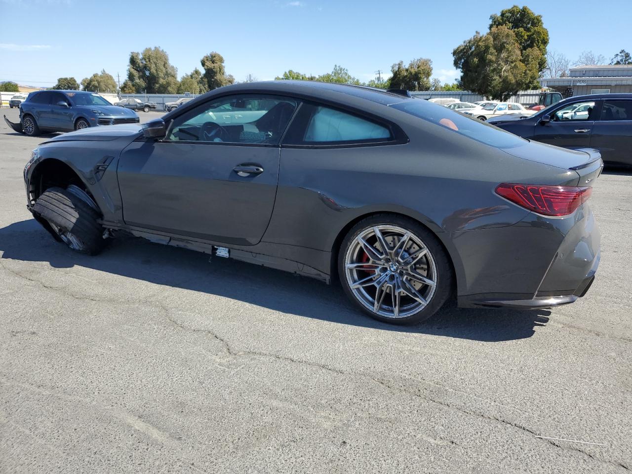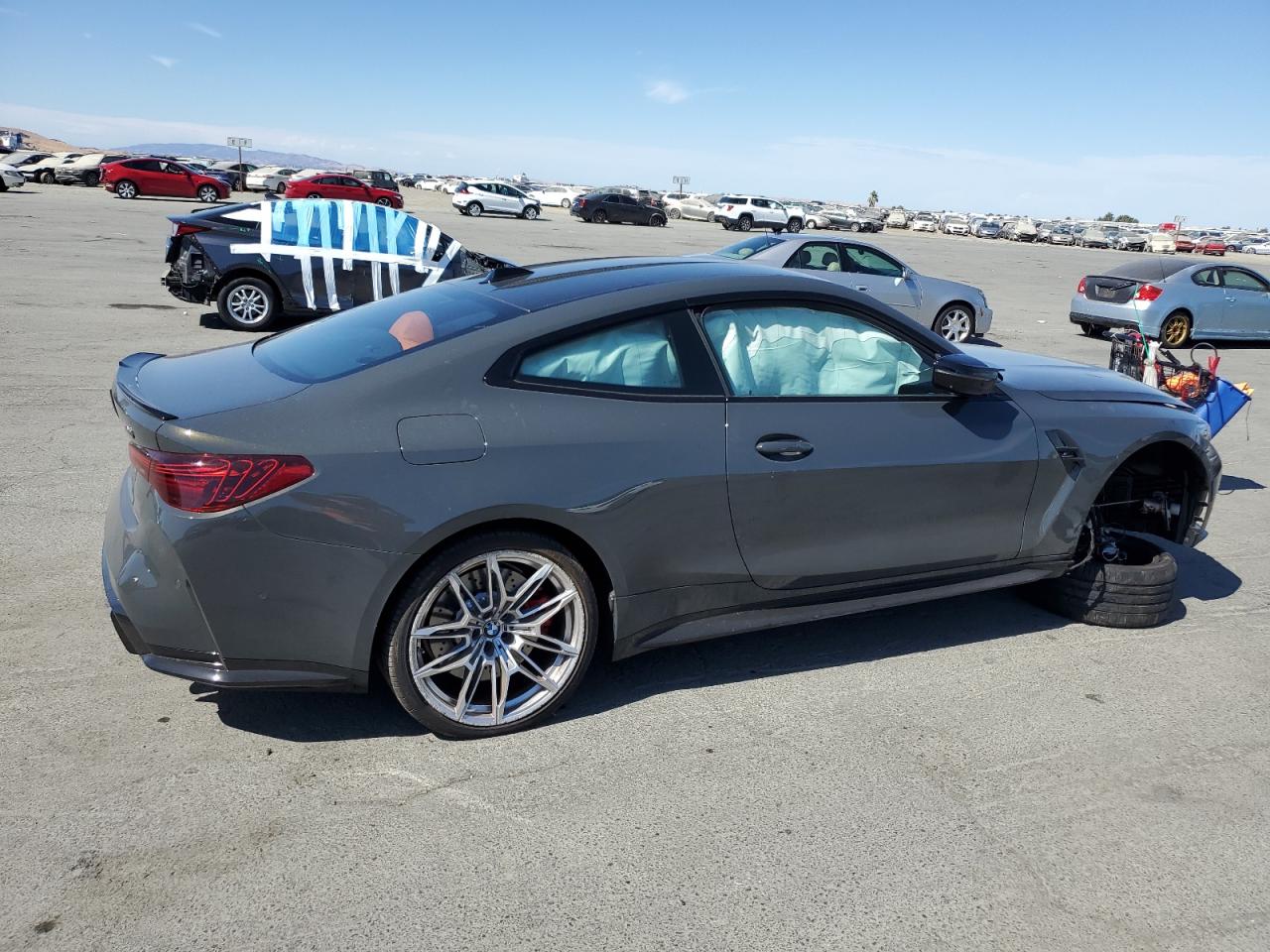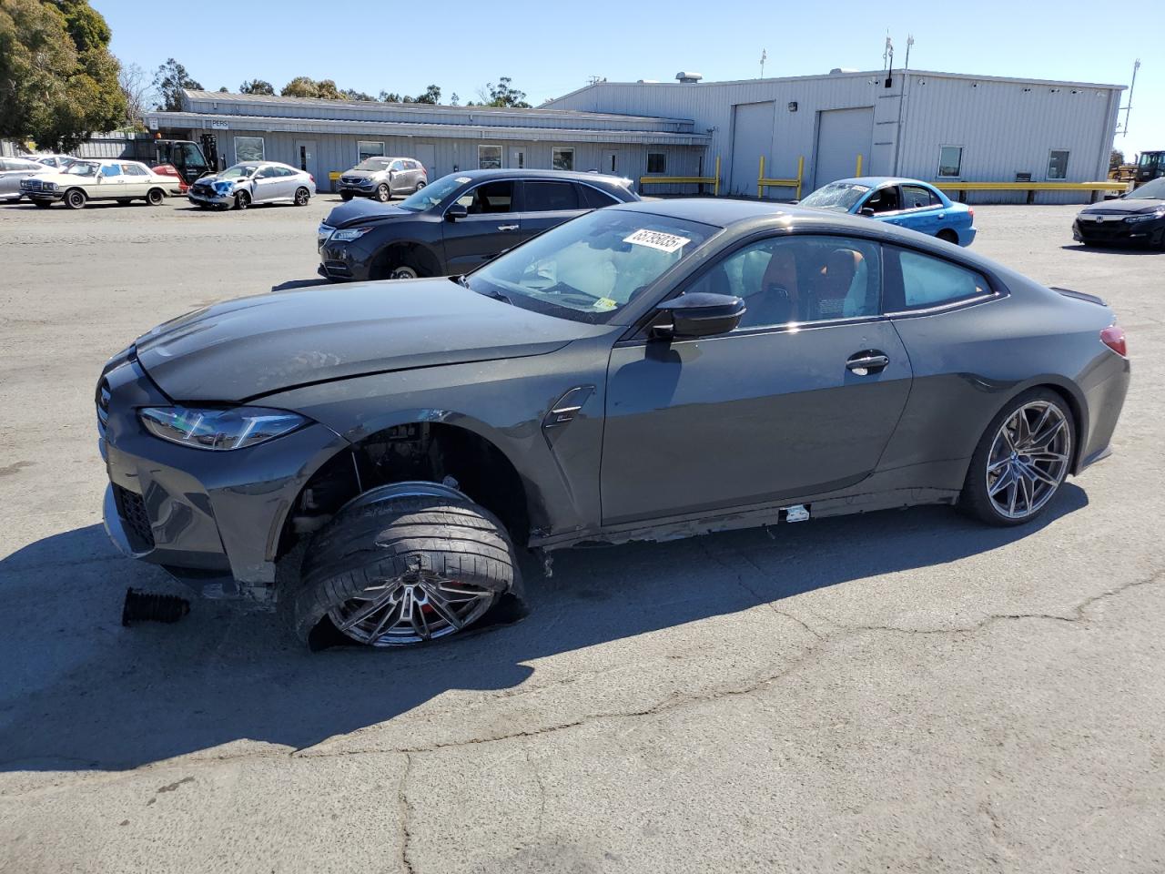 PoorThis is a damaged 2025 BMW M4 COMPETITION. The primary damage is to the undercarriage with significant front-end damage. The car is gray and has sustained considerable damage, making it not drivable and requiring extensive repairs. The wheels, lights, and glasses are visibly damaged. Inside, the airbags have deployed, and the interior shows signs of damage.