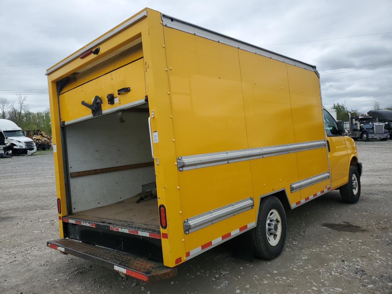 FairThe 2020 GMC Savana Cutaway is a yellow work van. The primary damage is to the undercarriage, and the secondary damage is to the side. The vehicle starts. The wheels and lights appear to be in decent condition, while the glass is intact. The interior shows signs of wear and tear. Based on the damage category being 'Body' and the car being drivable, the Overall Exterior Condition is 'Fair'.