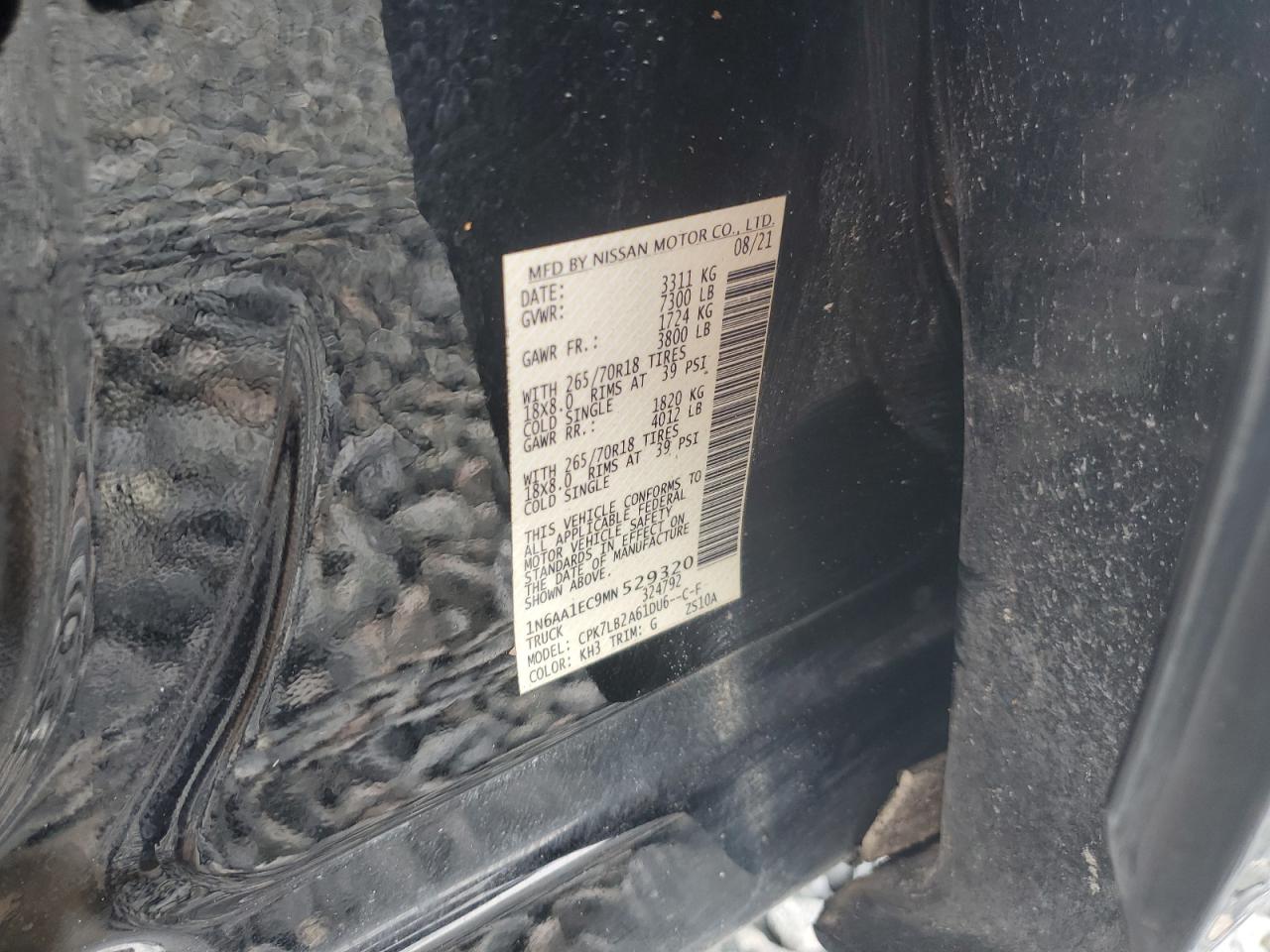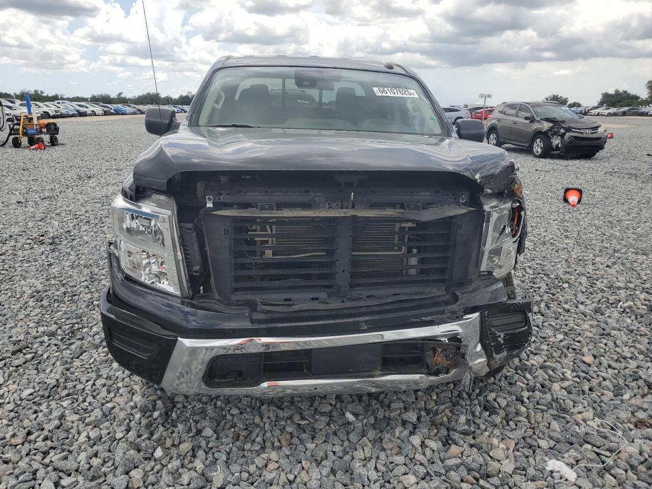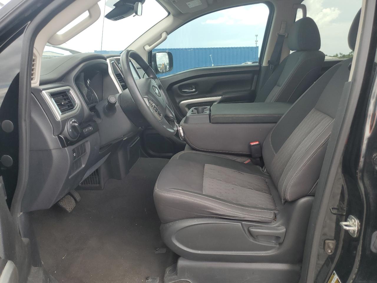 FairThis is a 2021 Nissan Titan S. The primary damage is to the FRONT END, with secondary damage to the SIDE. The car is black and has a Run & Drive Verified start code. The vehicle exhibits significant damage, particularly to the front, including the hood and front bumper. The side panels show some damage as well. The wheels appear to be intact, and the glass seems undamaged. Interior condition appears good, with normal wear and tear. The car is likely drivable but requires repairs.