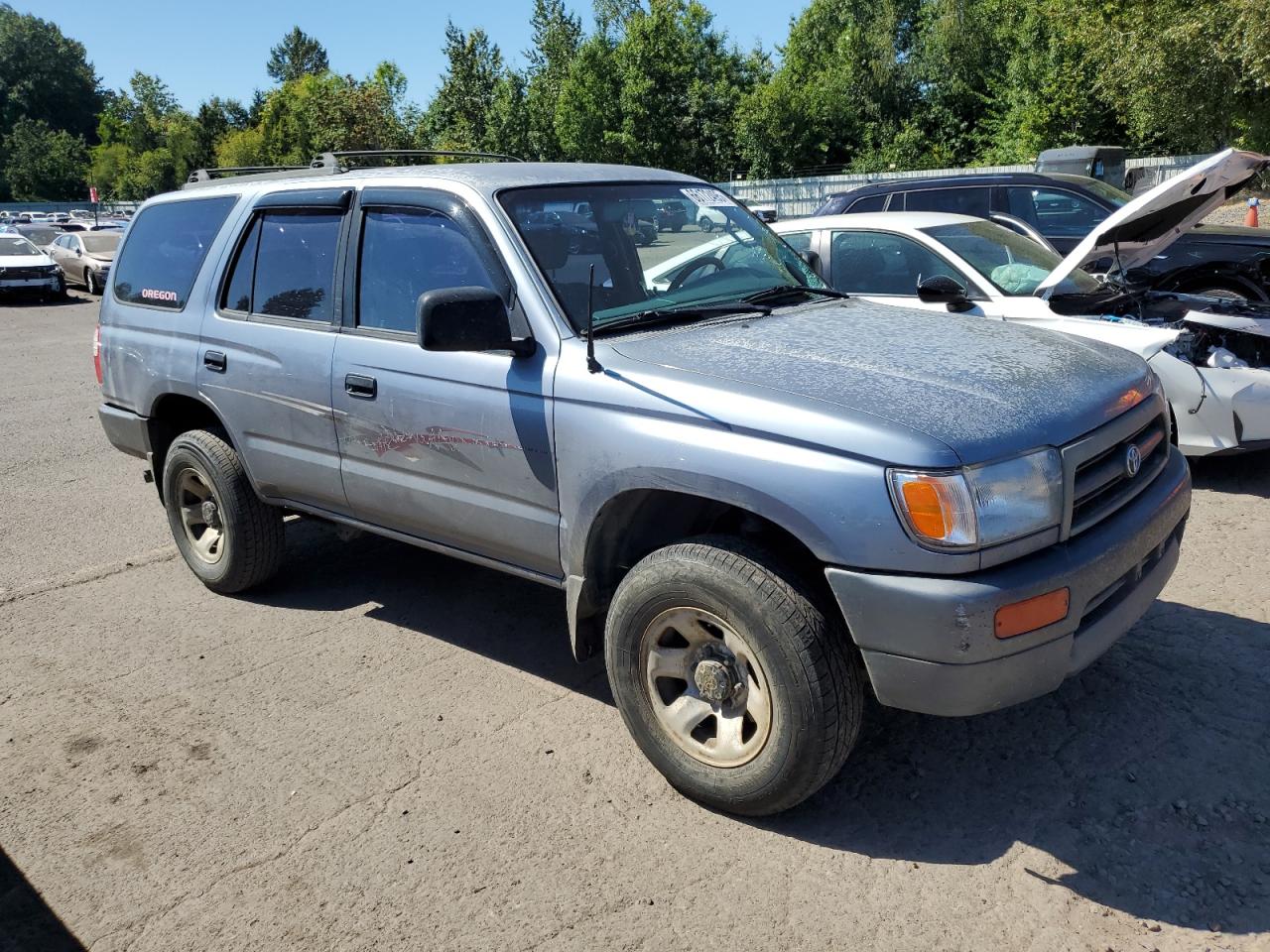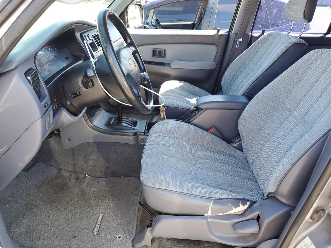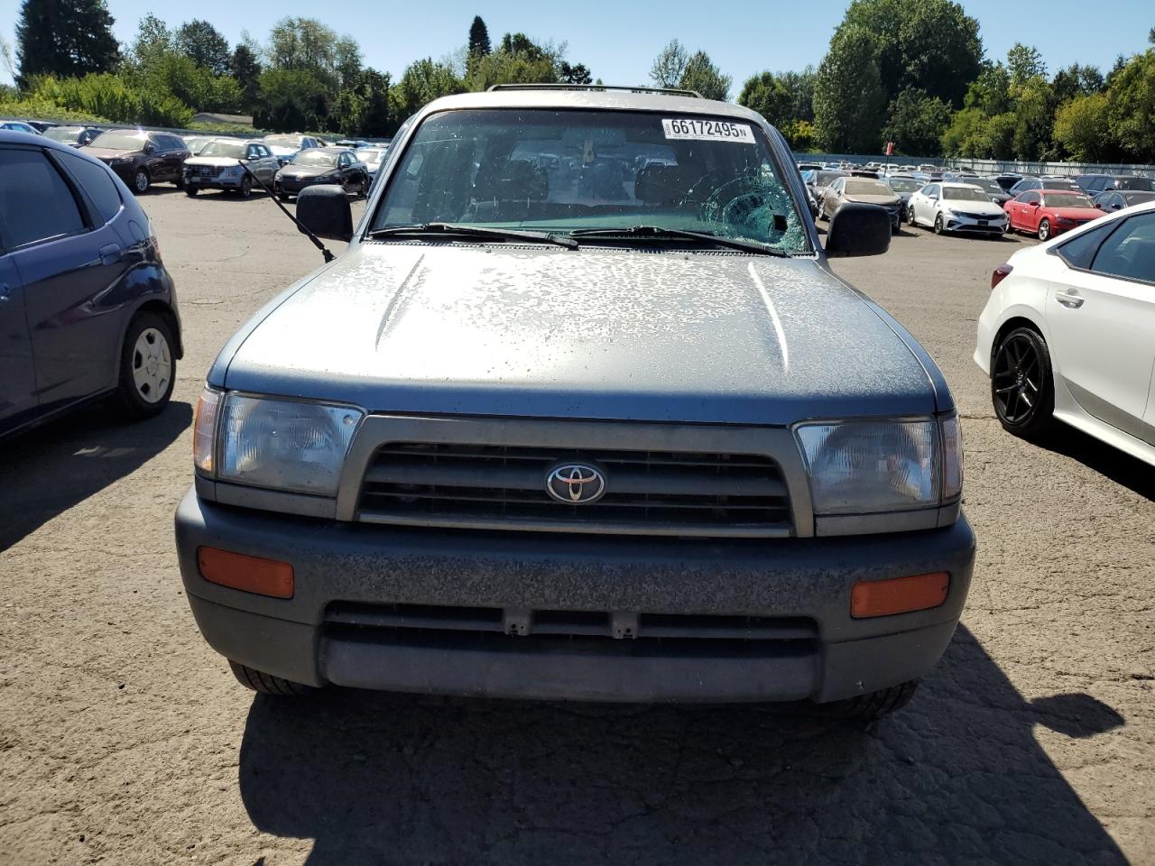 FairThis silver 1998 Toyota 4Runner has front-end damage, classified as Body damage. The Run & Drive Verified car shows signs of wear, but the interior condition is rated as Good. The exterior condition reflects moderate damage, and the overall state is Fair. The car is drivable and suitable for repair. The car has a visible damage. The wheels, lights, and glasses are intact.