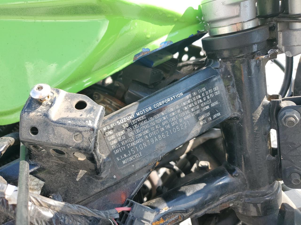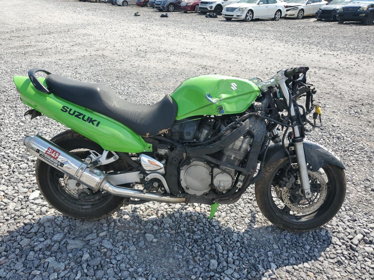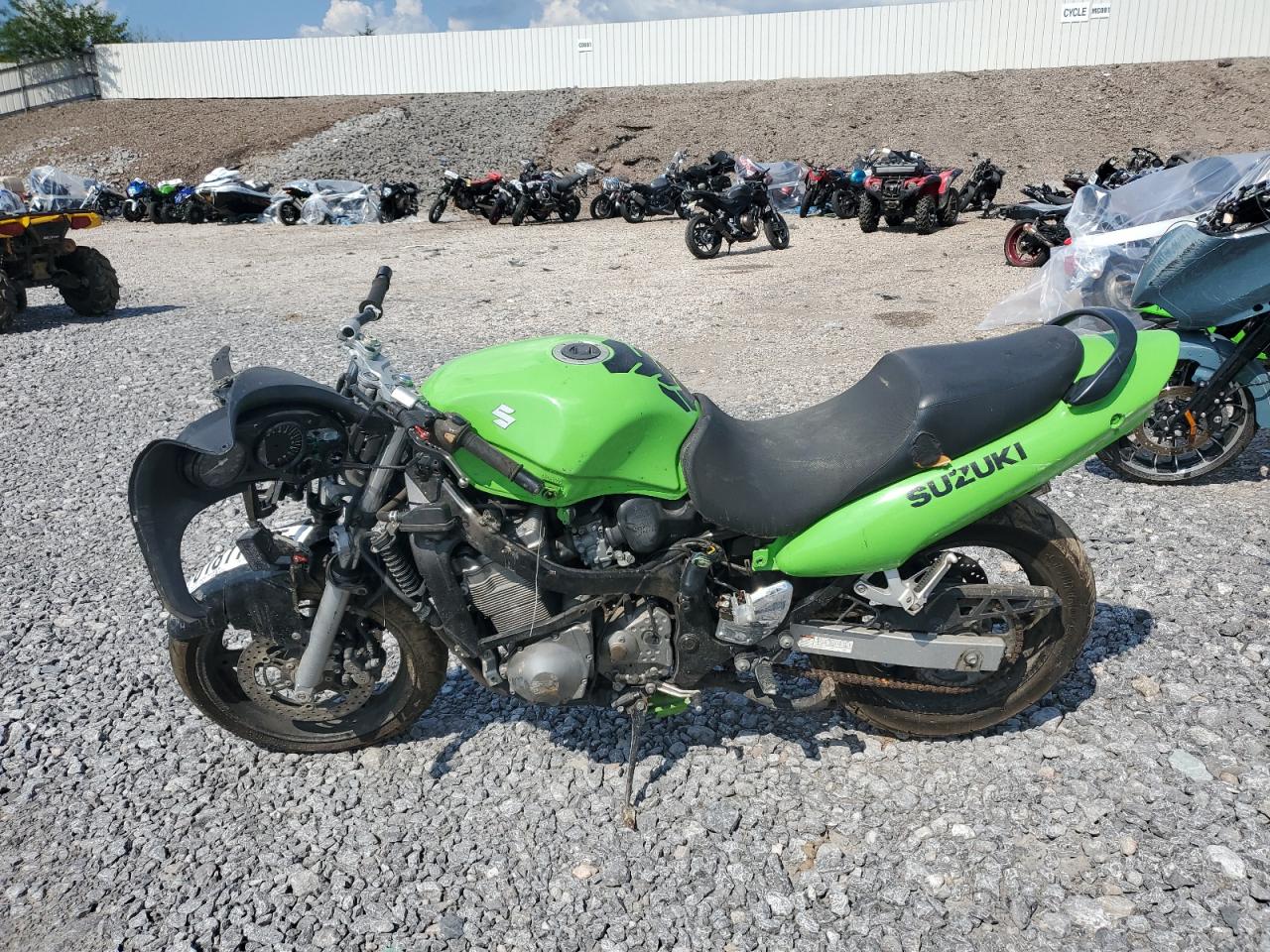 FairThis is a 2006 SUZUKI GSX600 F with a green exterior. The primary damage is to the front end, and there is no secondary damage. The motorcycle has sustained significant damage to its front end, including the headlight, fairing, and front suspension. The wheels appear to be present but may be damaged. The lights are missing or damaged, and the glass components are likely damaged. Interior damage is not visible in the images, and the airbag status is unknown.