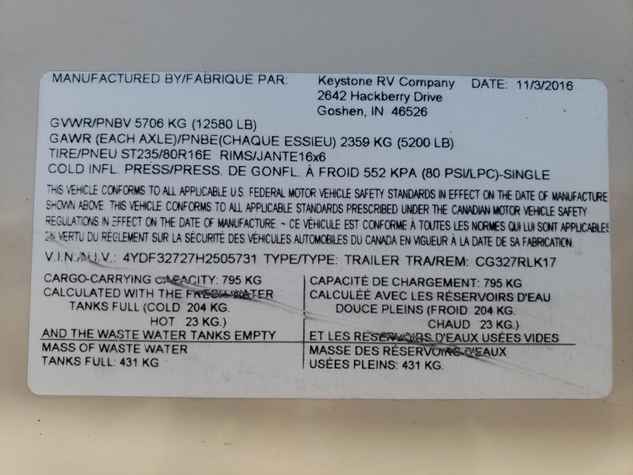 GoodThe KEYSTONE COUGAR 2017 appears to be in good condition overall. The exterior showcases normal wear, with no significant damage. The vehicle's white color is well-maintained. The interior exhibits minor wear and tear, consistent with its age. It's a drivable vehicle, and all major components appear to be functional. The images show a clean interior with well-kept cabinetry and fixtures.
