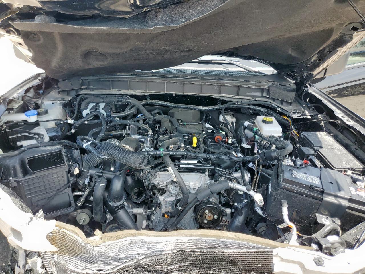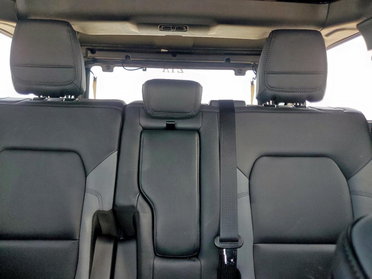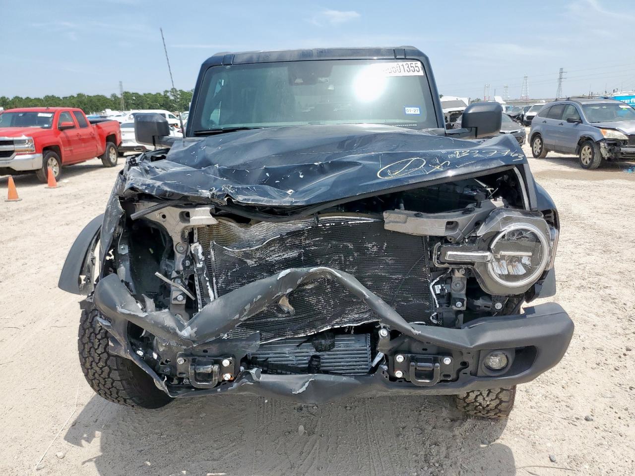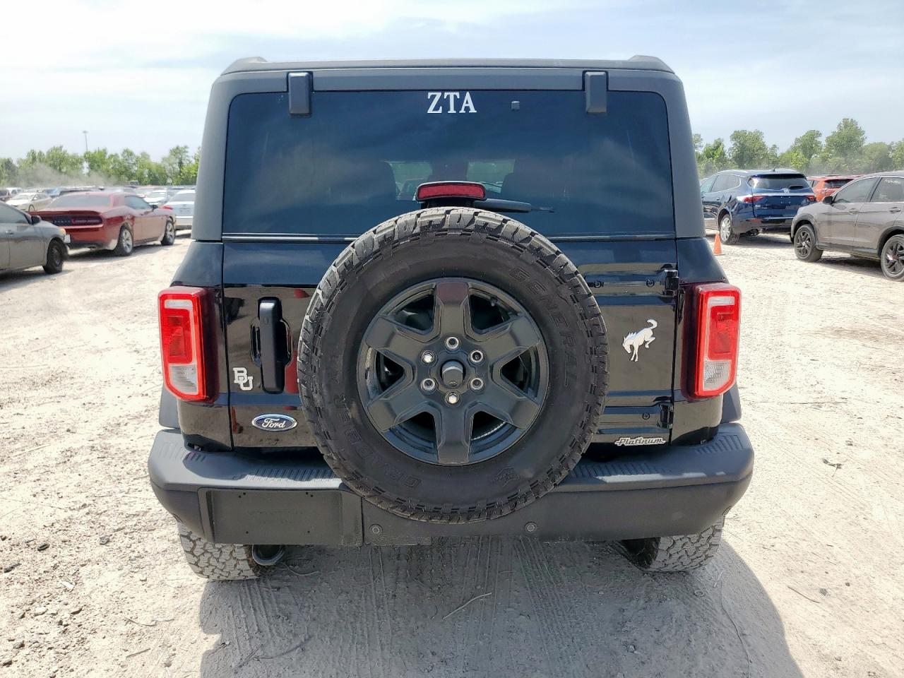 FairThe black 2024 Ford Bronco has suffered significant front-end damage, including the front bumper, grill, and potentially the headlights. The rear of the car appears to be intact, with the spare tire mounted. The interior shows signs of wear but is in acceptable condition. There is dashboard damage indication and potentially the deployment of airbags. The vehicle is drivable, but requires significant repairs.