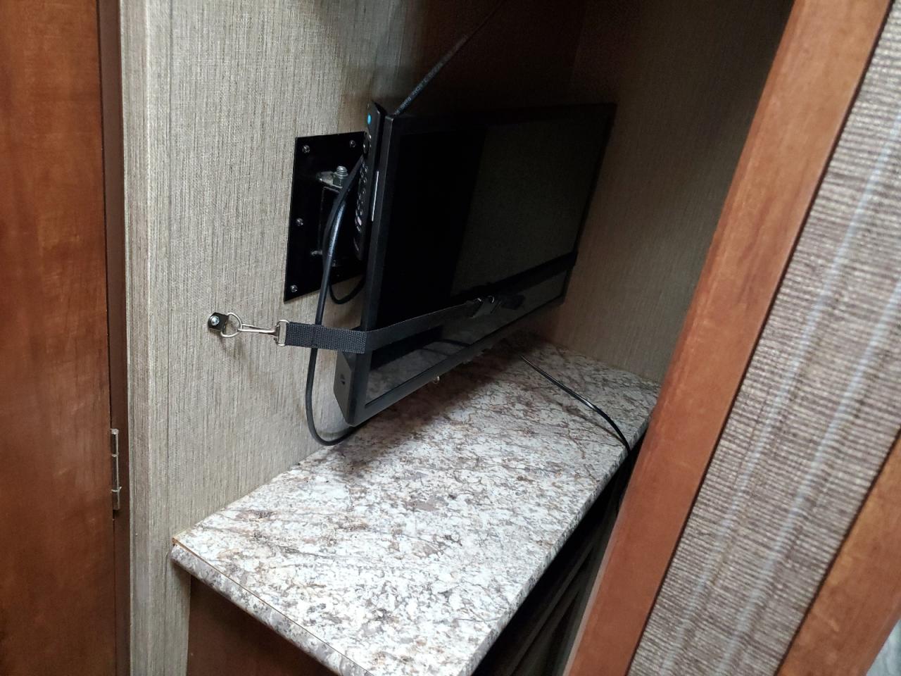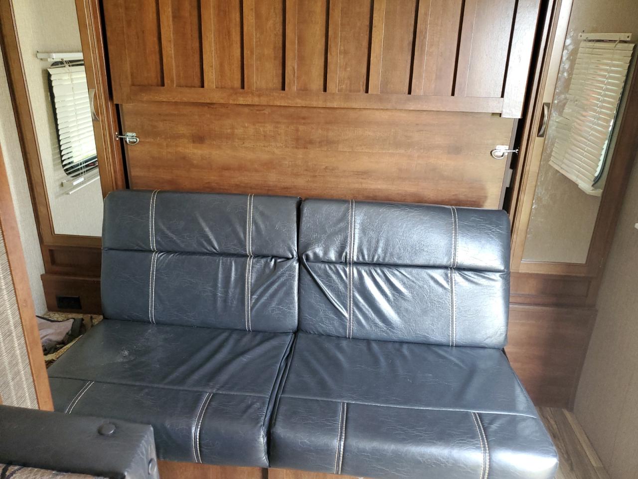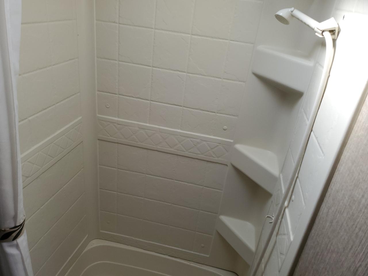 The RV exhibits minor cosmetic damage. The body panels show some signs of wear, but no mechanical or frame damage is apparent. The interior seems to have minor visible damage consistent with age and mileage.
