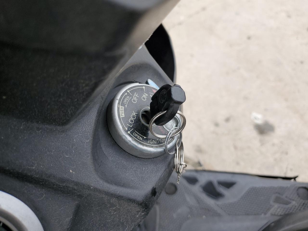 The scooter has sustained front-end damage and undercarriage damage. The exterior has moderate visible damage and the interior shows minor wear and tear.