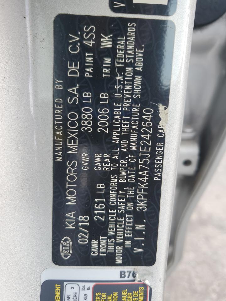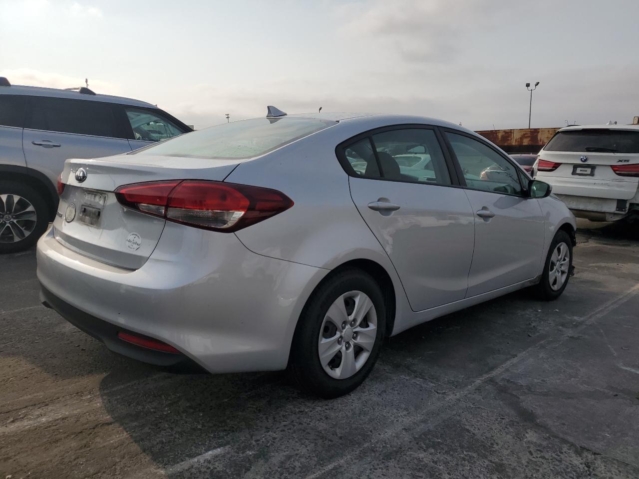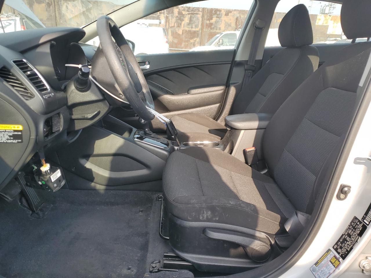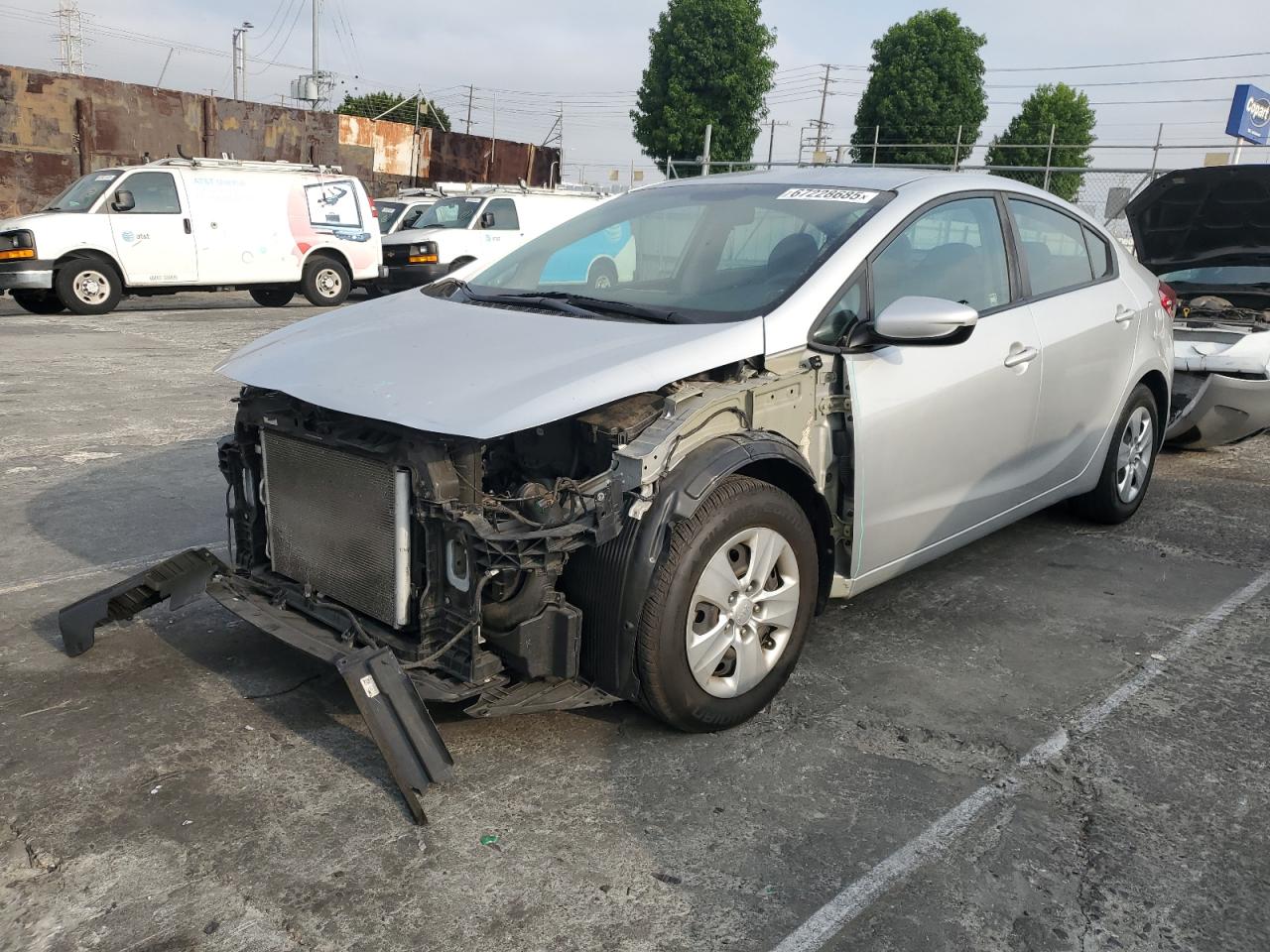 FairThe 2018 KIA FORTE LX is silver with front end damage. The car's front end is severely damaged, with the bumper, grille, and other components missing or heavily damaged. Secondary damage is not detected. The interior appears to be in good condition with no obvious damage. The car is Run & Drive Verified.
