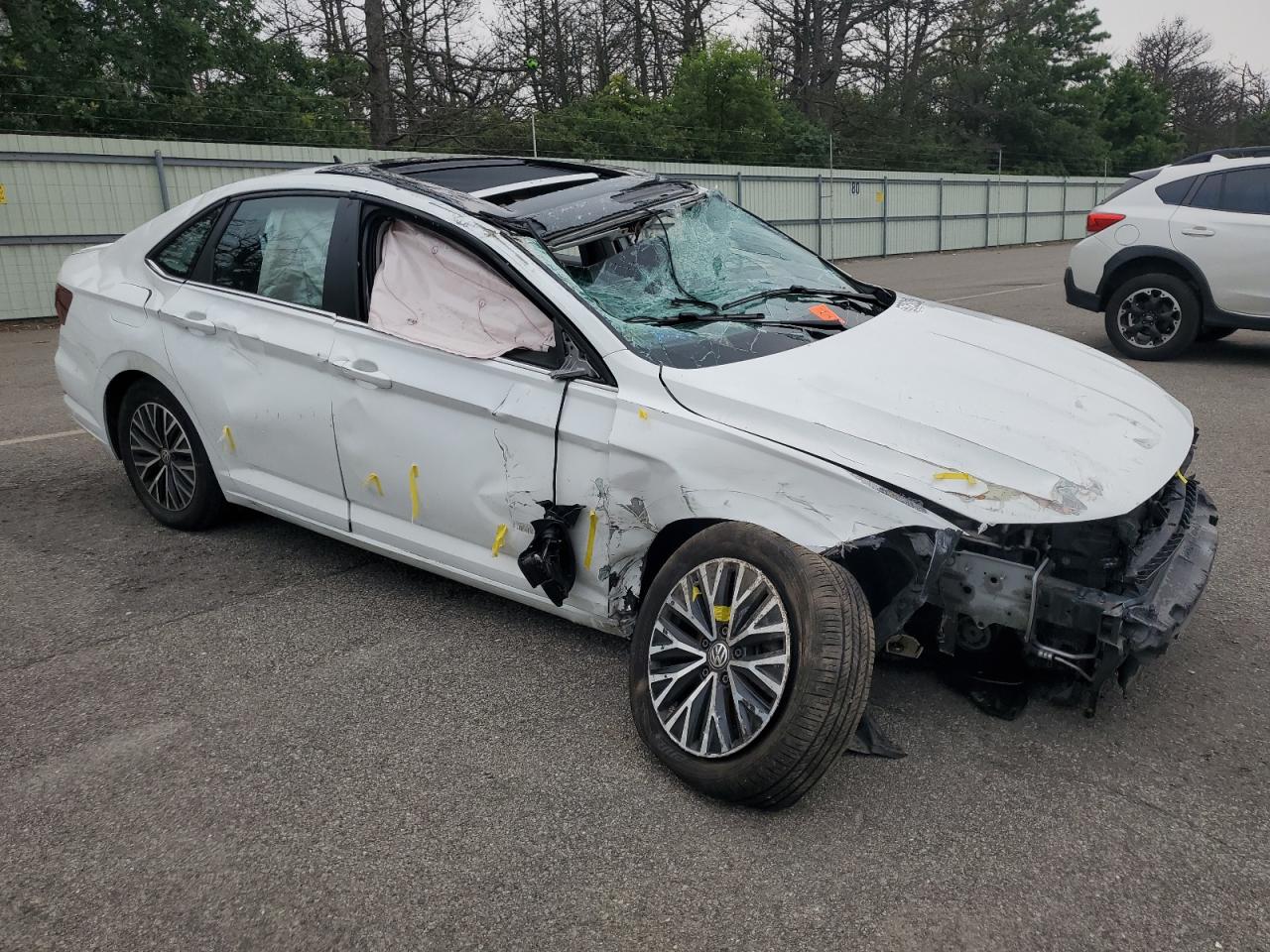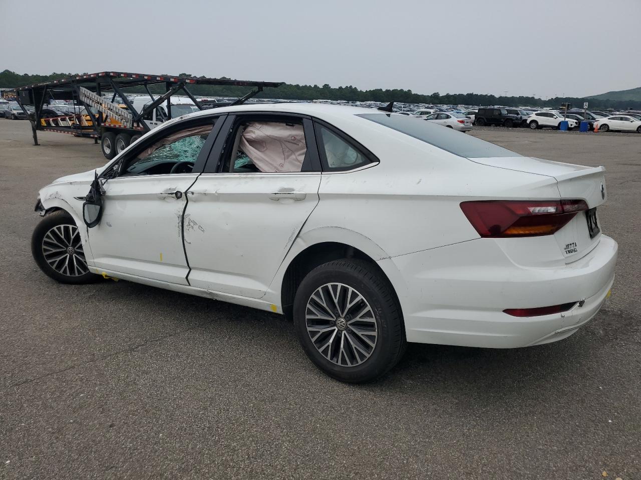 PoorThe 2019 VOLKSWAGEN JETTA SEL has sustained significant damage. The white sedan shows signs of a severe impact, with extensive body damage evident in the images. The front end is heavily damaged, including the bumper, hood, and headlights. The side panels also show significant deformation. The airbags have deployed, and the interior appears to have sustained damage as well. The wheels may be damaged or misaligned due to the impact. The glass is shattered. The vehicle is in a state of disrepair and will require extensive repairs. Damage Summary: The car has suffered damage all over, including the body, with airbags deployed. The damage is consistent with a major collision, indicating the need for significant repairs.