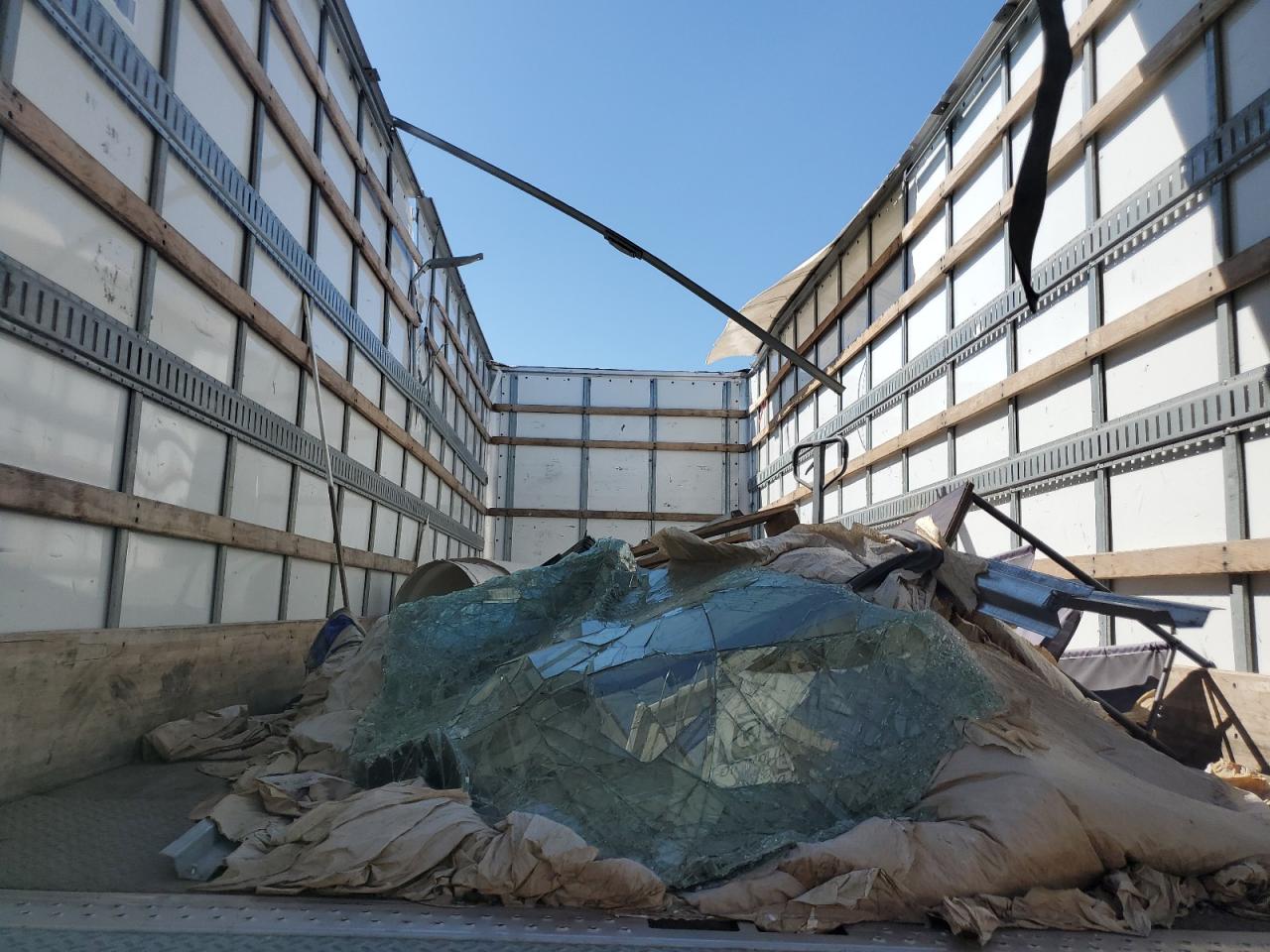 The vehicle has extensive damage to the front end, including body panel damage. The interior also shows signs of wear.