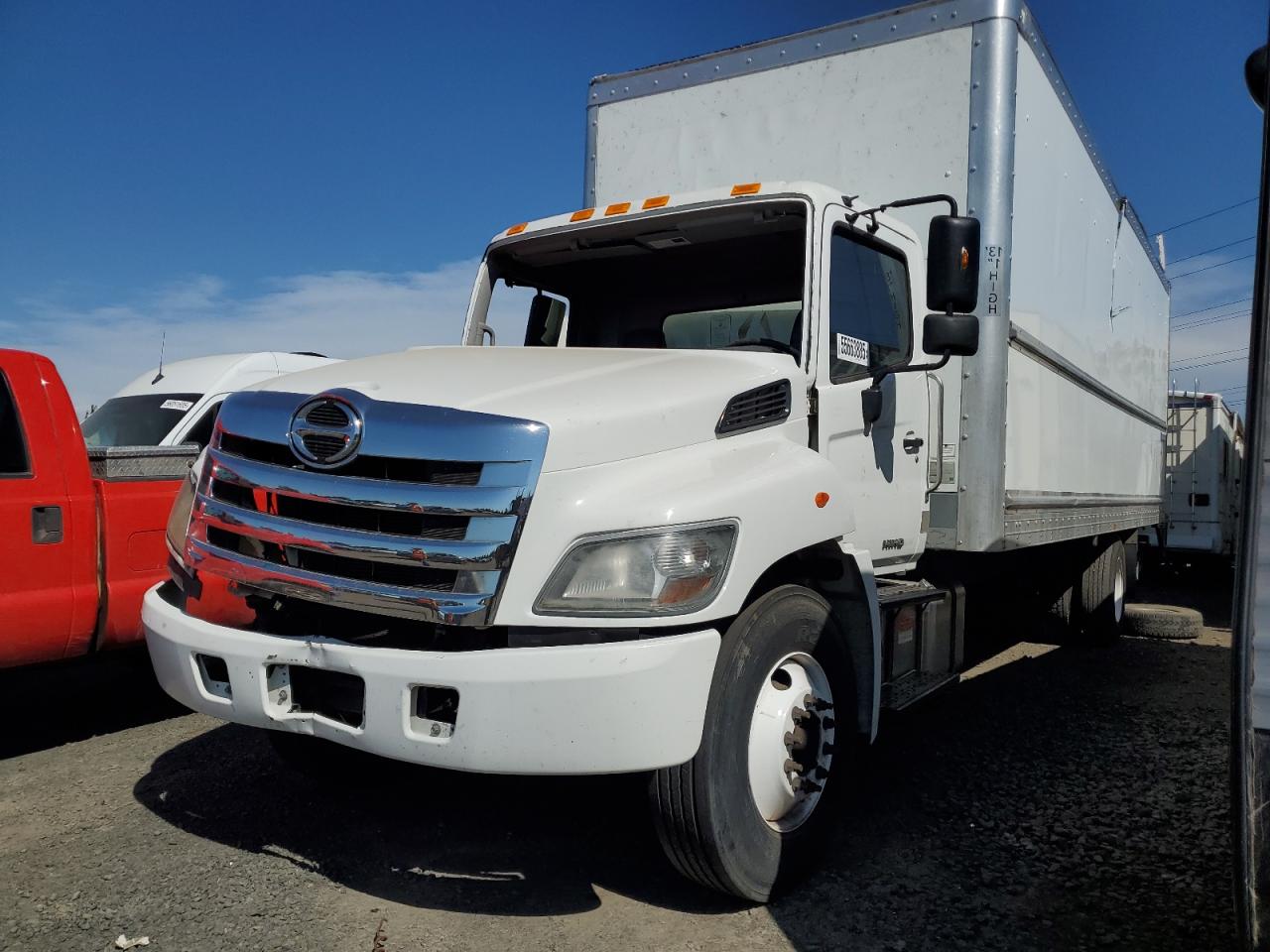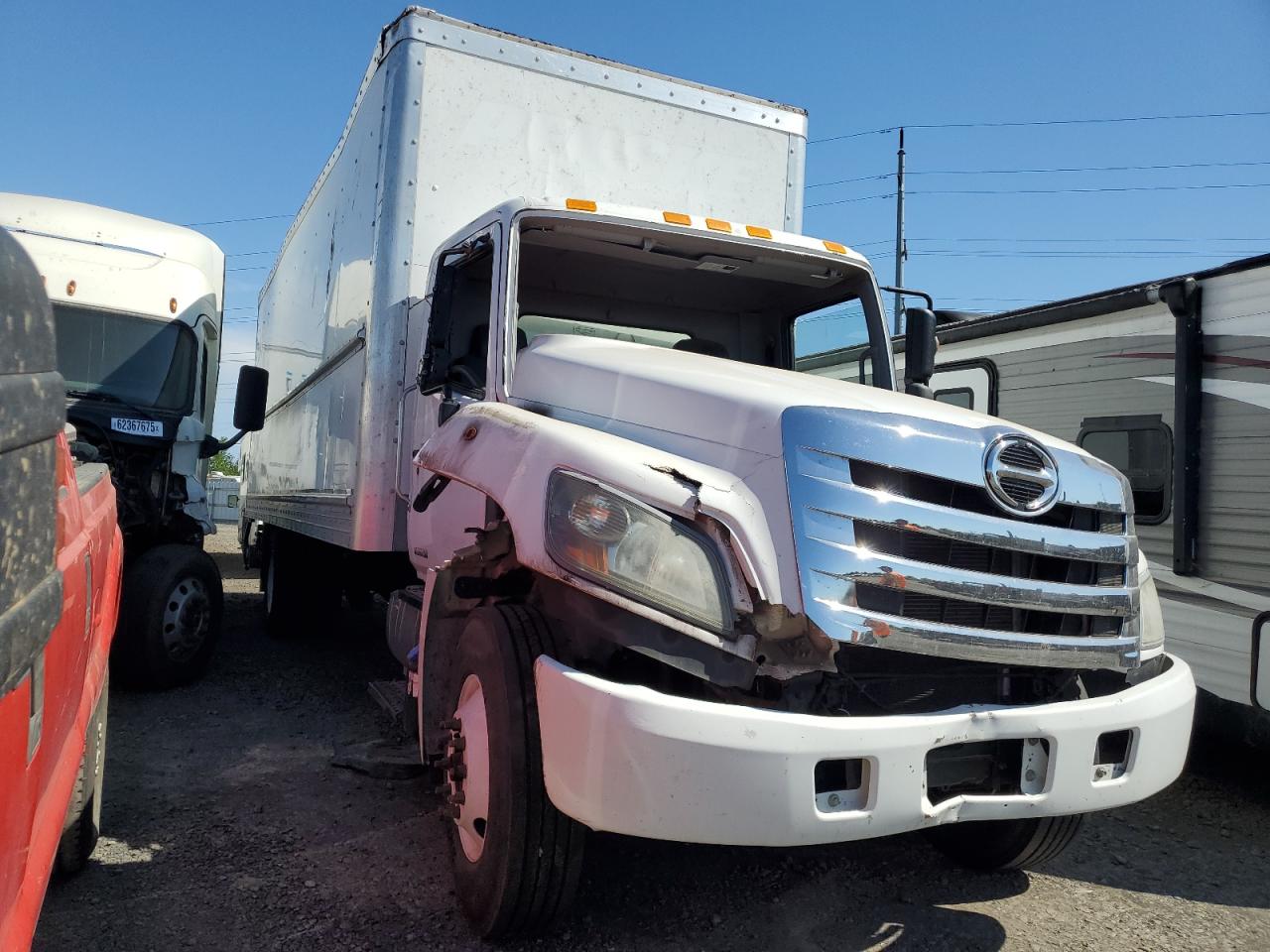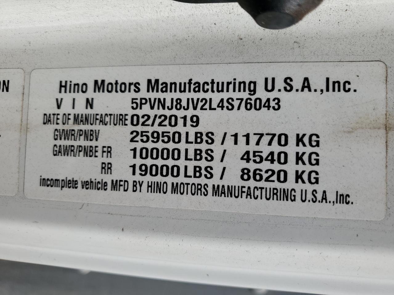 FairThis white HINO 258/268 2020 truck shows significant front-end damage. The body panels are damaged, and the front end needs considerable repair. The interior shows signs of wear and tear with visible damage, while the wheels appear to be in working order. The vehicle is likely drivable but requires significant repairs. The lights and glasses have visible damage.