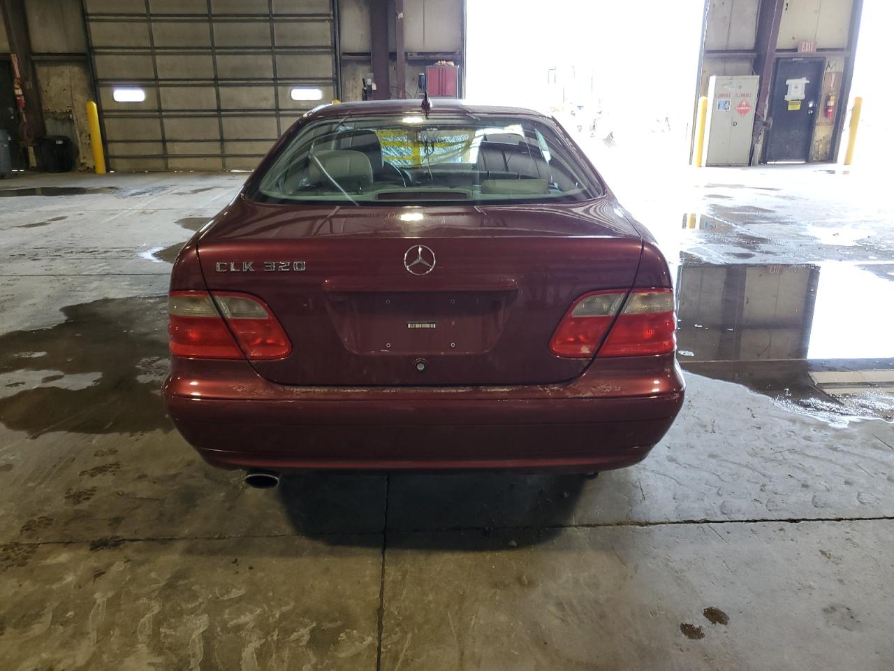 FairThis 2002 MERCEDES-BENZ CLK 320, maroon in color, shows signs of damage consistent with its age and use. The primary damage is noted on the TOP/ROOF, with secondary MINOR DENT/SCRATCHES. The car starts and runs, verified as Run & Drive. The interior has minimal visible damage, the wheels are fine, glass and lights are OK, with normal wear and tear consistent with age. The odometer reads 120229 miles. While drivable, repairs will be needed. The airbags state is unknown.