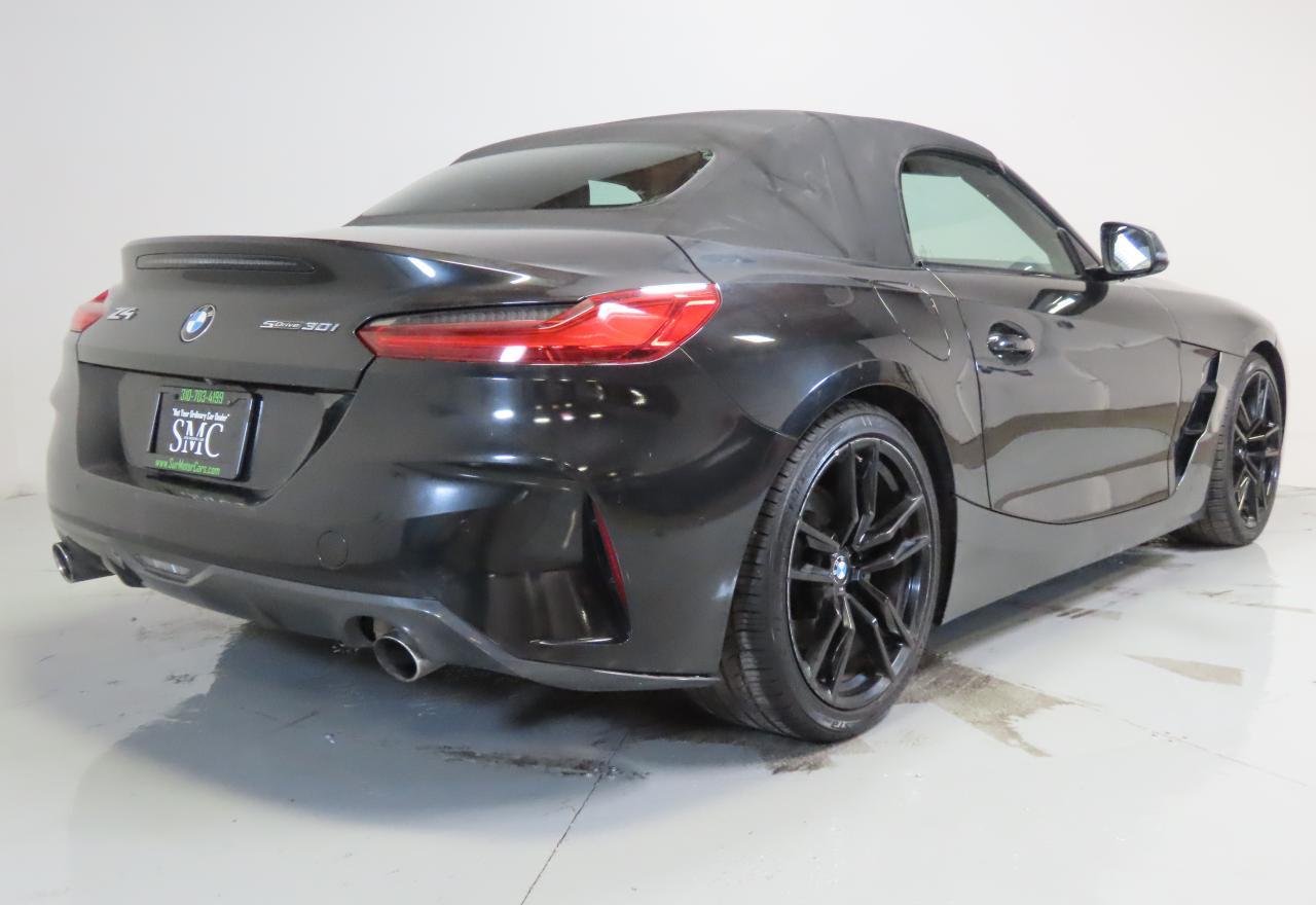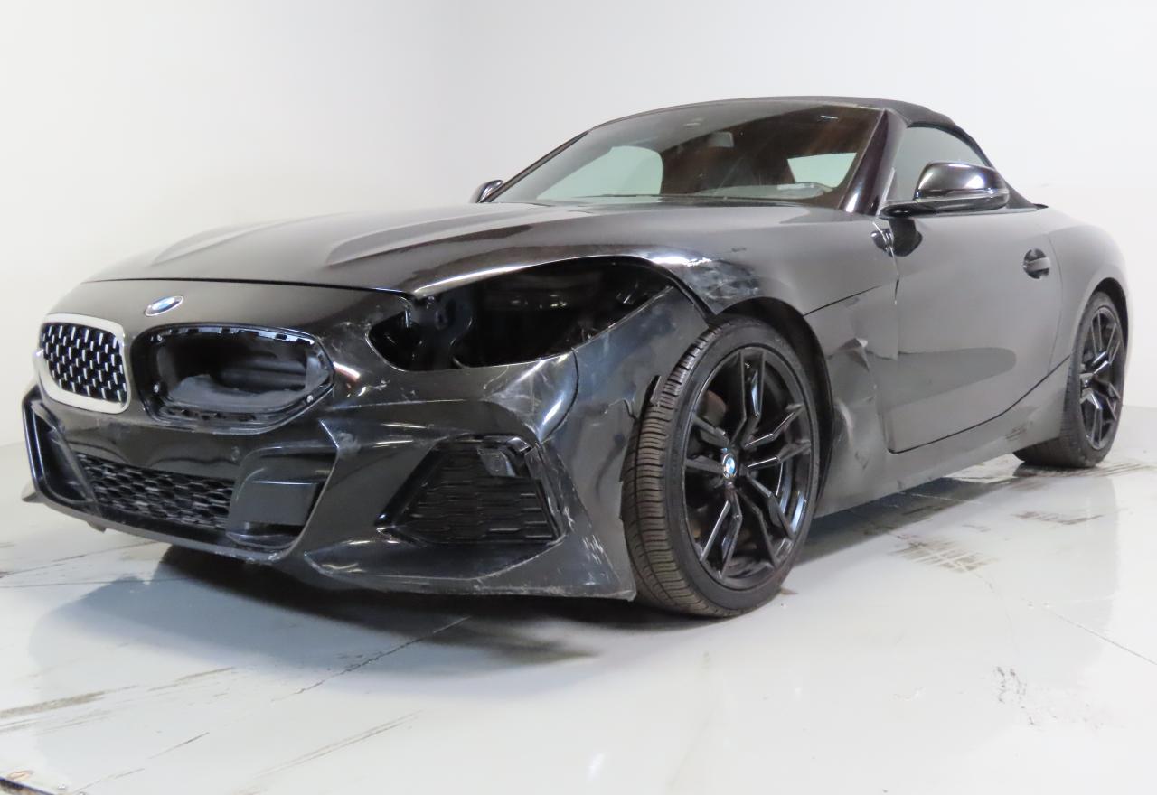 Fair2019 BMW Z4 SDRIVE30I in black, with 'Run & Drive Verified' status. The vehicle exhibits damage across the body panels, with a focus on cosmetic and body damage. The interior is in good condition, showing minimal wear and tear. The car's mechanical components appear functional. The car has a lot of cosmetic and body damage with some interior in good condition.