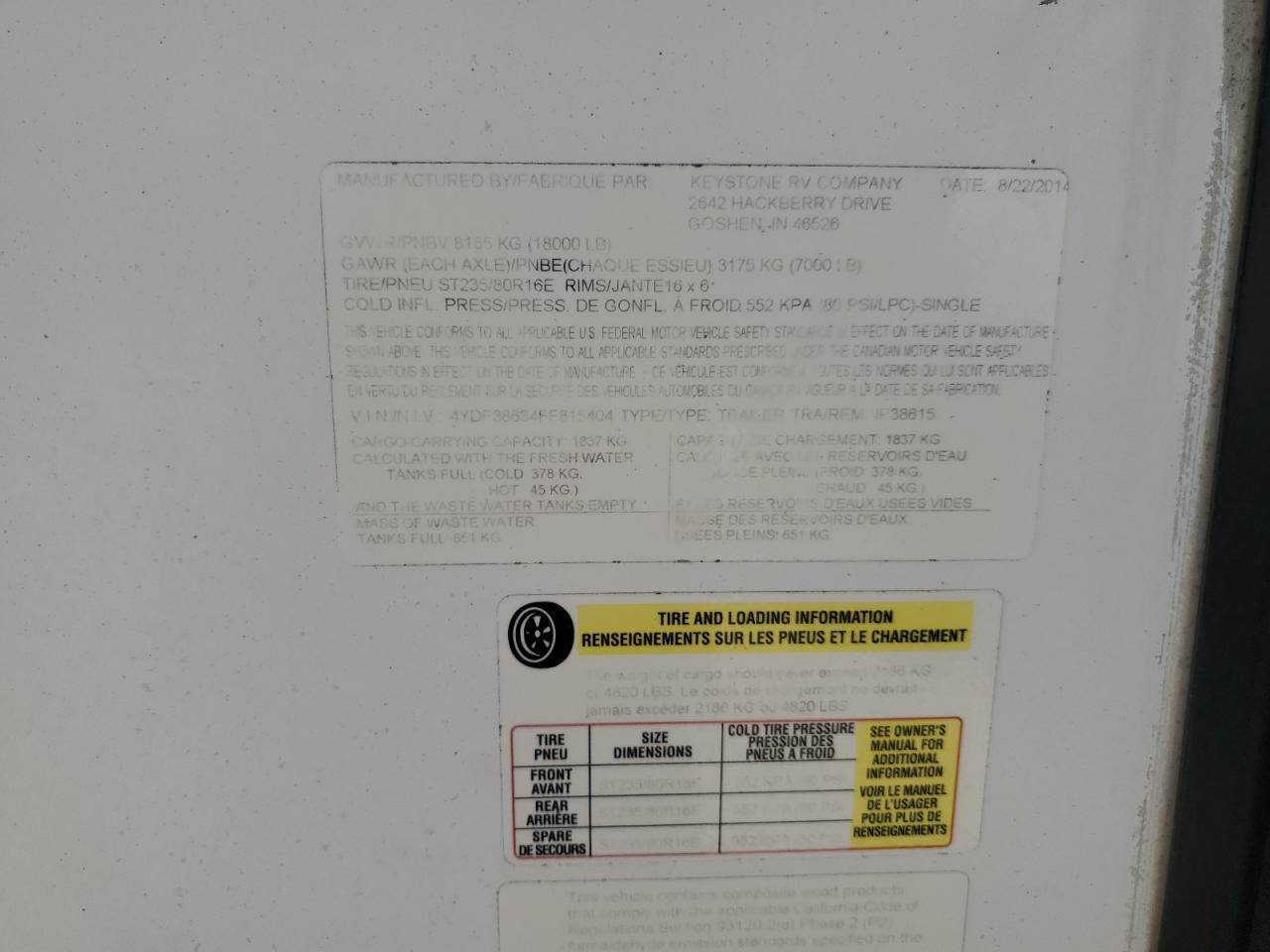 GoodThis is a 2015 KEYSTONE IMPACT. The car shows minor dents and scratches, with no other damages reported. The exterior is white. The wheels, lights, and glasses appear to be in good condition. The car seems drivable and the interior is in good condition with no significant wear and tear.
