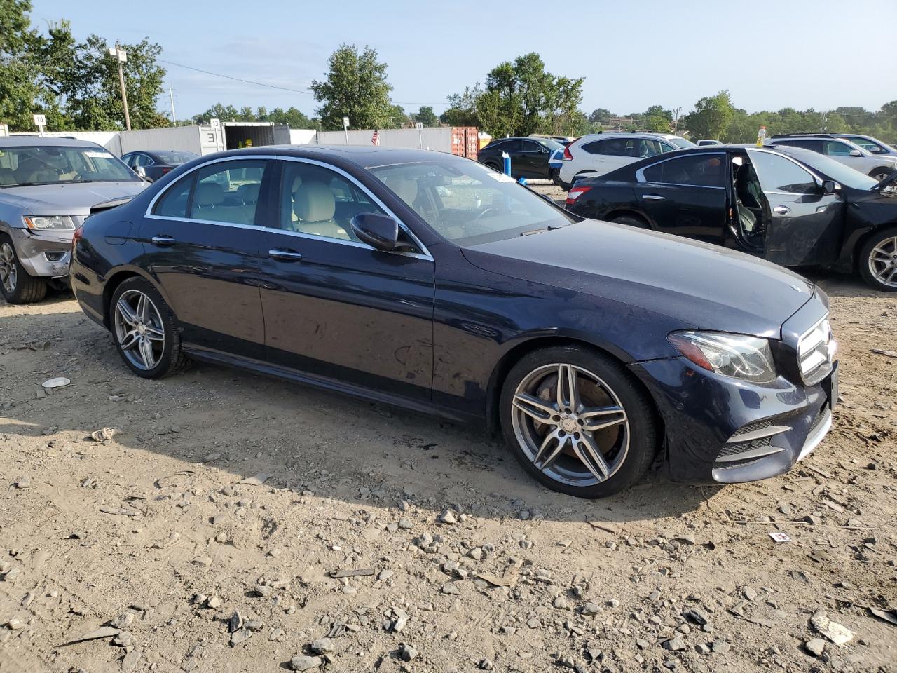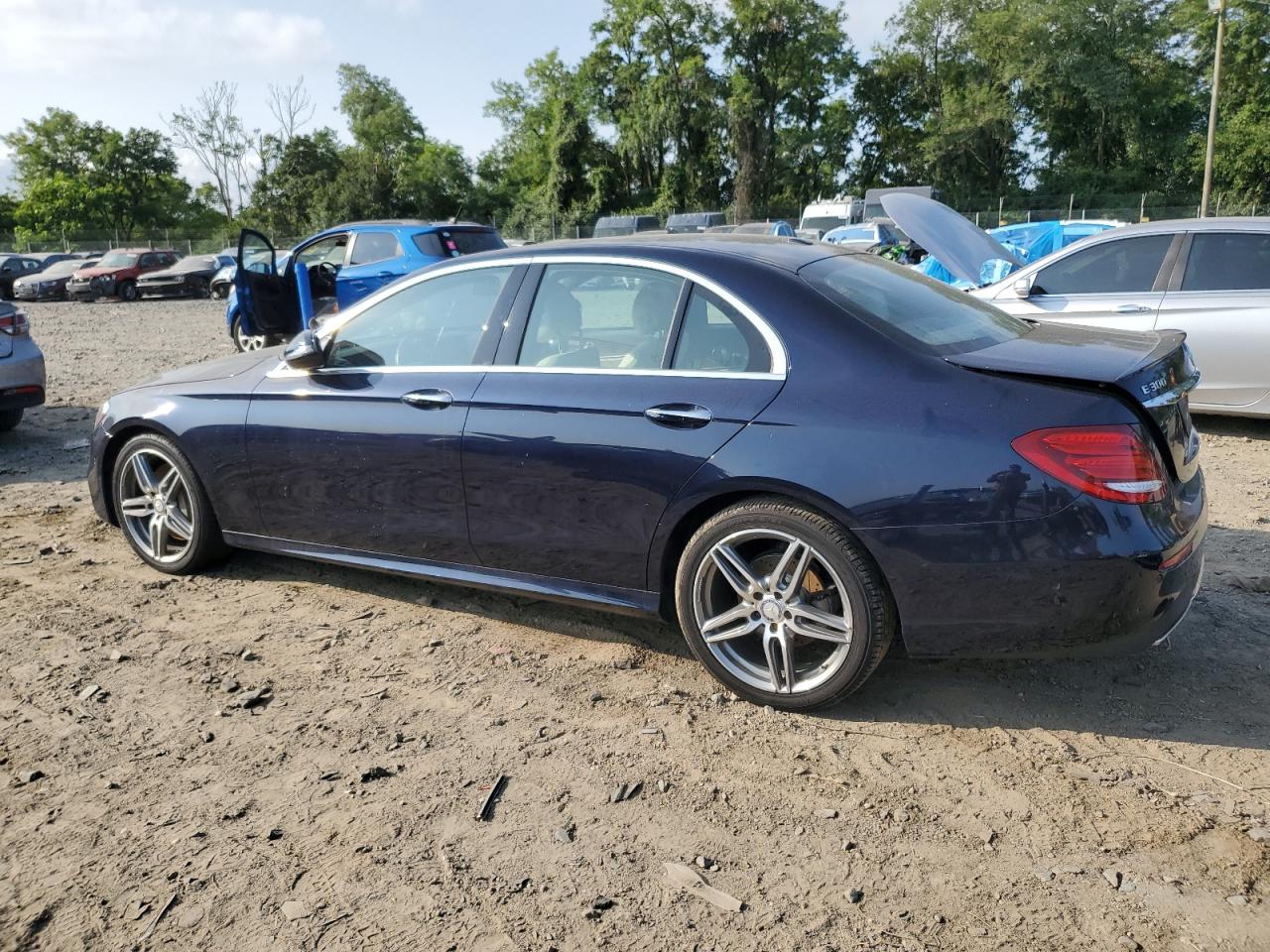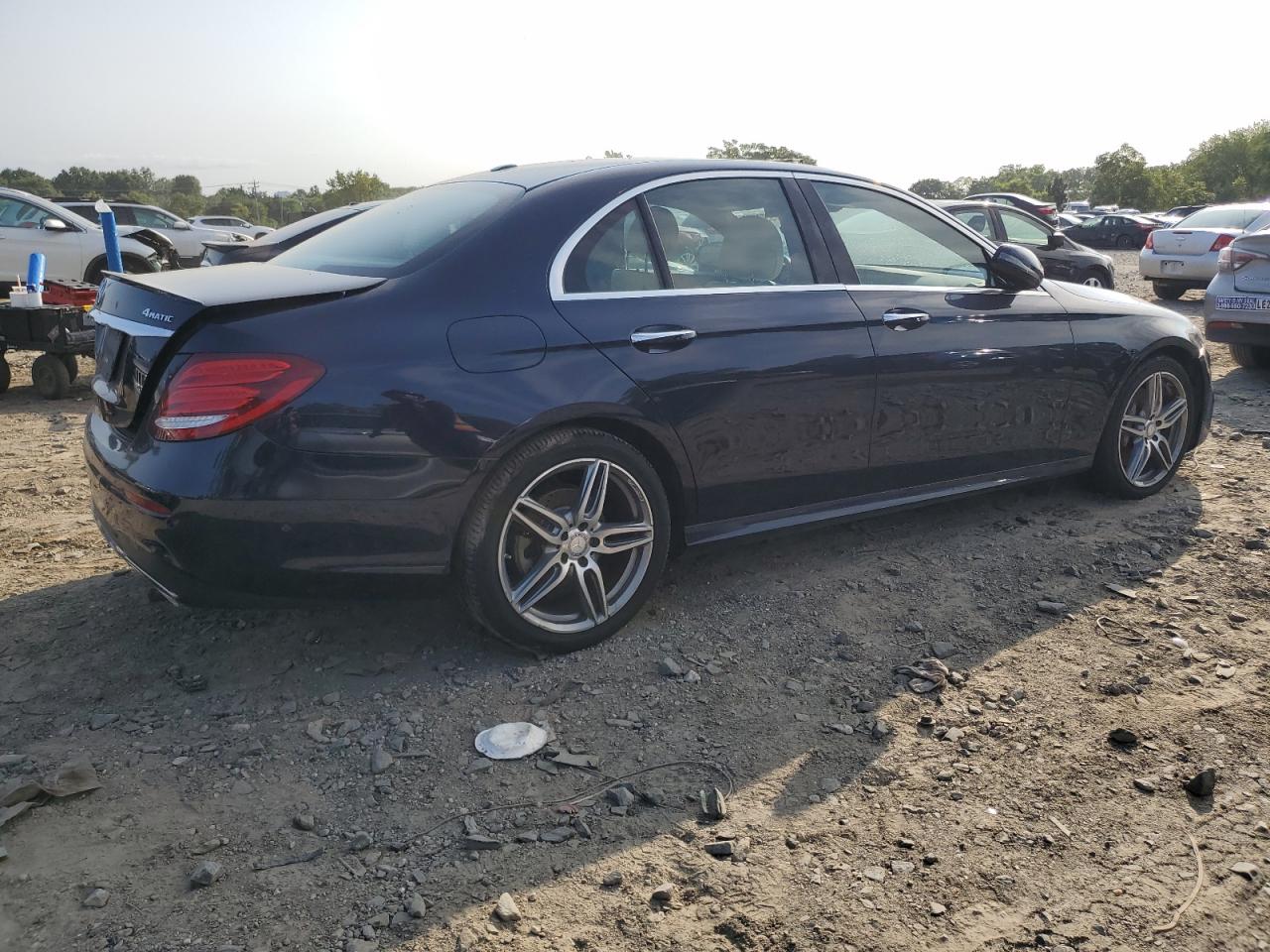 FairThe 2017 MERCEDES-BENZ E 300 4MATIC in a dark blue color shows mechanical and rear end damage. The Vehicle starts. The car's exterior exhibits moderate visible damage, impacting its overall condition. The interior presents minor wear and tear. The wheels appear to be in good condition, and the car is likely drivable but will require repairs. It also seems that airbags have not been deployed, but it requires a detailed check.