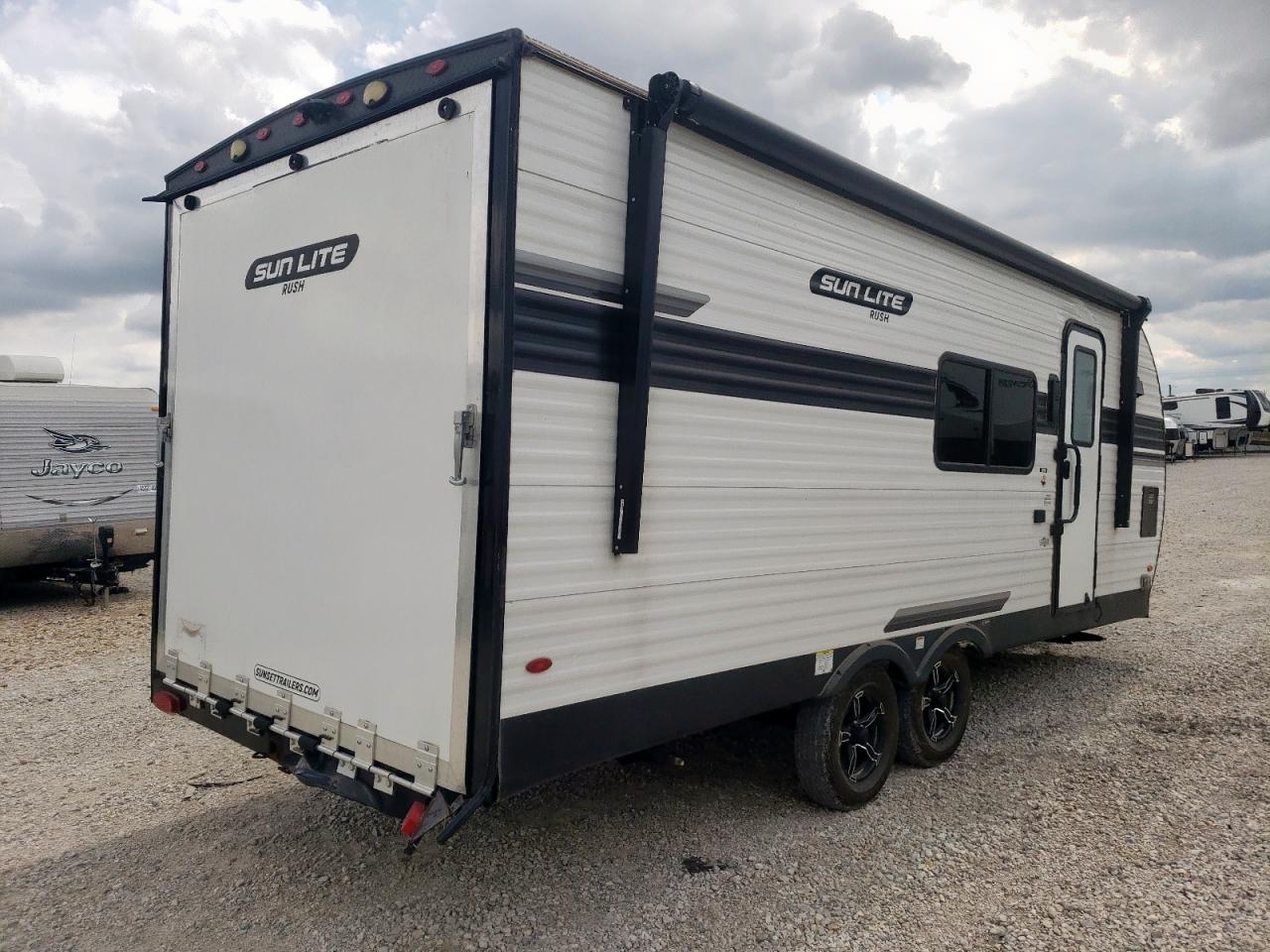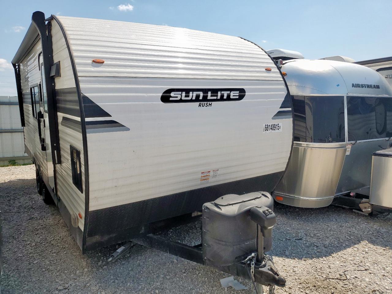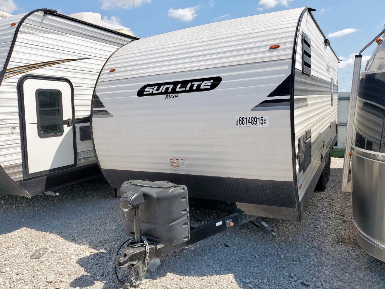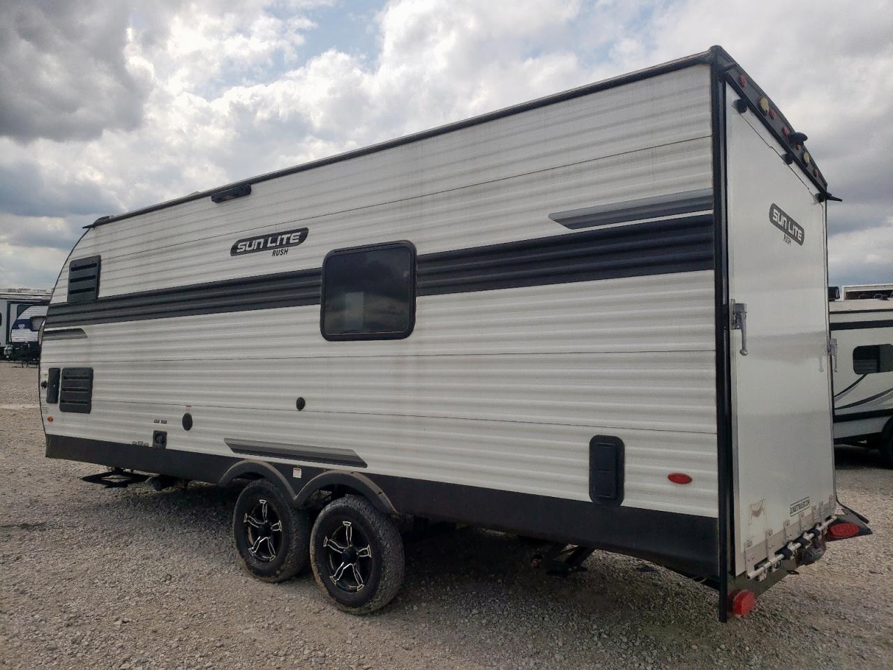 The 2023 SUN LITE Sunset Park RV shows damage to the rear end and undercarriage, with a white exterior. It has a DEFAULT start code. Damage Assessment: The primary damage is concentrated on the rear end, with secondary damage to the undercarriage. The vehicle's exterior condition is rated as Fair, indicating moderate visible damage. The interior condition appears to be Good. Details: The vehicle has visible damage including rear end and undercarriage. The wheels appear to be in good condition, but other elements may require repair. The lights and glasses conditions were not specified. Given the damage, the vehicle's overall state is rated as Fair, suggesting it may still be drivable, but repairs are needed. Summary: This SUN LITE RV shows rear end and undercarriage damage. Overall, the vehicle is in Fair condition, and the interior is in good condition. The body damage may require some repairs to bring the vehicle back to a fully operational state.
