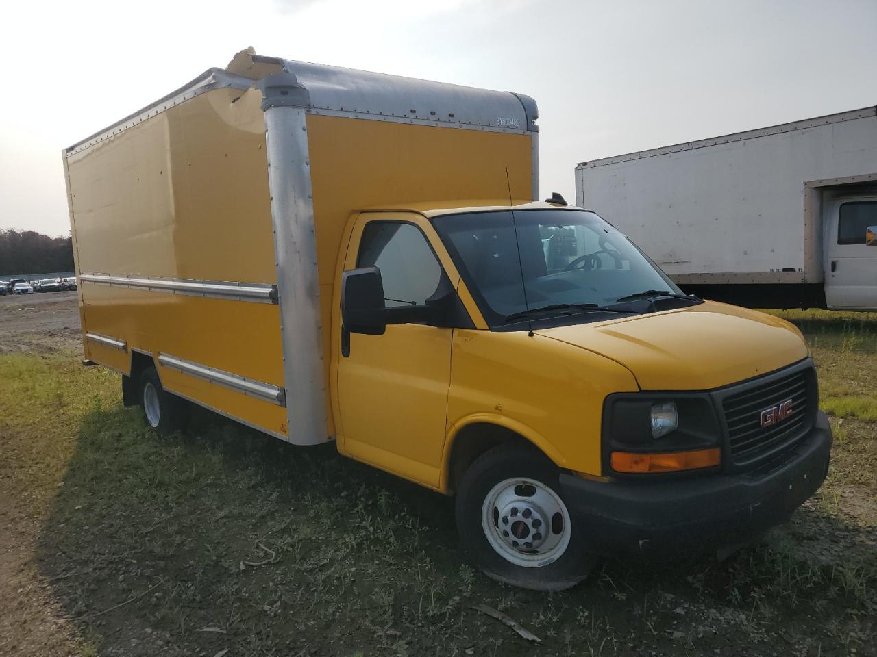 GoodThe 2016 GMC SAVANA CUTAWAY G3500 is a yellow box truck. The primary damage is to the top/roof, and there is no secondary damage. The vehicle shows signs of wear. The interior has moderate damage. The car's wheels, lights, and glasses appear to be in acceptable condition.