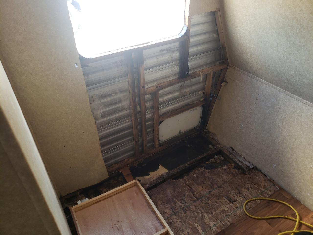 Minor dents and scratches on the exterior body panels. Interior shows wear and tear, possibly water damage.