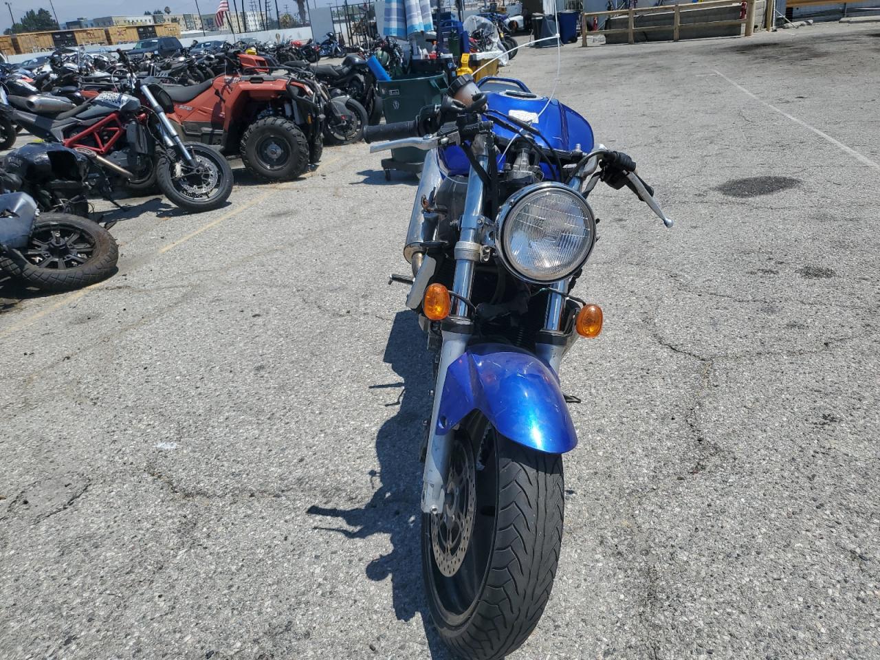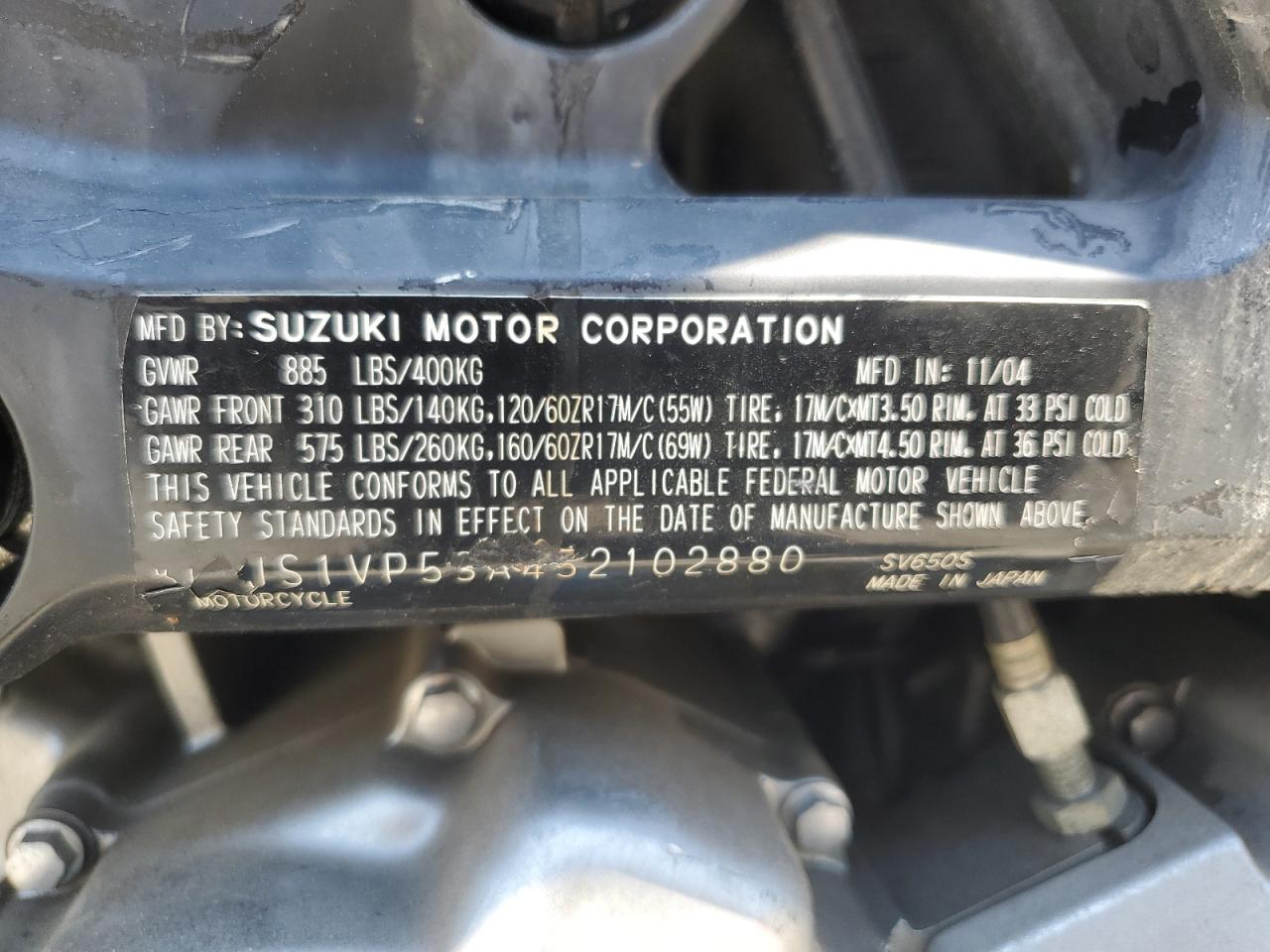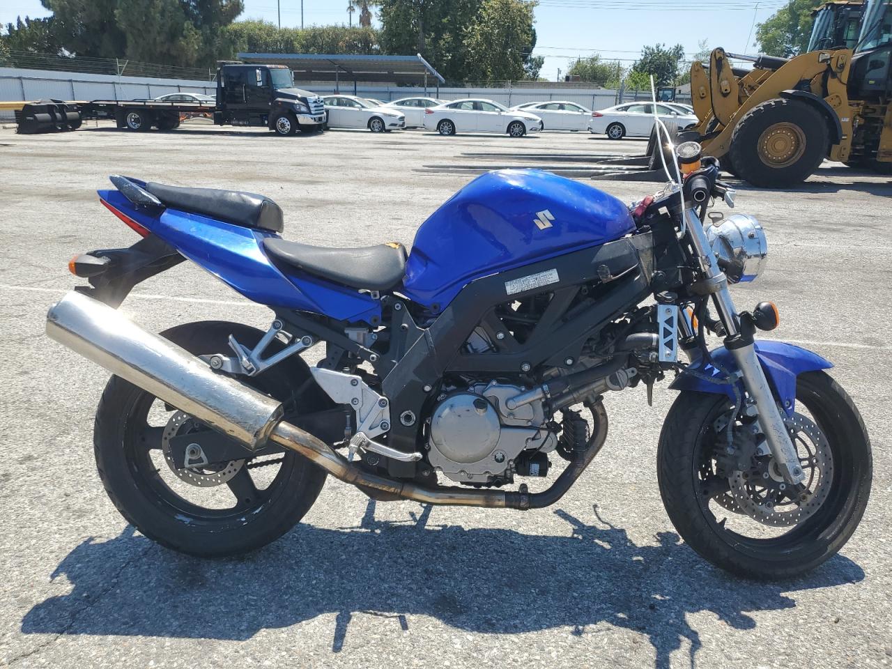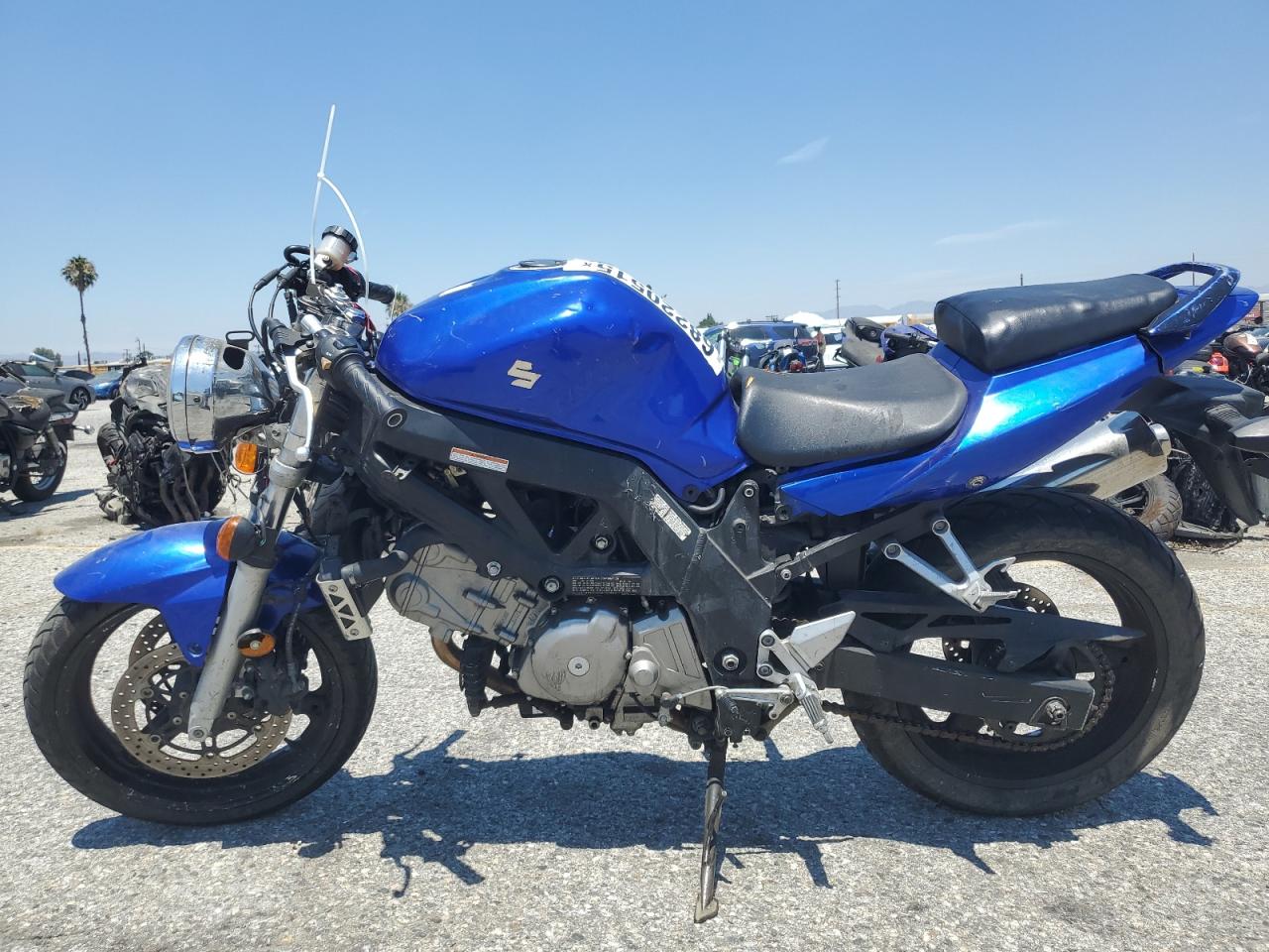 FairThe 2005 SUZUKI SV650 is a blue motorcycle. The primary damage is to the front end, with no secondary damage reported. The motorcycle starts. The front of the motorcycle is heavily damaged. Based on the images, there is damage to the front fairing, lights, and possibly the front fork assembly. The interior condition appears to be fair, with no obvious damage visible in the provided images. There is no visible damage to the wheels. The motorcycle requires repair. The overall condition of the vehicle is Fair. The vehicle damage category is Body.