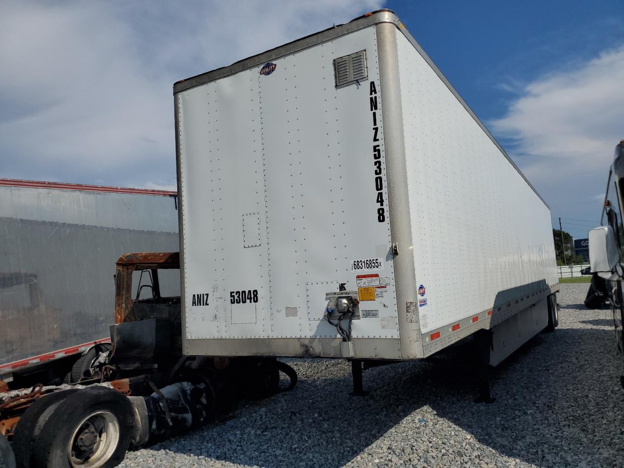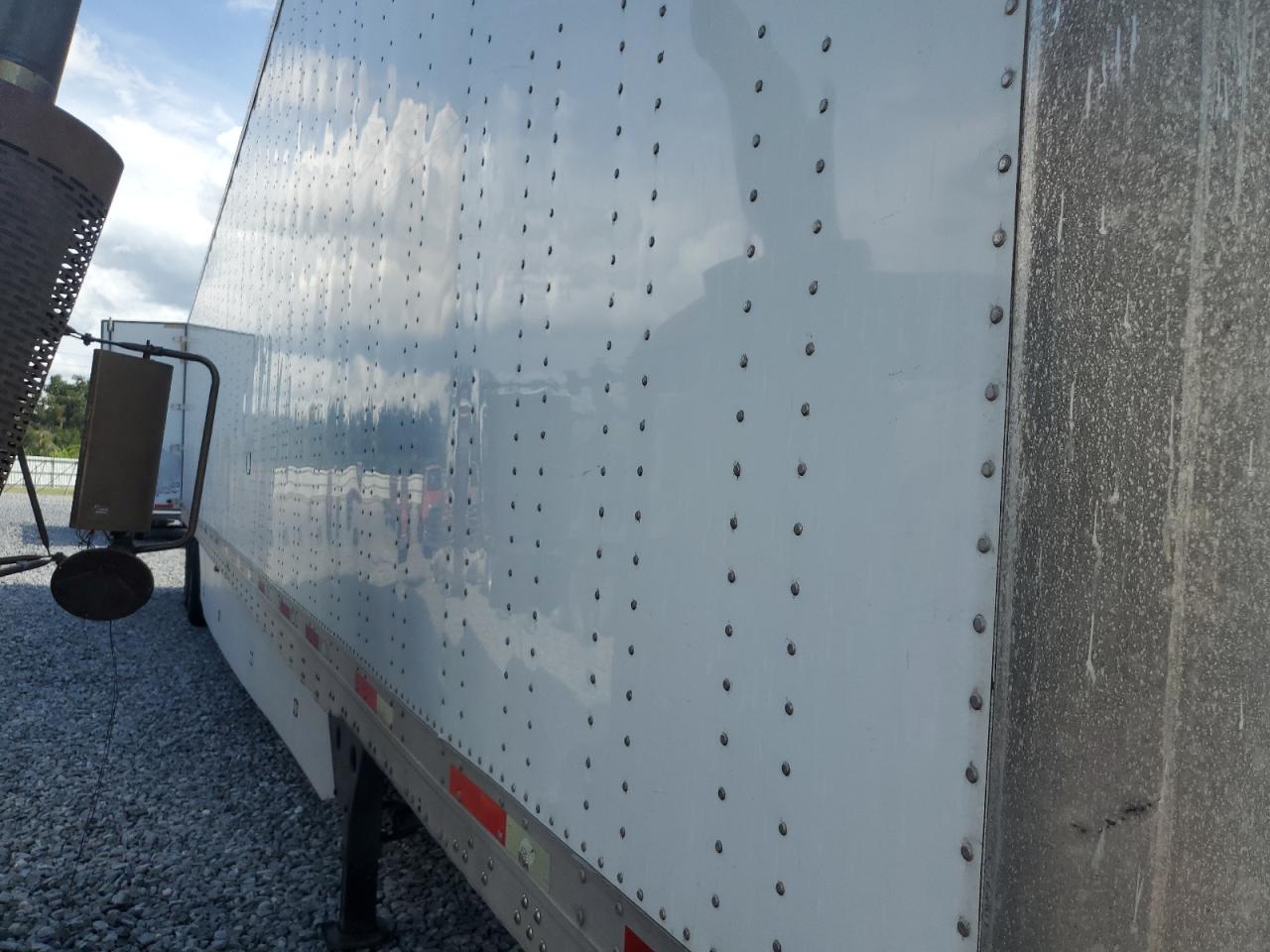 Body panel damage is evident across the trailer. The VIN is missing or altered, and the overall wear and tear contribute to its compromised state. Interior condition is fair.