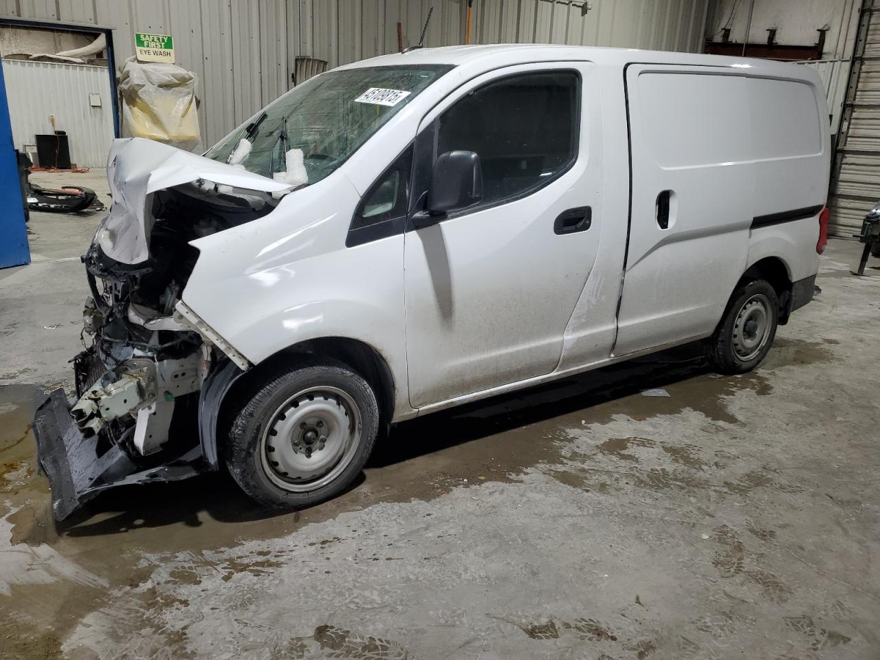 FairThe white 2020 Nissan NV200 2.5S has sustained significant front-end damage, with visible deformation of the front panels, hood, and bumper. Secondary damages include minor dents and scratches. The vehicle is a 'Run & Drive Verified' model. Interior damage is also evident, including airbag deployment and damage to the steering wheel and dashboard. The car's condition needs considerable repairs. The wheels appear to be intact, and the lights are present, though the front ones might be damaged. Glasses seems to be ok.