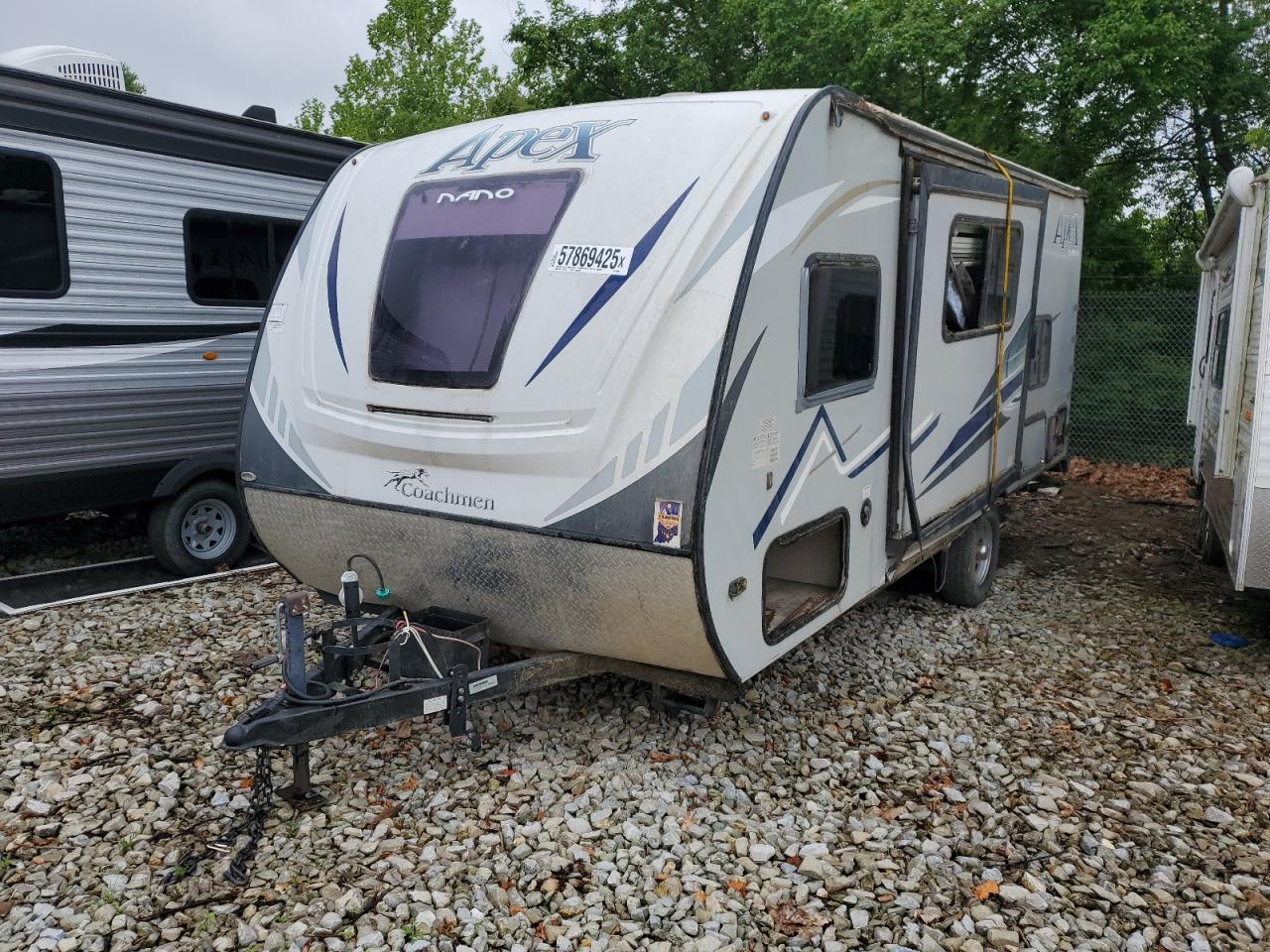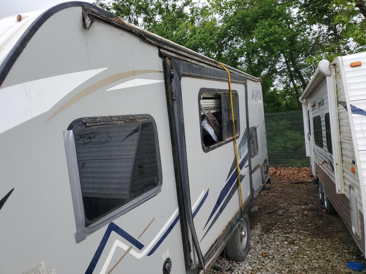 FairThe 2018 WILDWOOD APEX RV exhibits significant damage. The primary damage is to the rear end, with secondary damage to the side. The vehicle is two-tone in color. Overall, the RV is in poor condition. Interior shows significant damage, and is not drivable and needs considerable repair. Exterior has moderate damage.