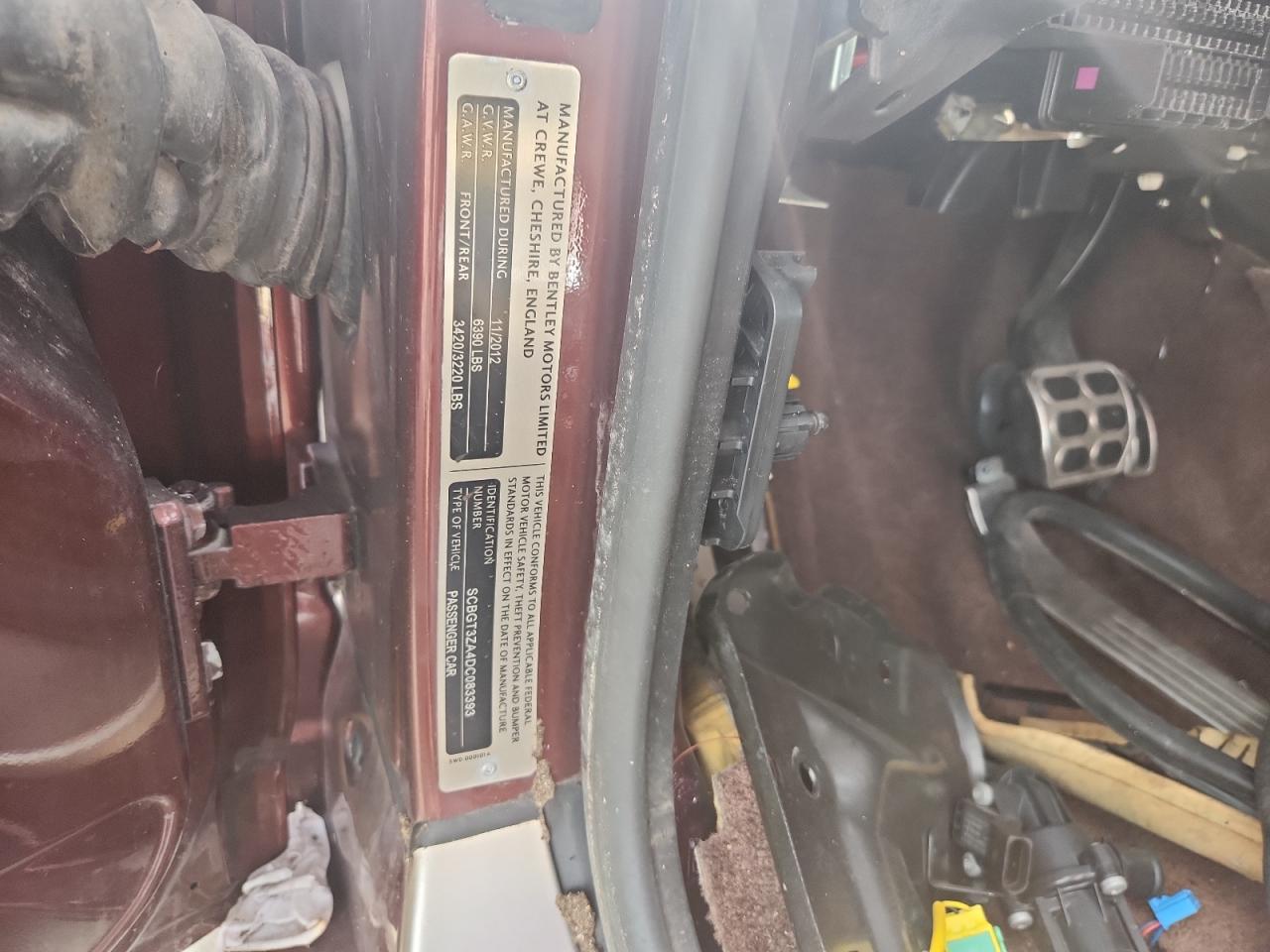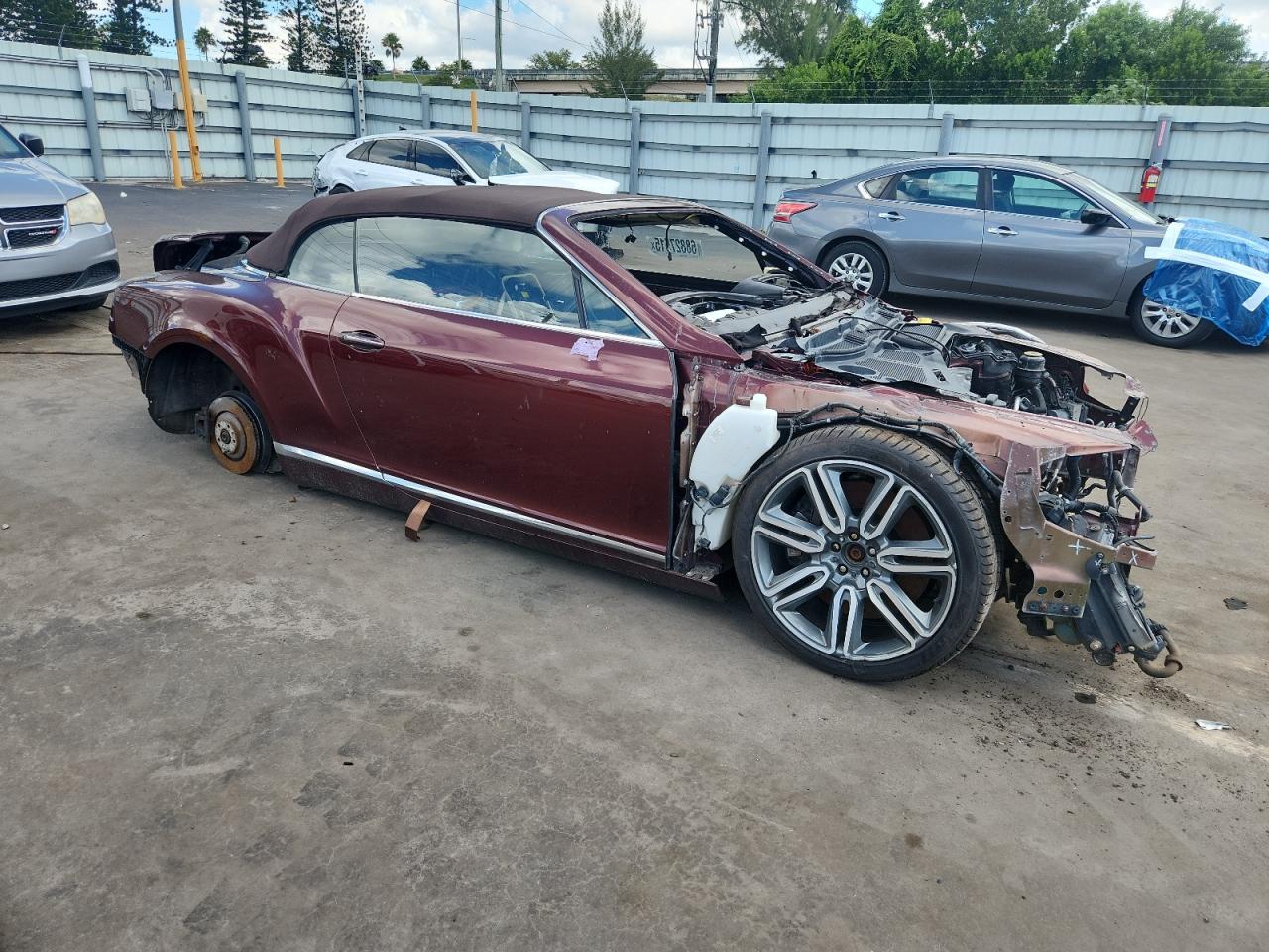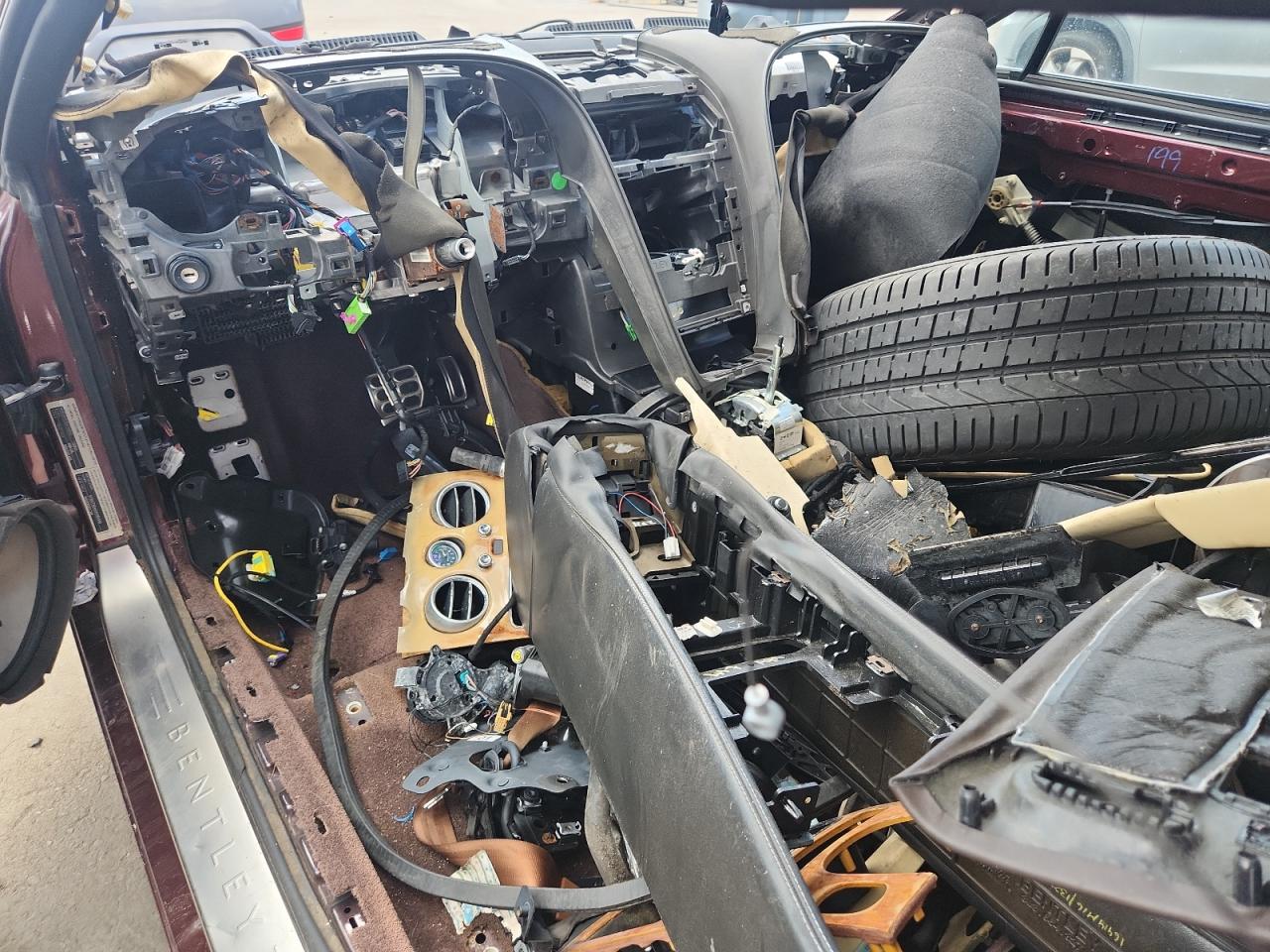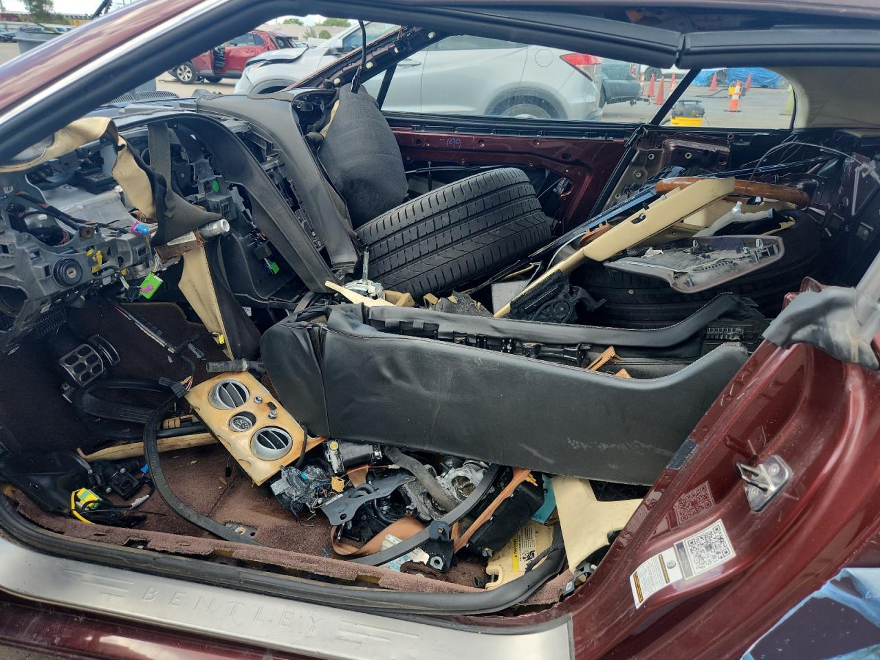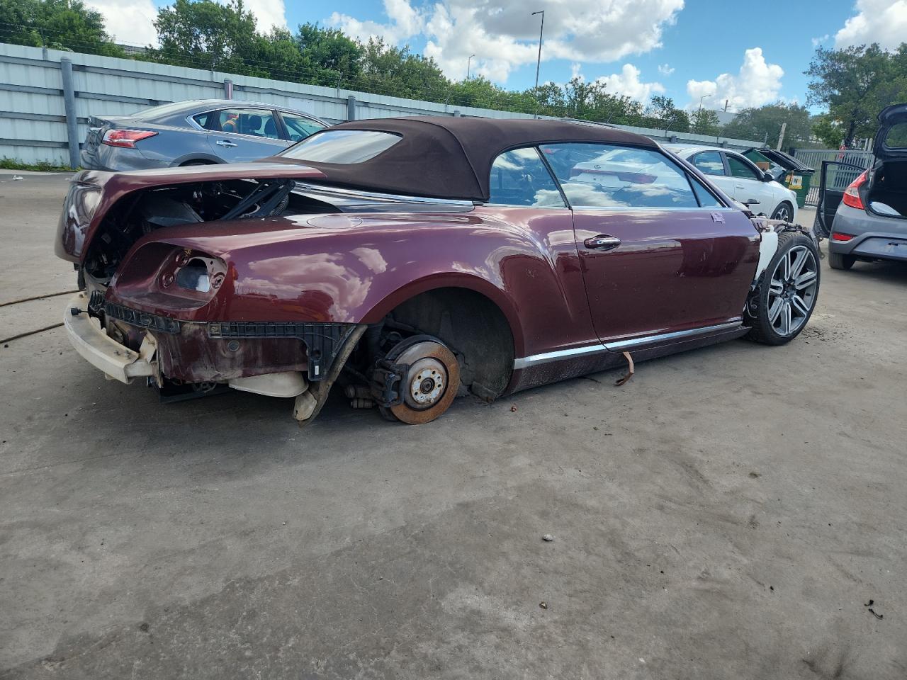 PoorThe images depict a severely damaged 2013 Bentley Continental, a luxury convertible. The vehicle has been stripped of numerous components, and the undercarriage is exposed. The burgundy-colored body shows significant damage, with body panels missing and extensive damage to the front end. The interior is gutted, exposing the vehicle's structure and wiring. The wheels are missing in some images. This Bentley is in a state of disrepair and requires considerable restoration.