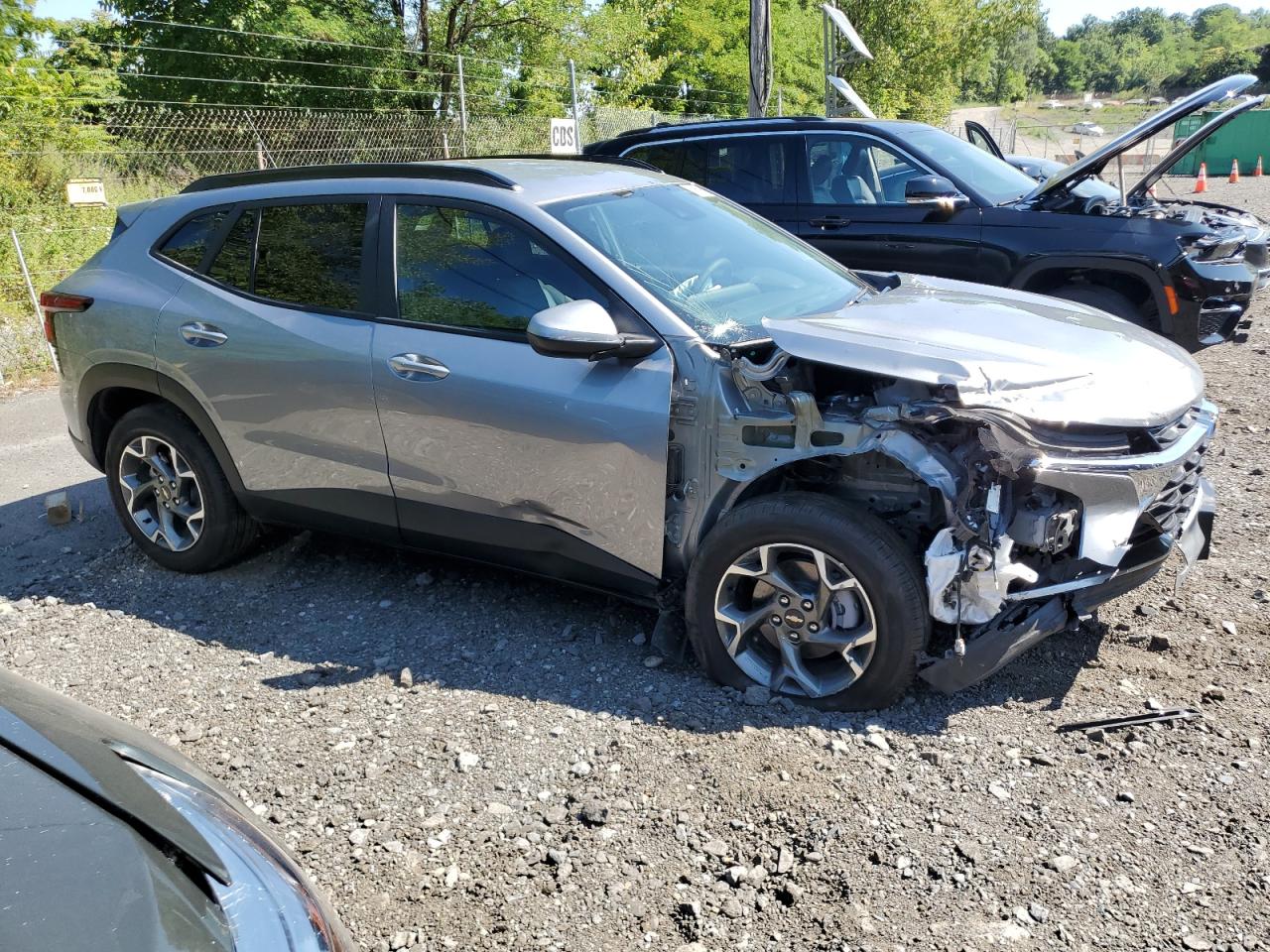 FairThis silver 2025 CHEVROLET TRAX 1LT has sustained front-end and side damage. It's a Run & Drive Verified vehicle. The exterior shows visible damage, affecting the body panels, while the interior has some wear and tear. The wheels appear to be intact. The lights and glasses seem to be in reasonable condition considering the overall state of the vehicle.